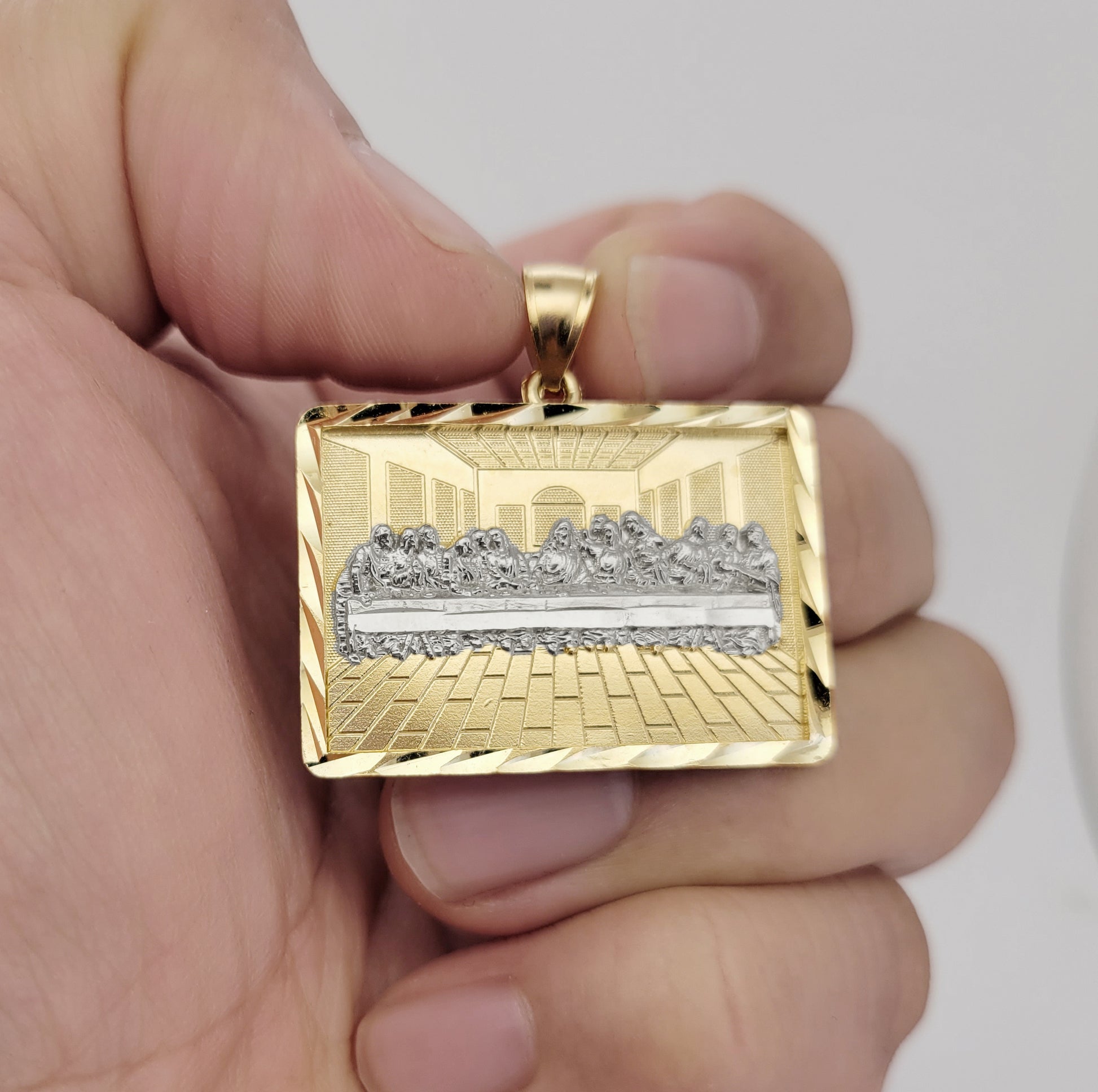 10K Gold Last Supper Pendant Charm Last Supper Hip Hop Charm Diamond Cut Frame
