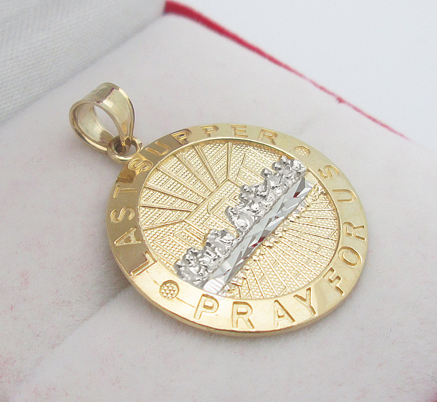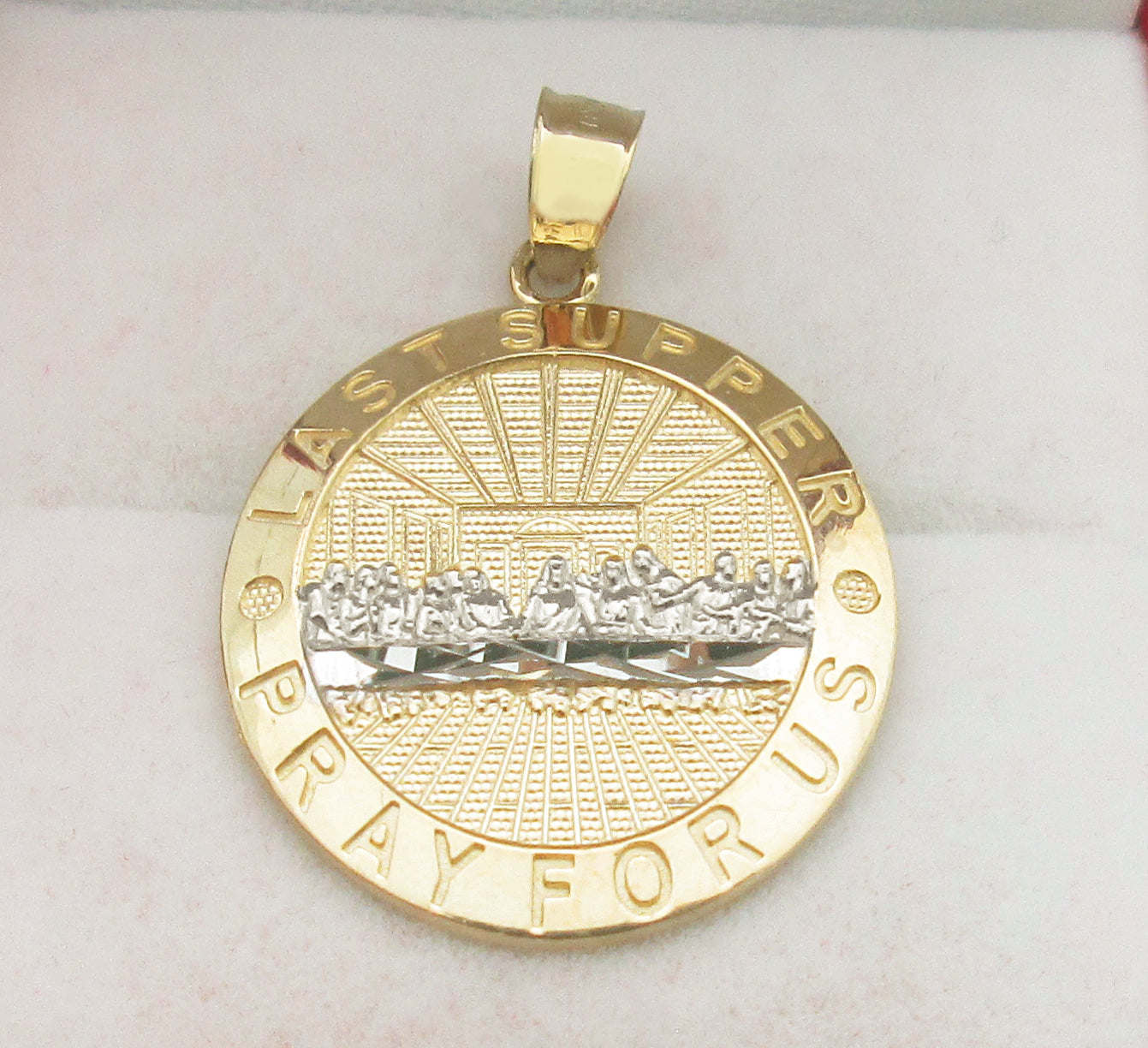 10K Gold Last Supper Pendant Last Supper Medal For Necklace 1.25 inch x 1.0 inch