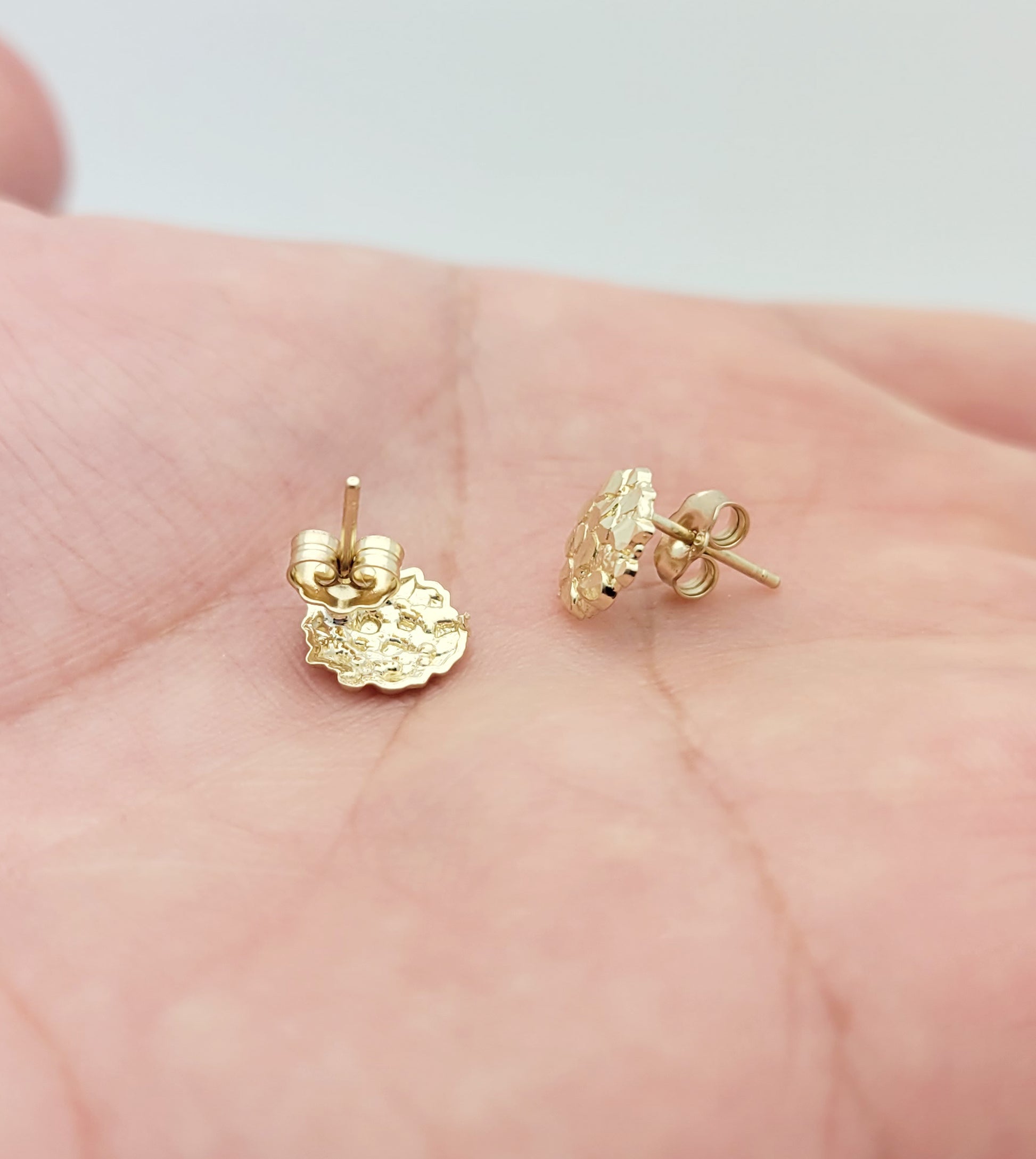 10K Gold Nugget Earrings Round Nugget 8.5 mm(0.3 inch)