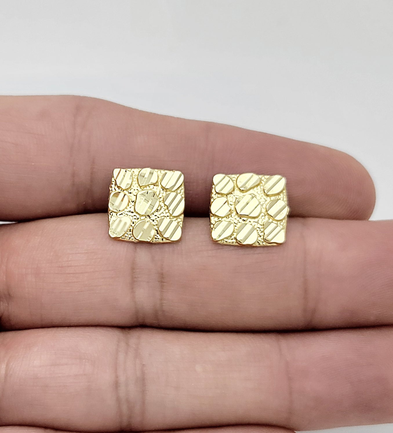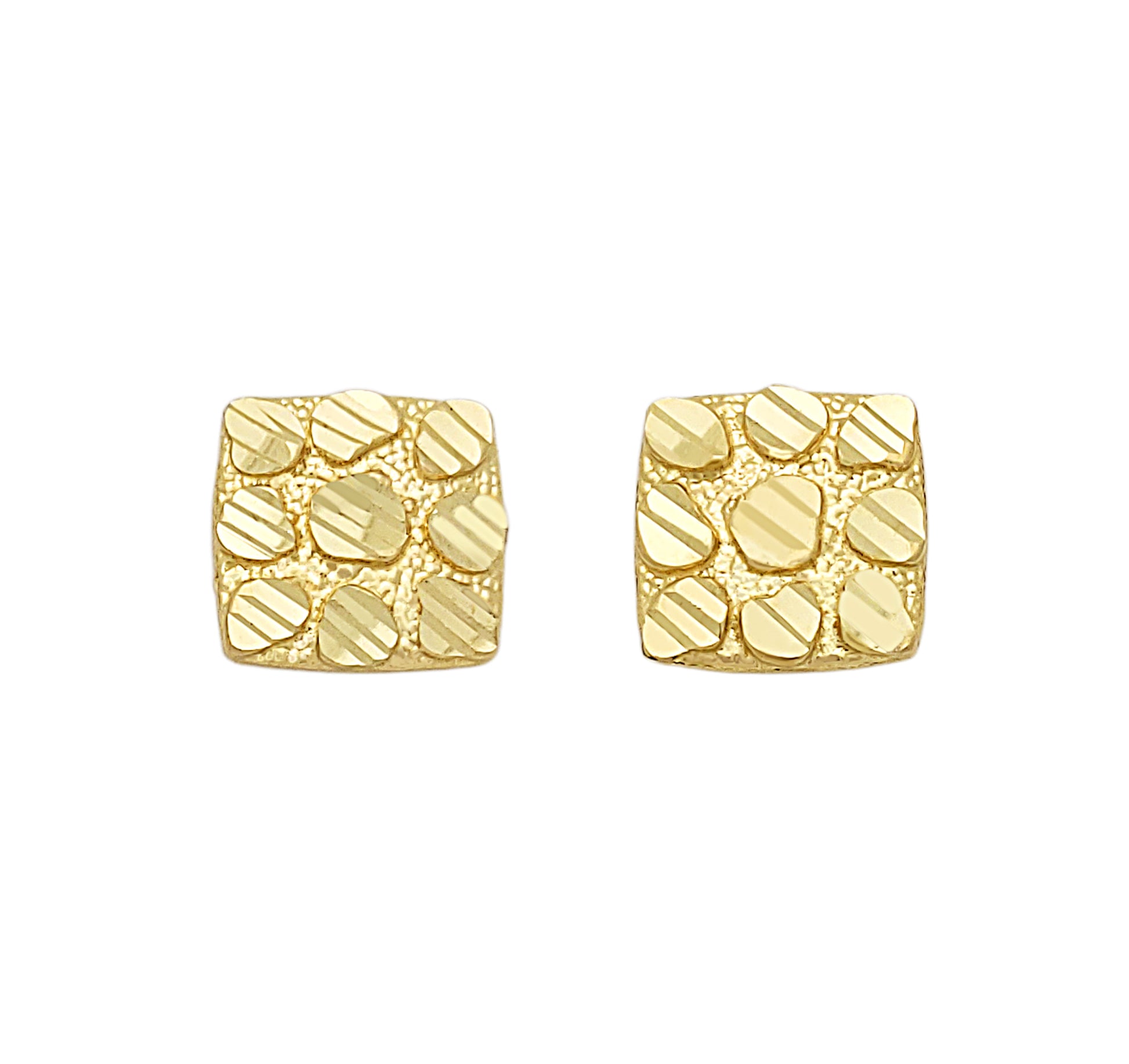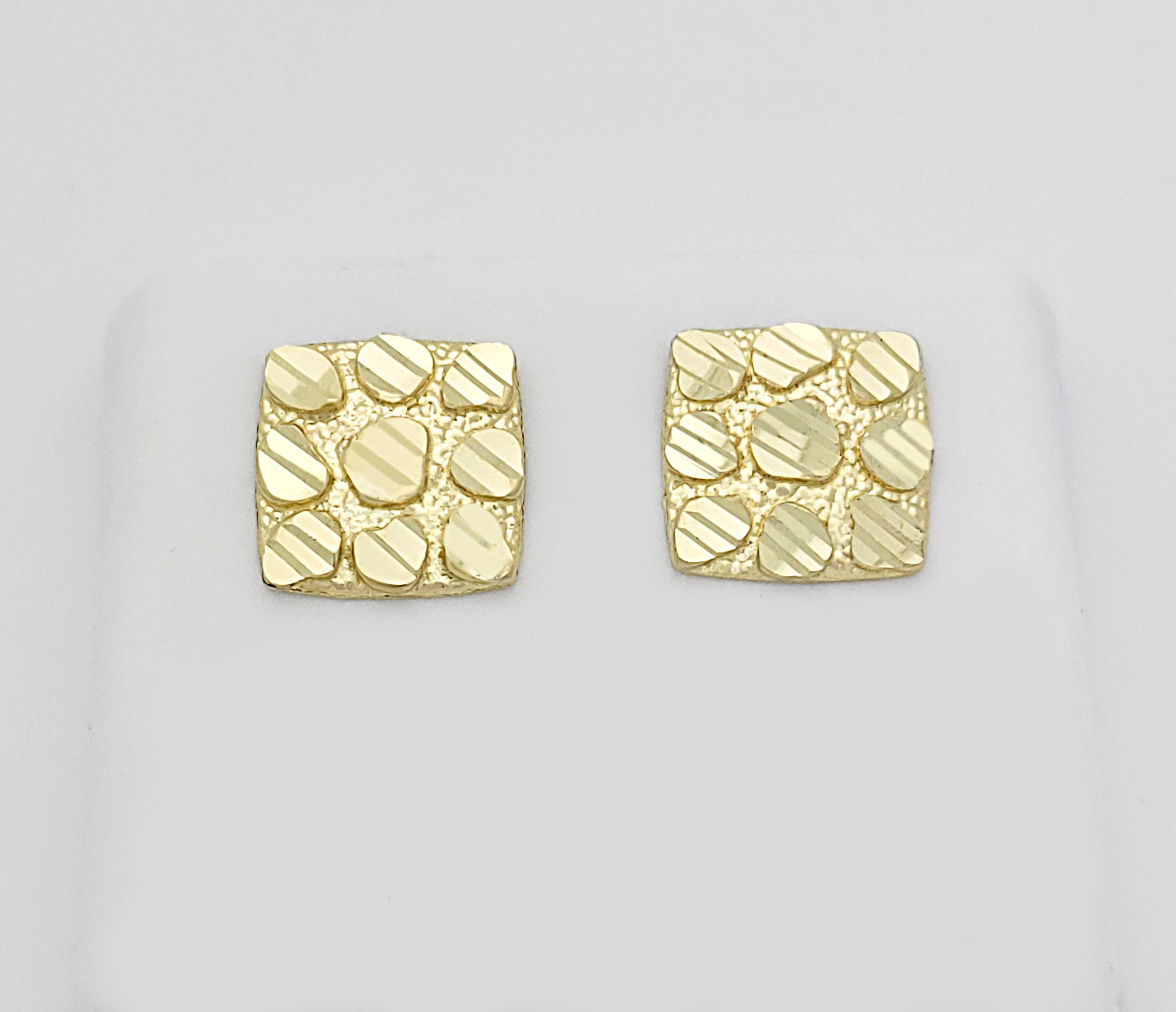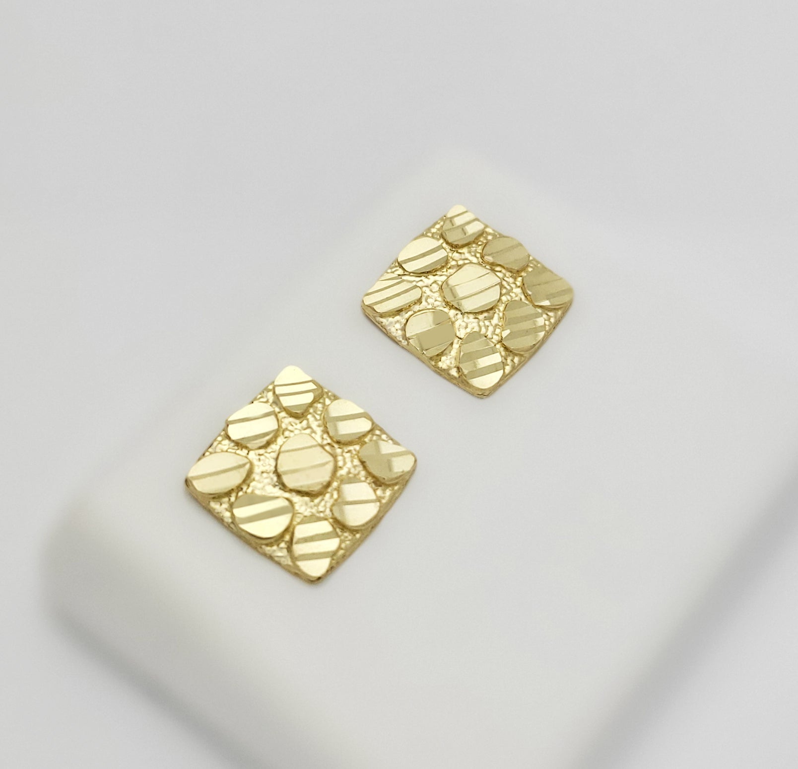 10K Gold Nugget Earrings Square Nugget 13 mm