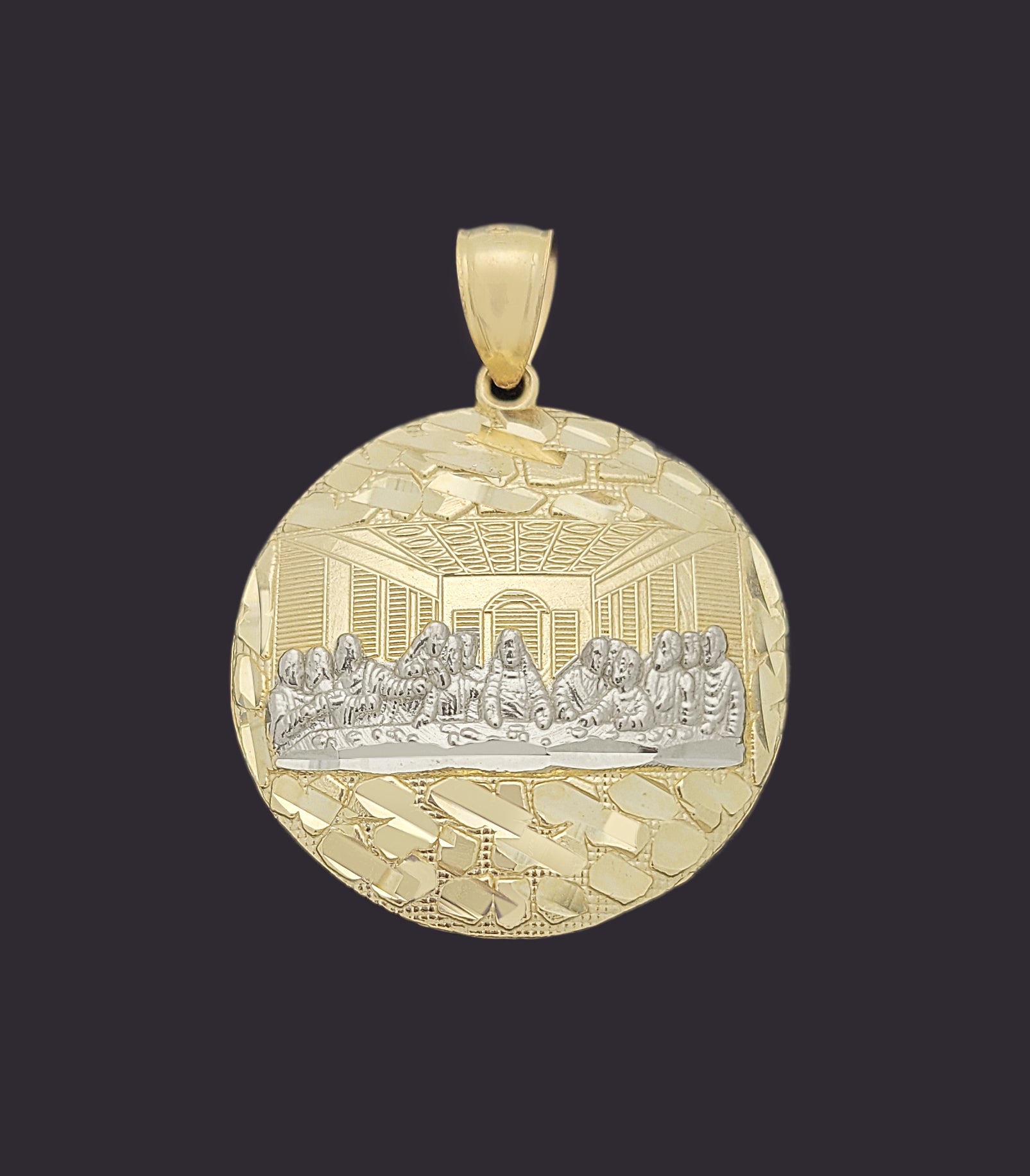 10K Gold Nugget Last Supper Pendant Last Supper Medal Diamond Cut Design