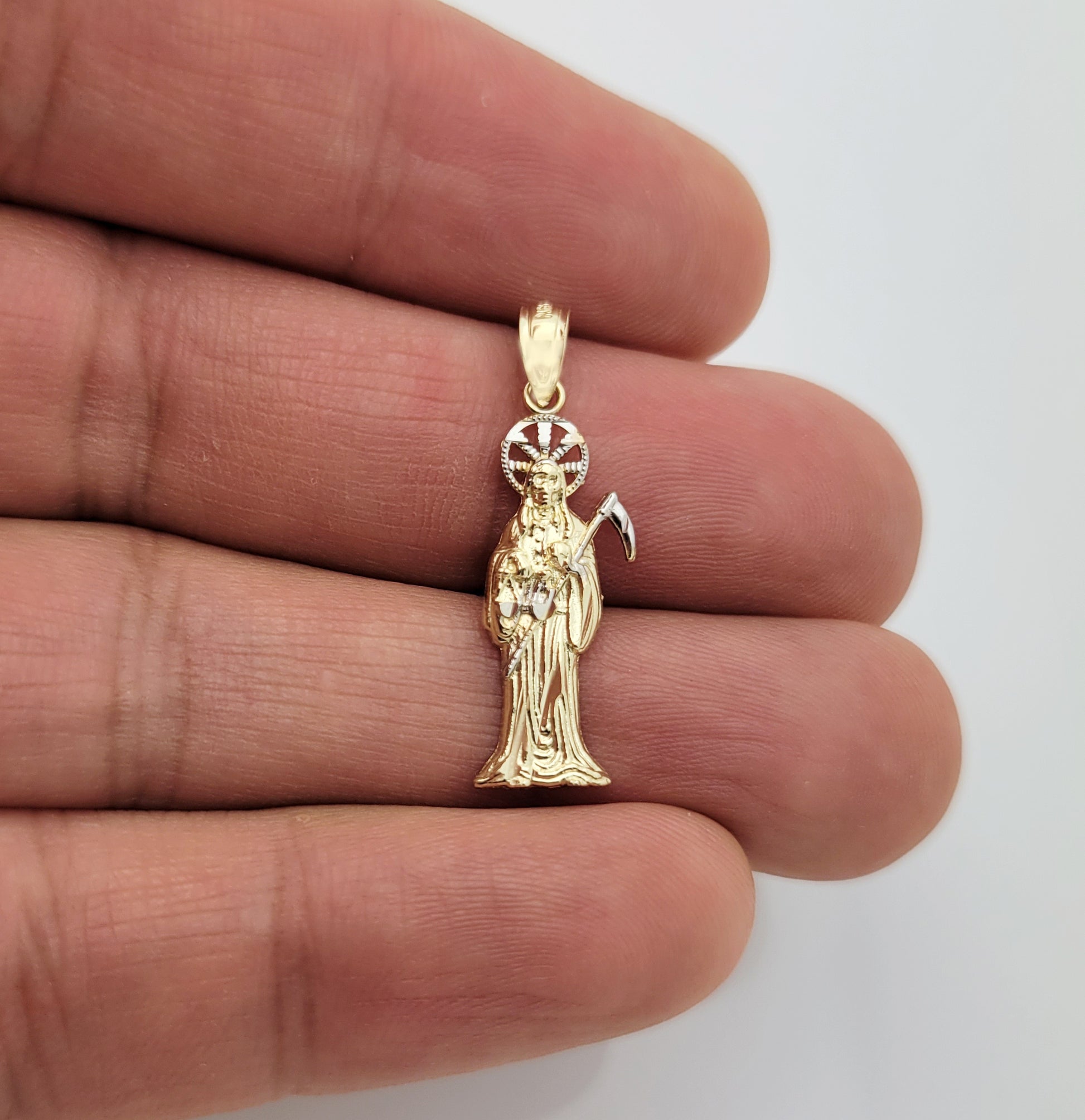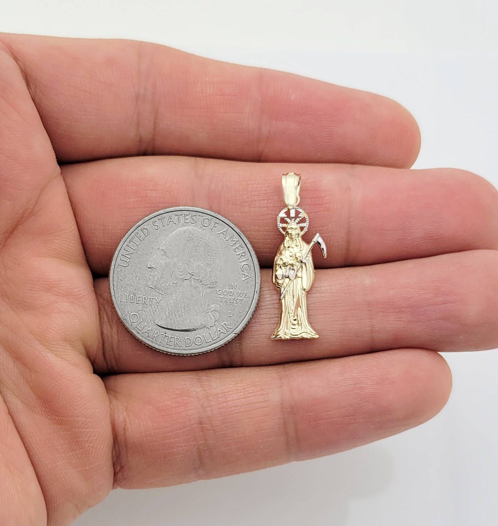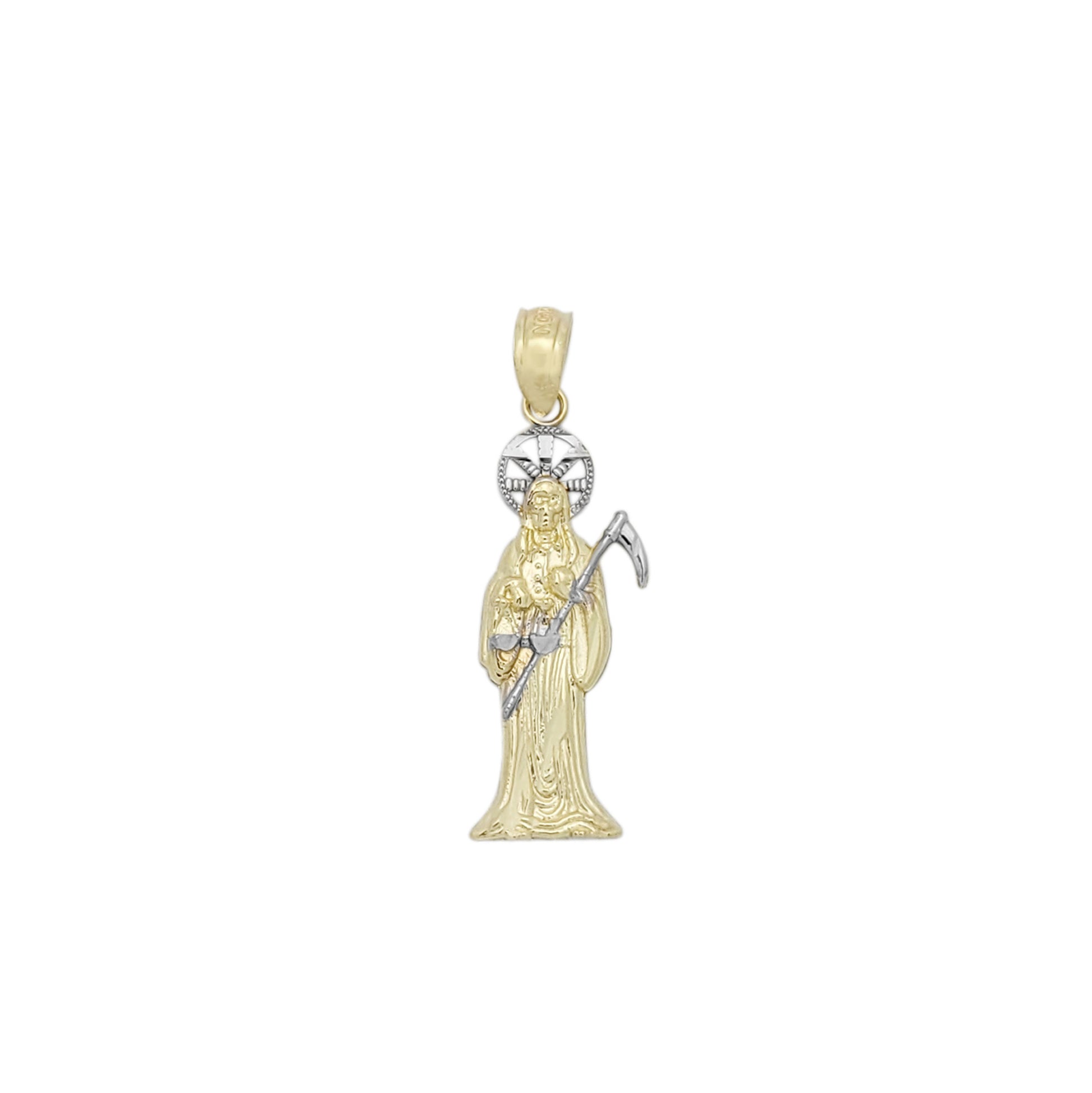 10k Gold Santa Muerte Pendant Charm Small 1.1 inch