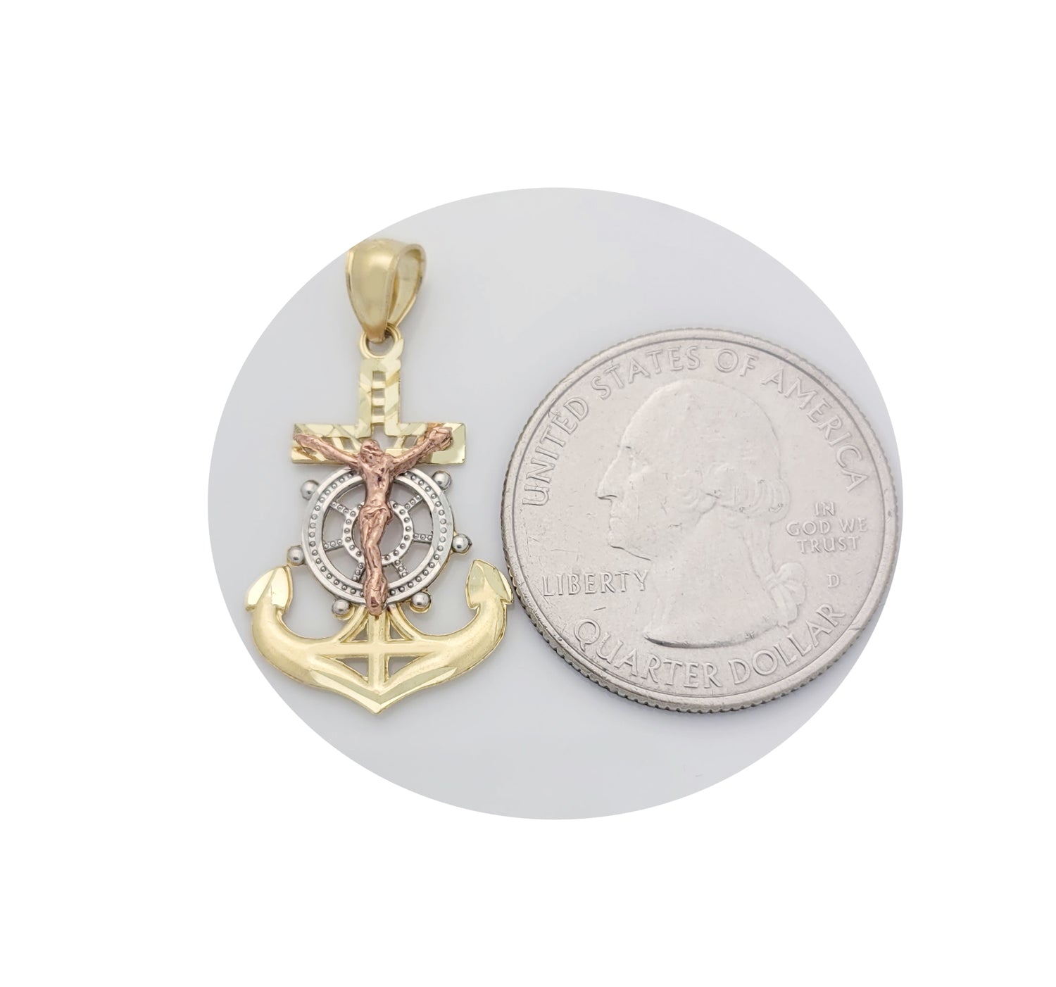 10K Tri Tone Gold Mariners Anchor Charm Cross Pendant