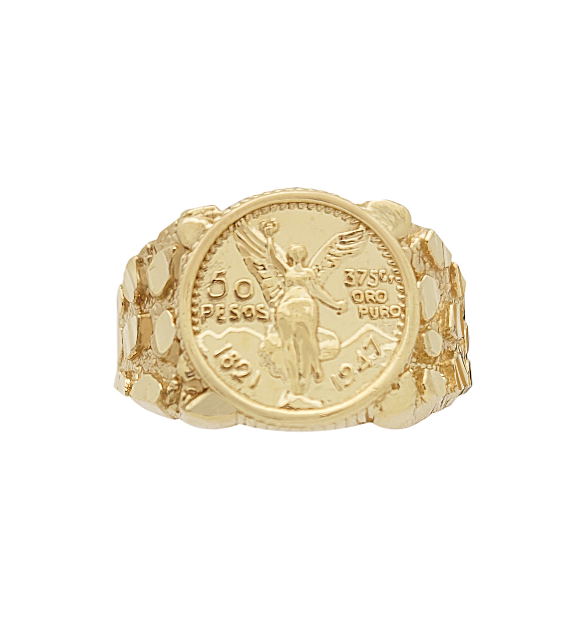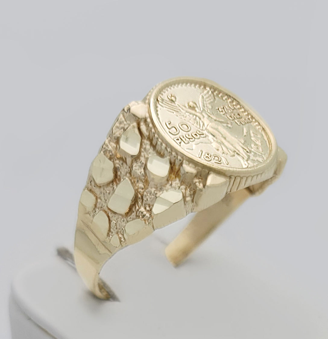10K Yellow Gold 50 Pesos 1821 Coin Design Ring a Product cast with a coin design Thin Nugget RIng 3.7 g
