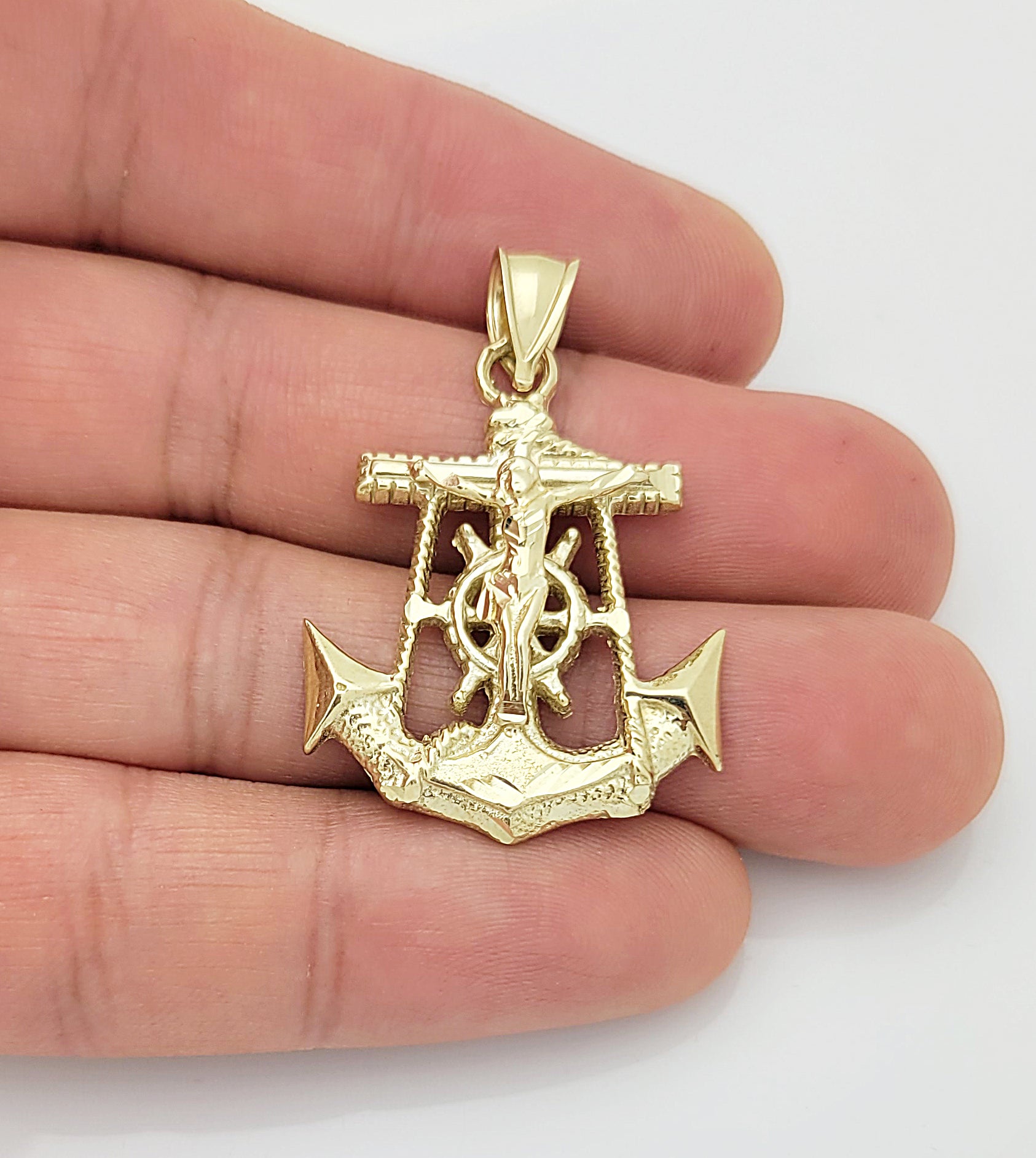 10K Yellow Gold Anchor Cross Pendant For Men Solid Gold Mariners Pendant