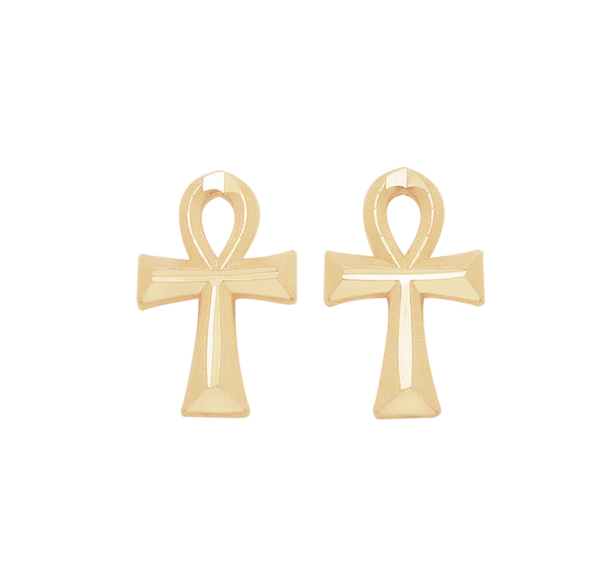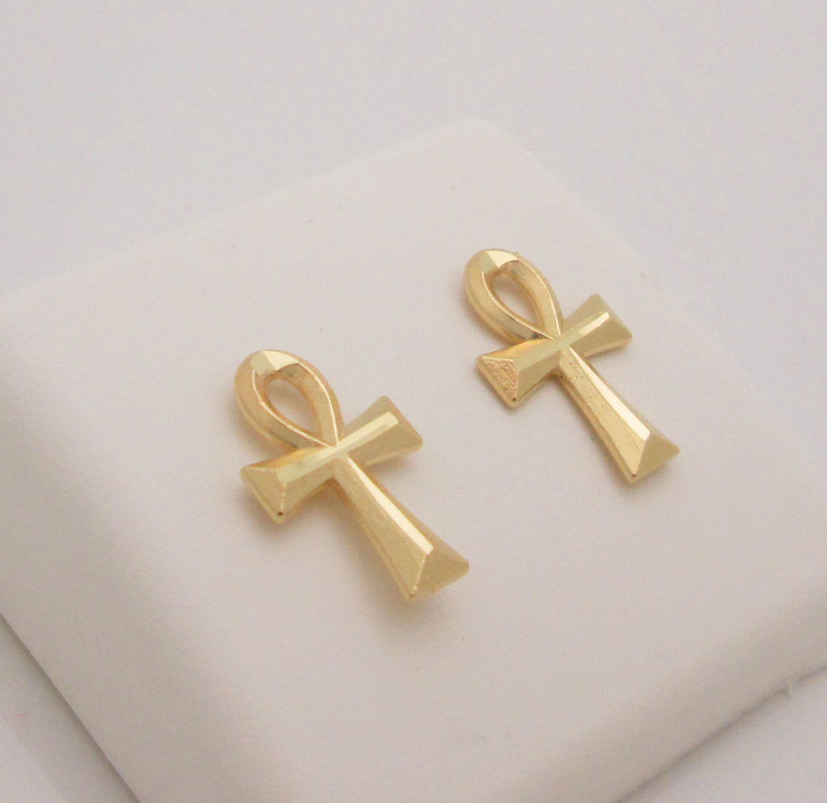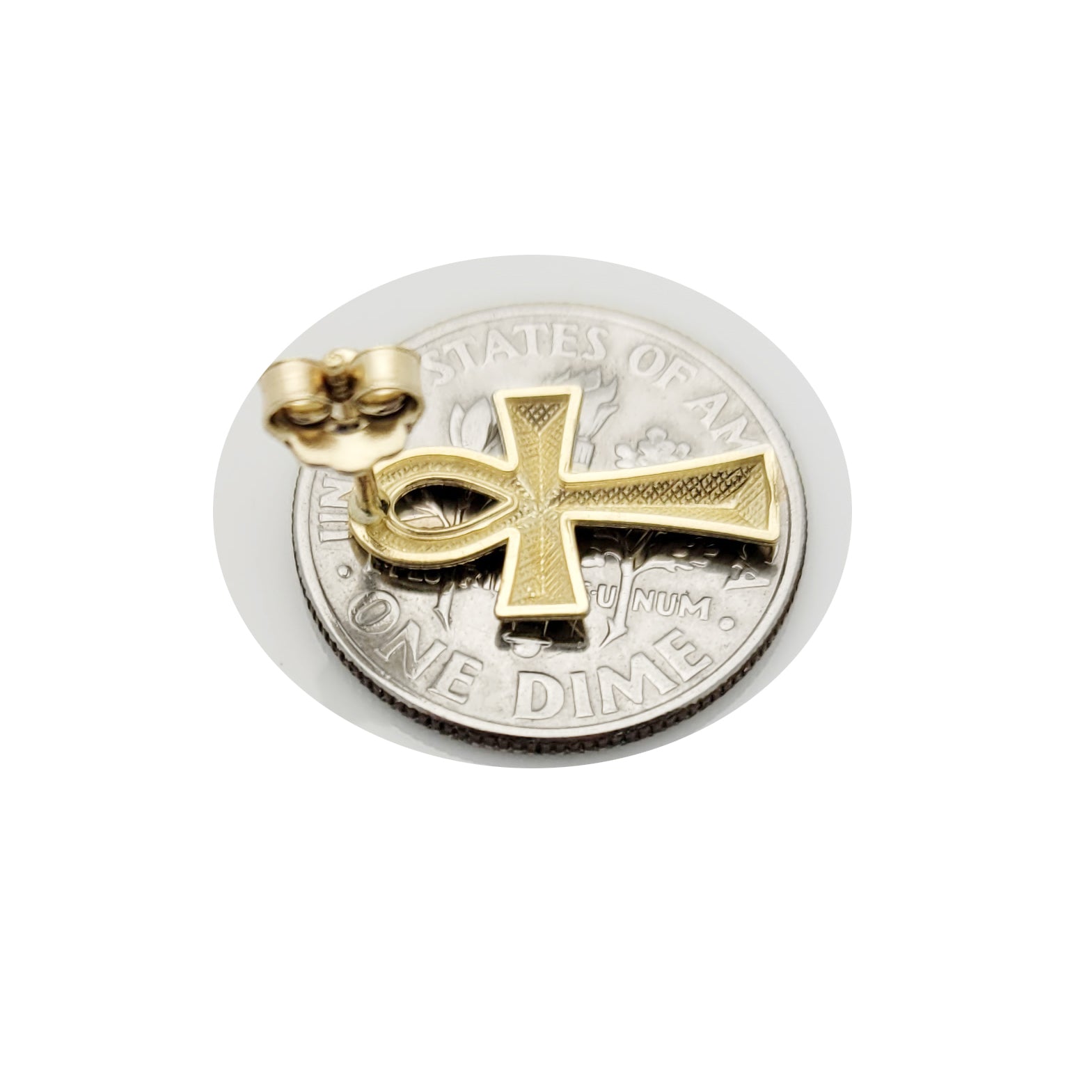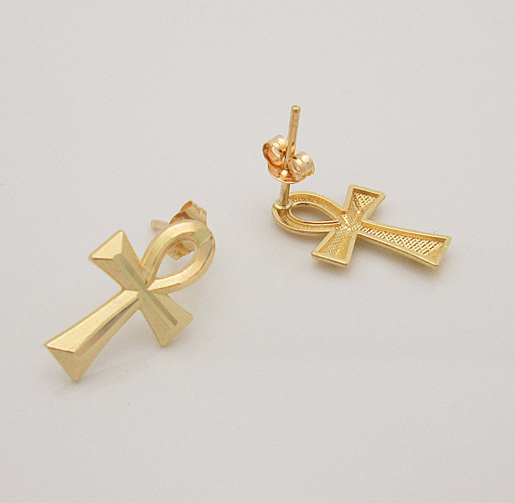 10K Yellow Gold Ankh Cross Earrings Egyptian Cross Earrings
