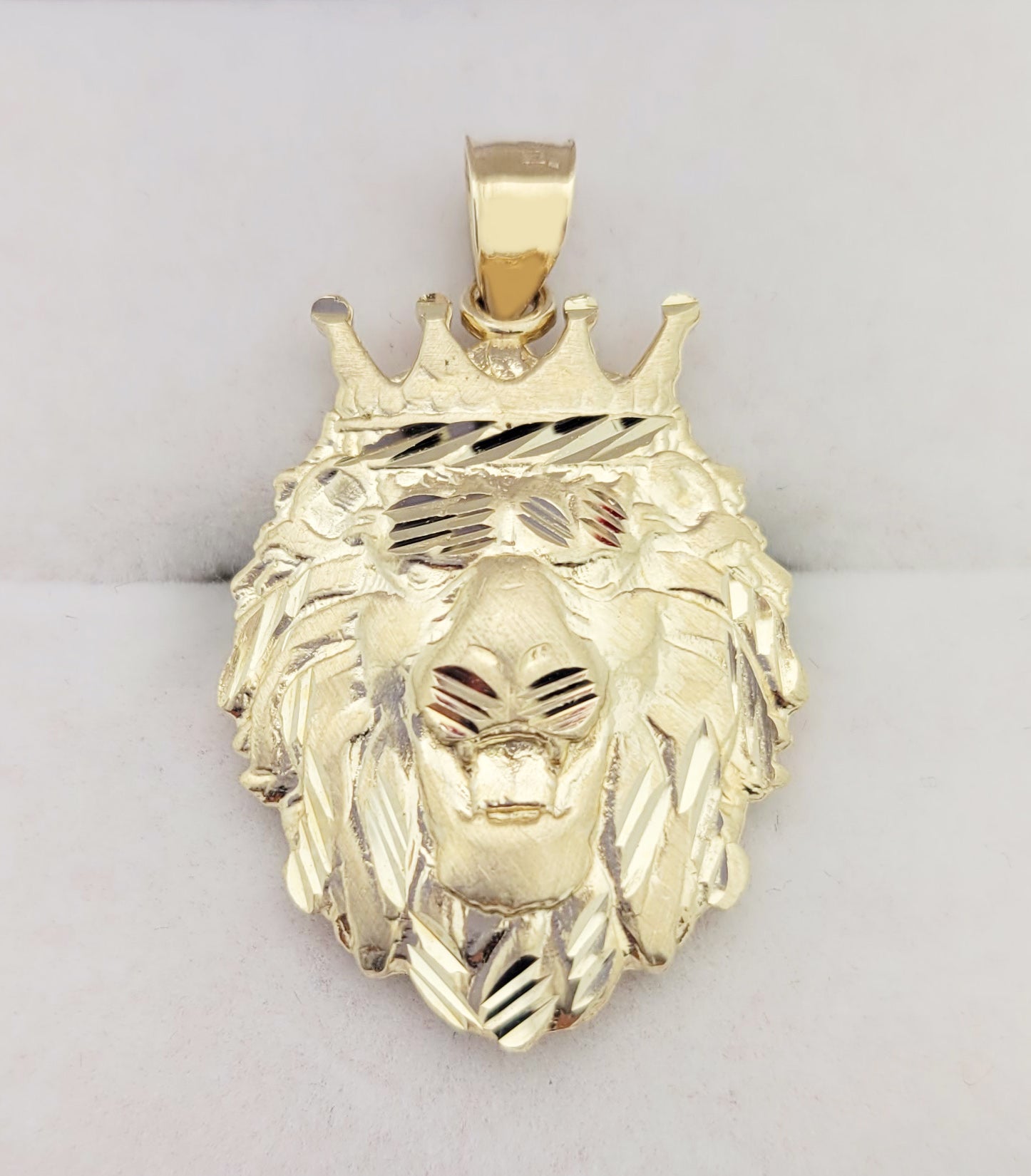 10K Yellow Gold Crown Lion Face Charm Pendant Lion Head Crown 1.2 in x 0.75 in
