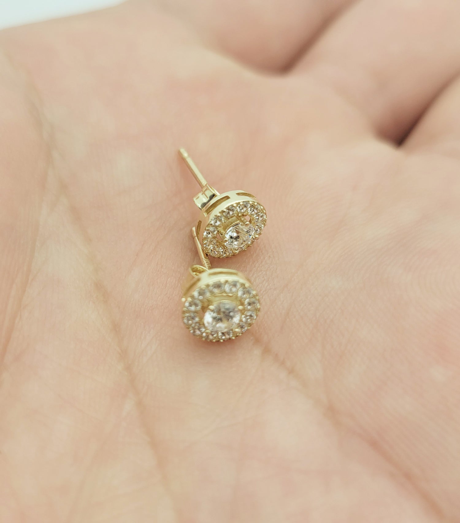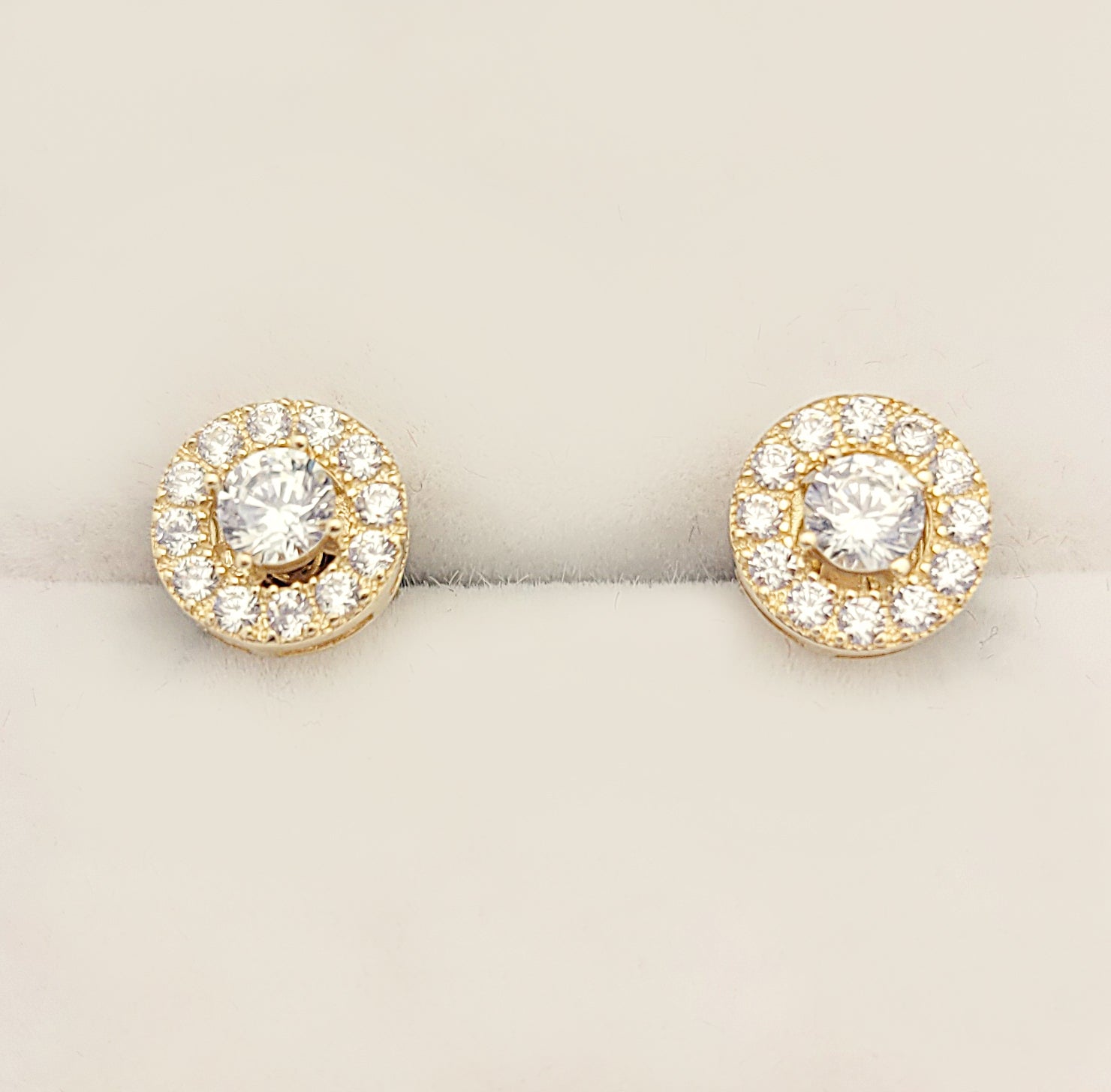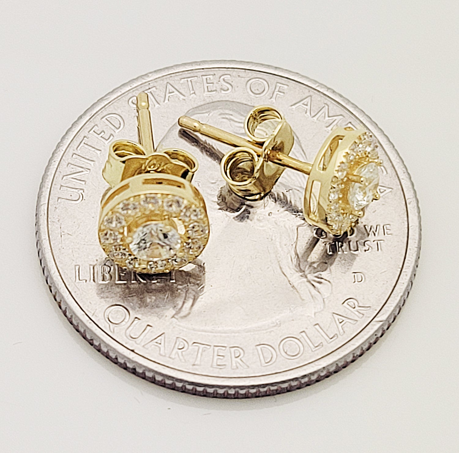 10k Yellow Gold CZ Cluster Earrings Round Earrings 6.5 mm