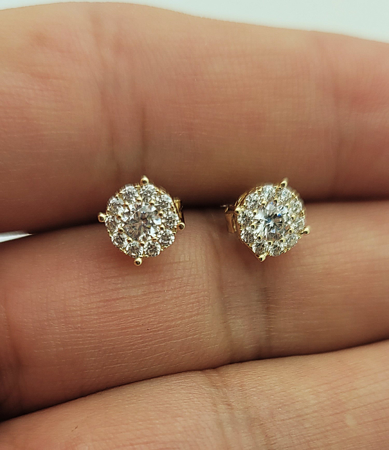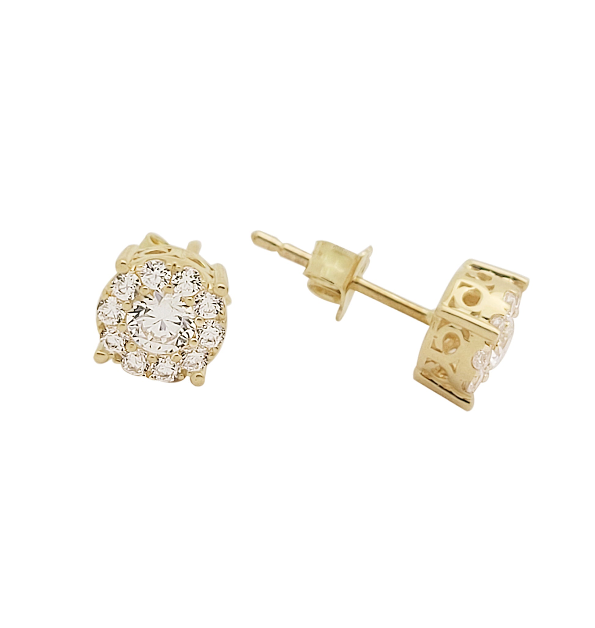 10k Yellow Gold CZ Cluster Earrings Round Earrings 6.5 mm