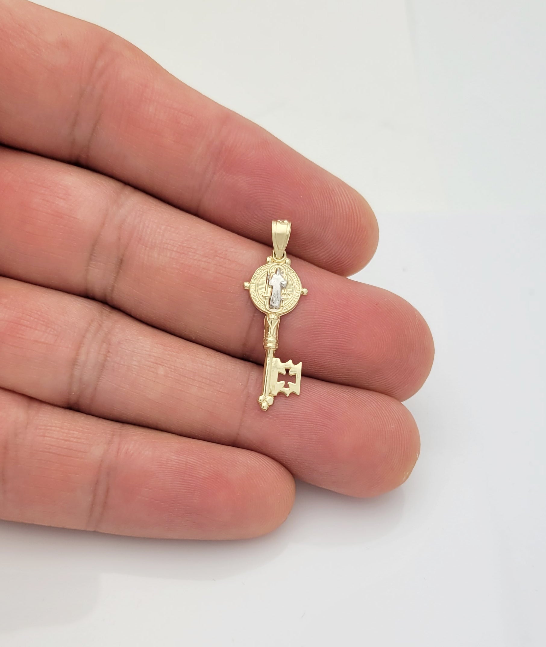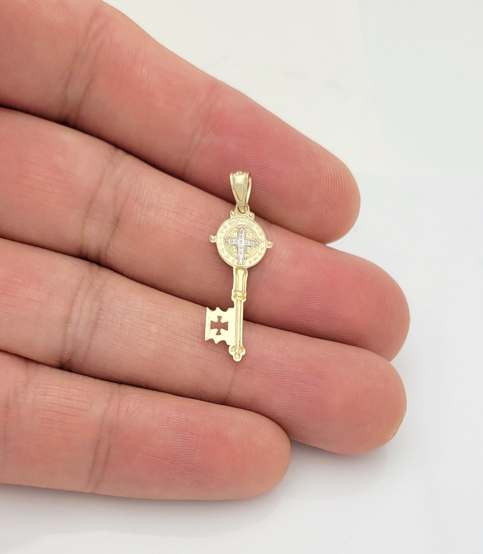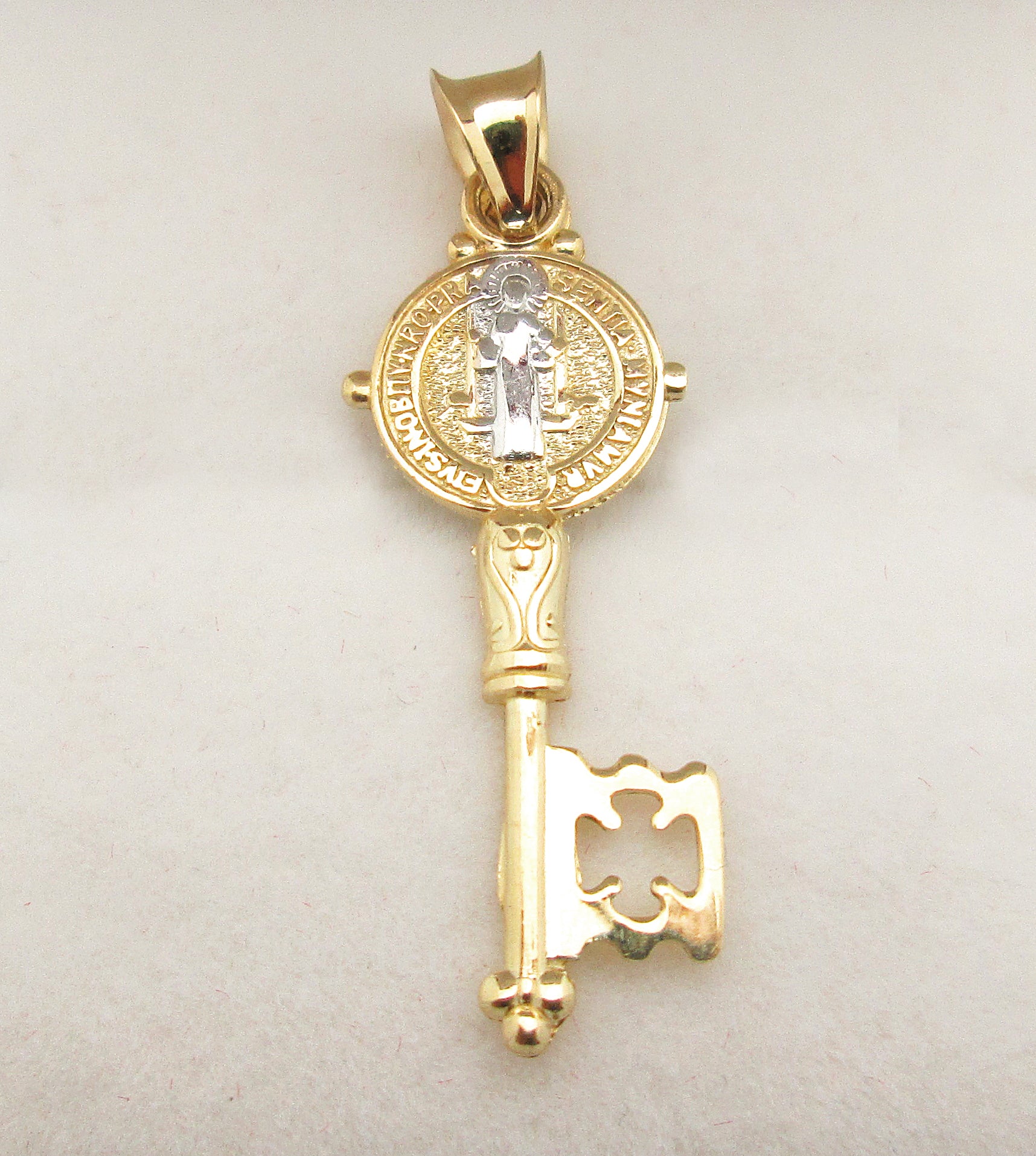10k Yellow Gold De San Benito Key Pendant St Benedict Pendant Charm 1 inch