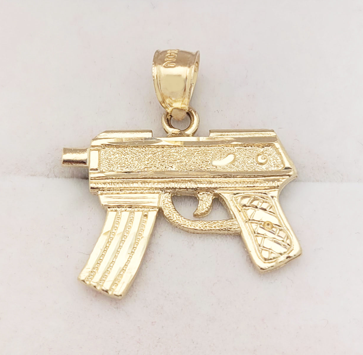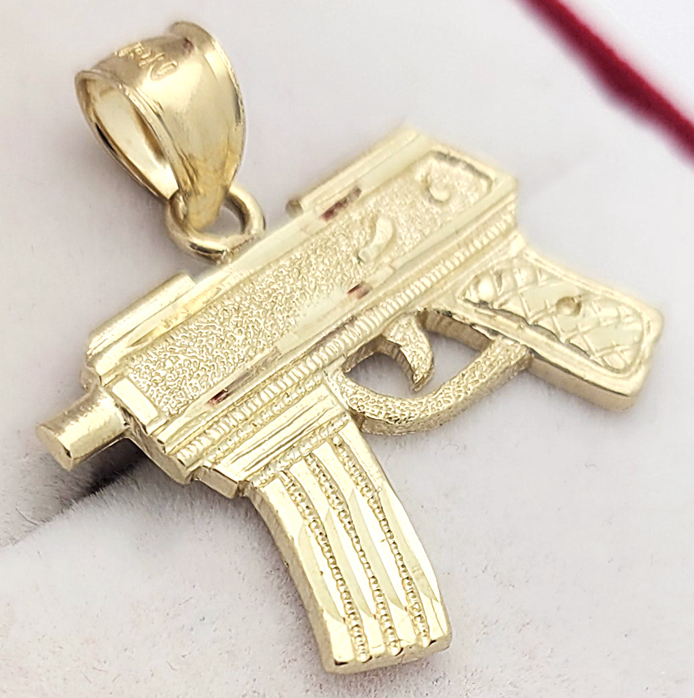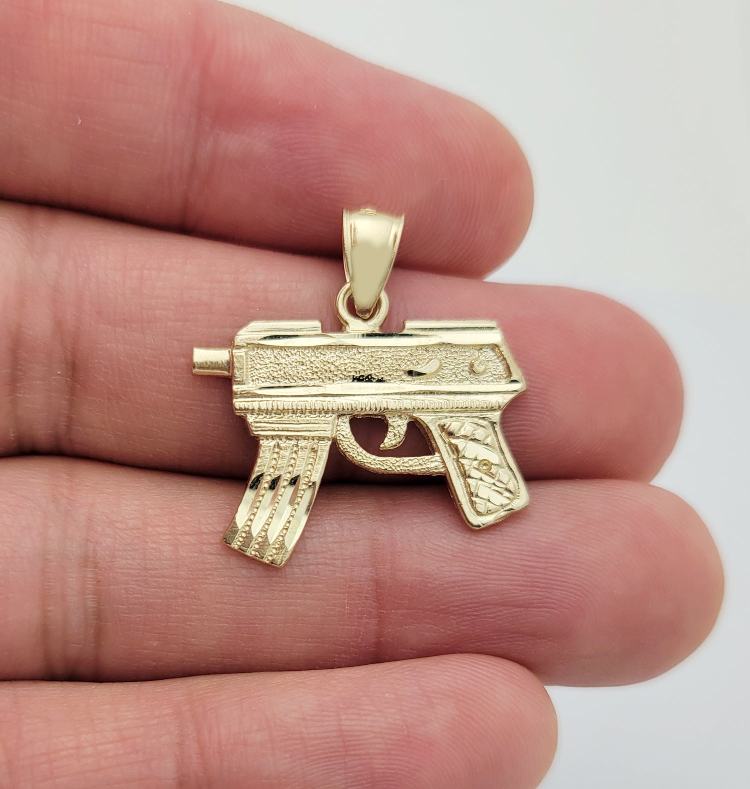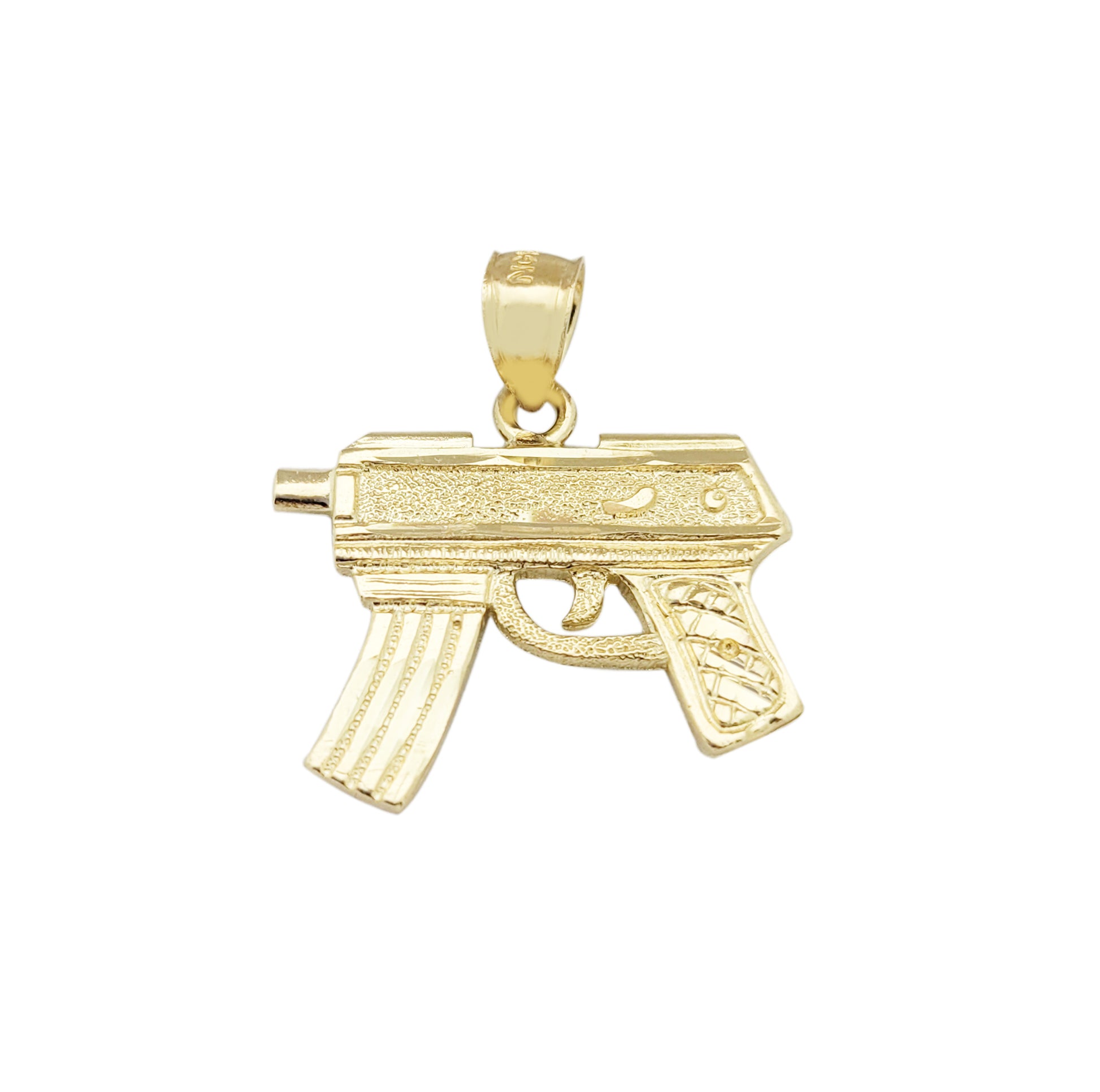 10K Yellow Gold Diamond Cut Uzi Gun Necklace Pendant 1.0 in x 0.9 in