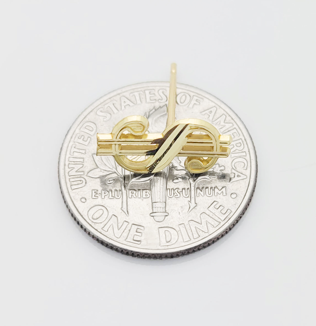 10K Yellow Gold Dollar Sign Earrings Money Symbol Earrings 12 mm x 6 mm