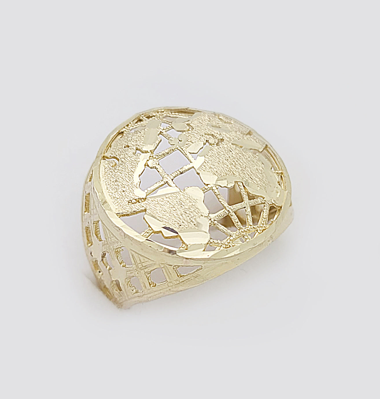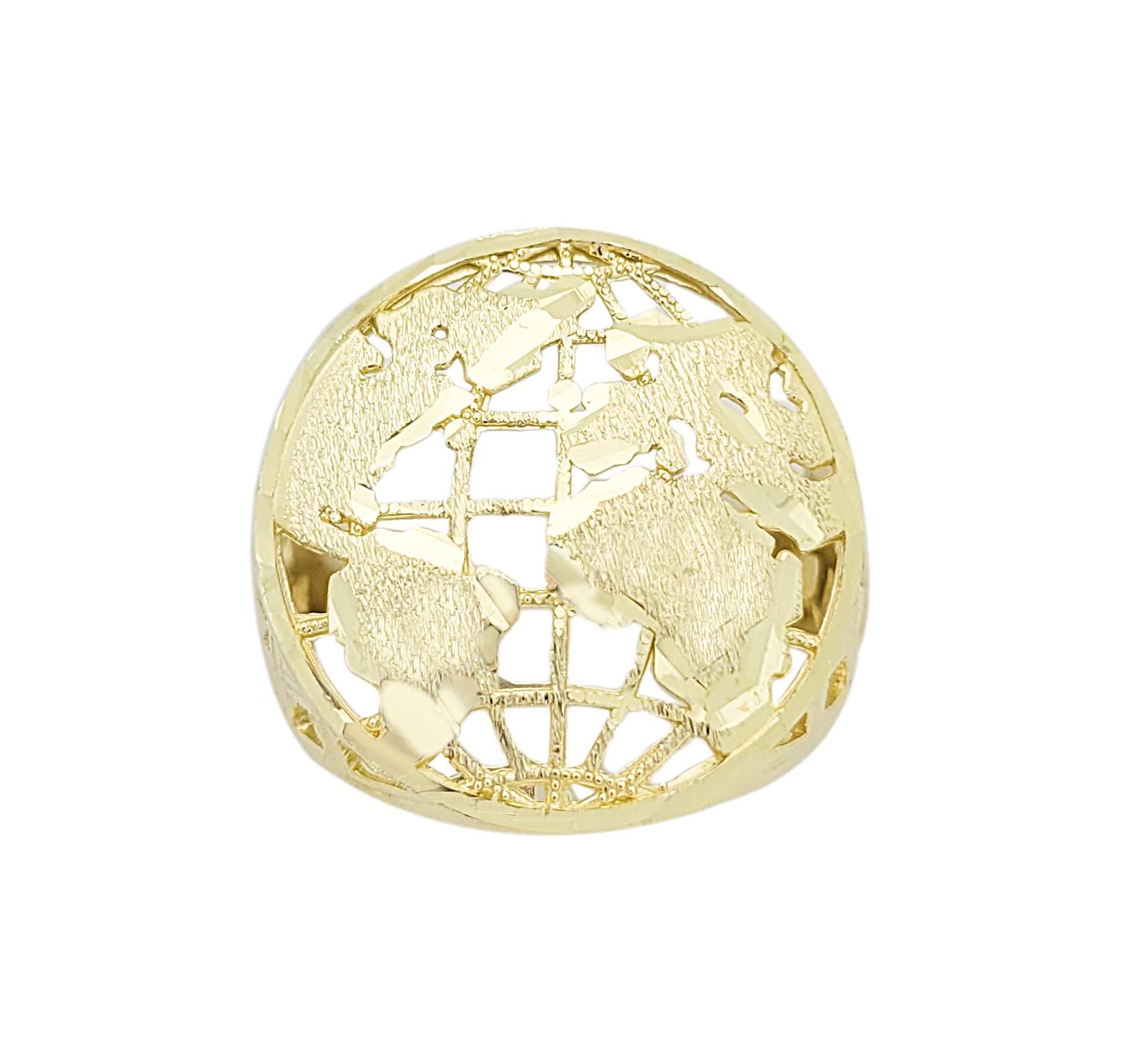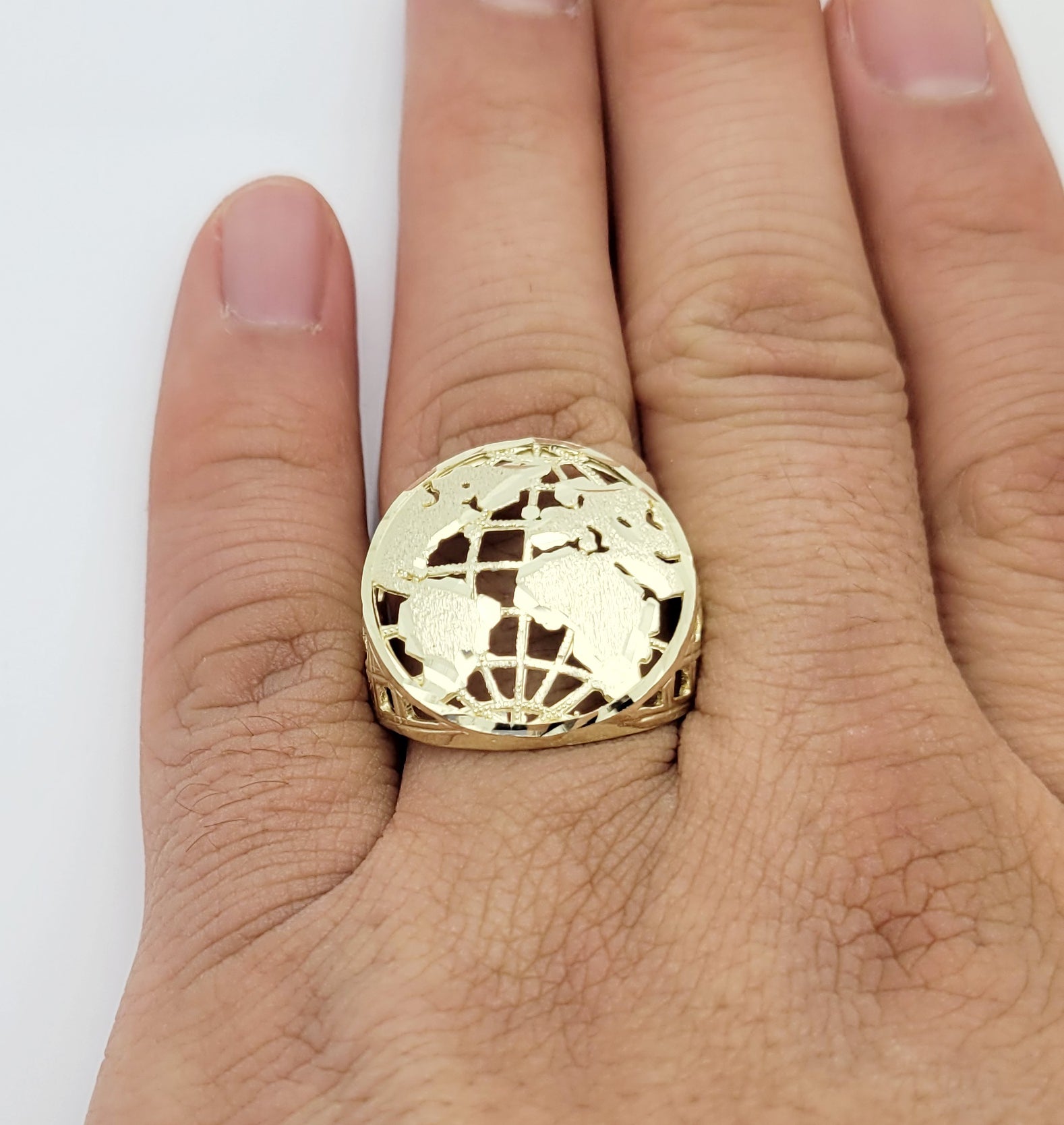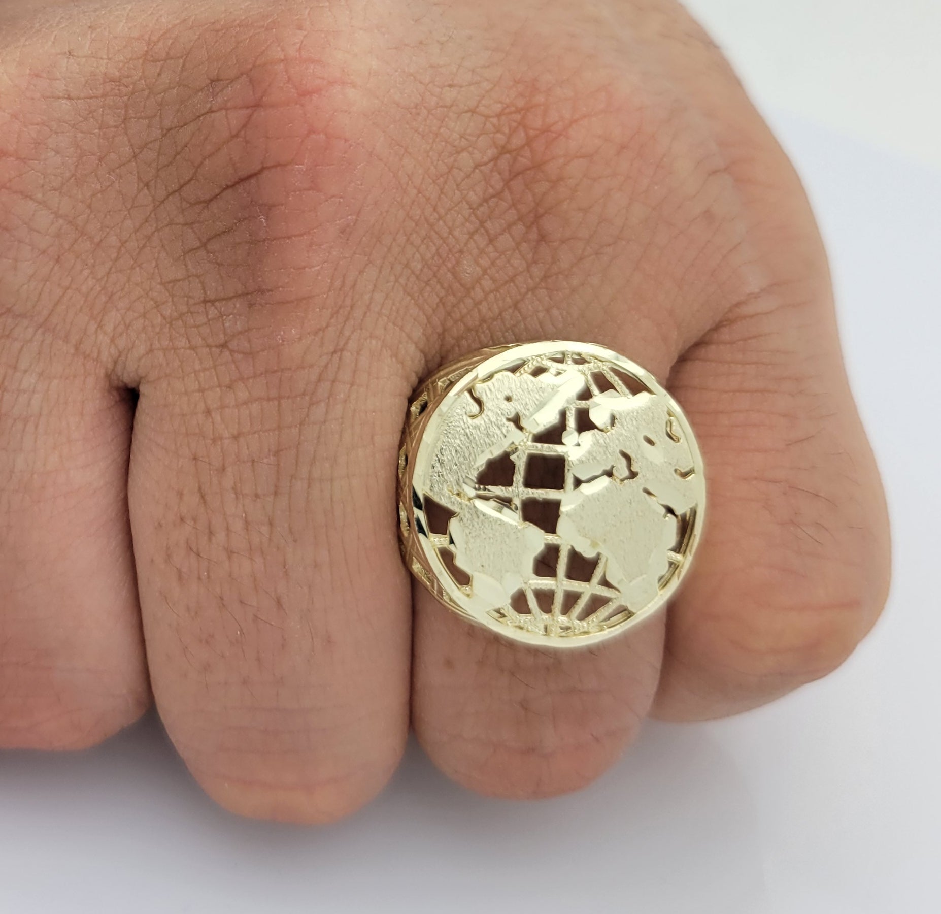 10K Yellow Gold Globe Ring Mens World Map Ring