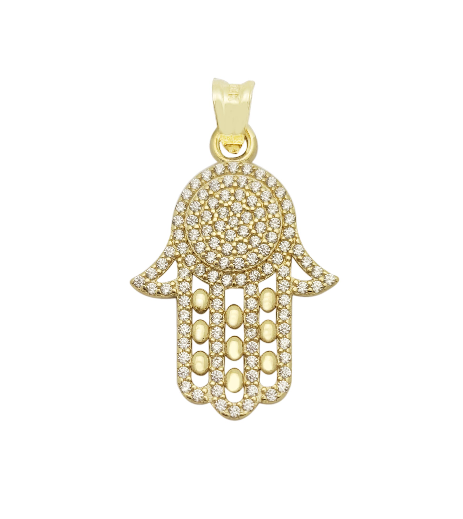 10k Yellow Gold Hamsa Pendant Hand of Fatima Charm 1.1 inch