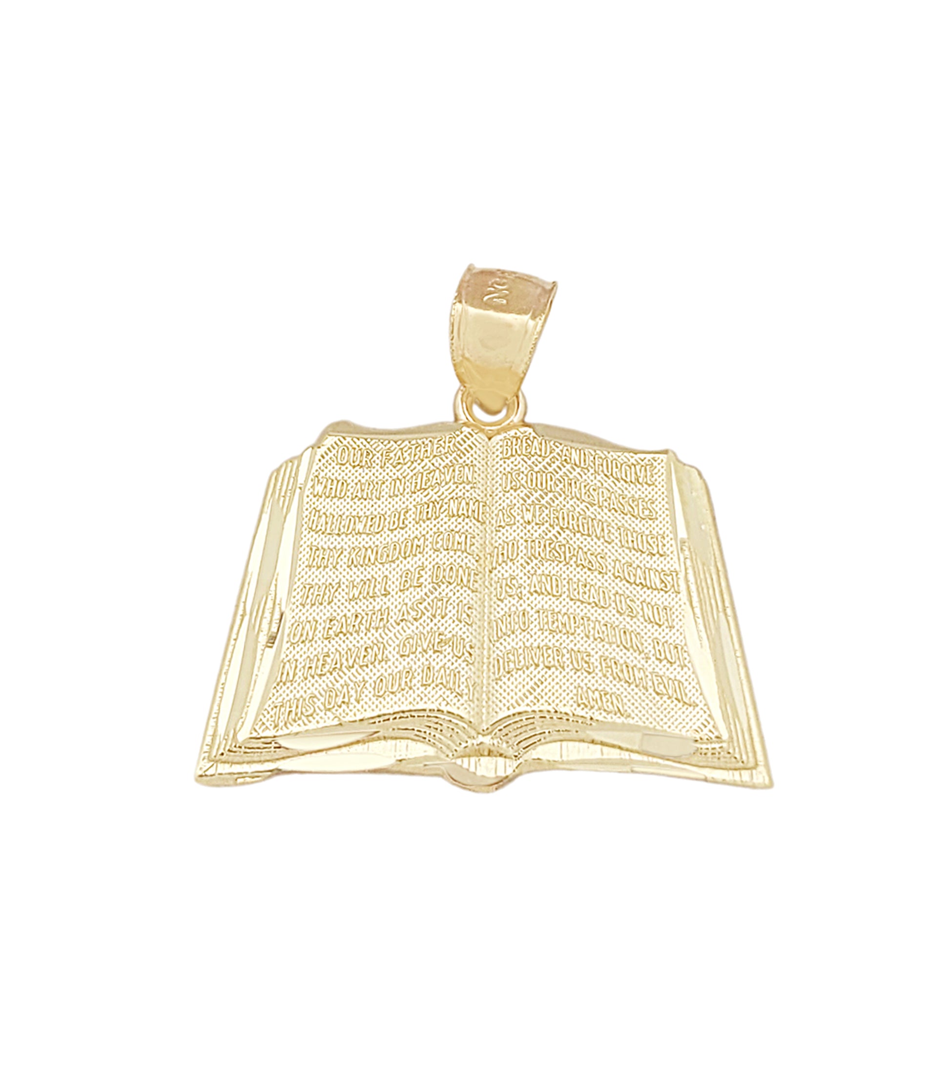 10K Yellow Gold Holy Bible Pendant Bible Charm With The Lord's Prayer