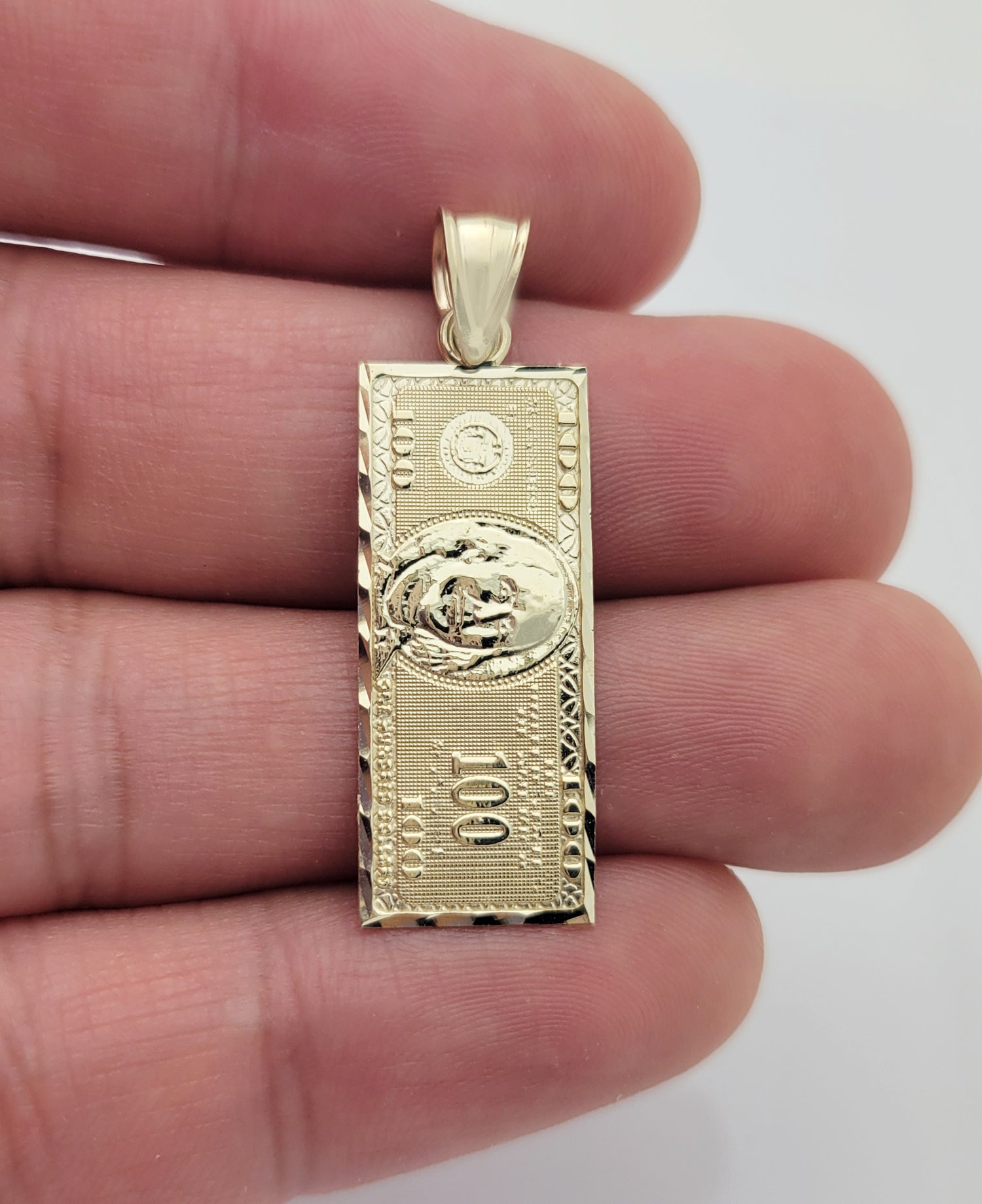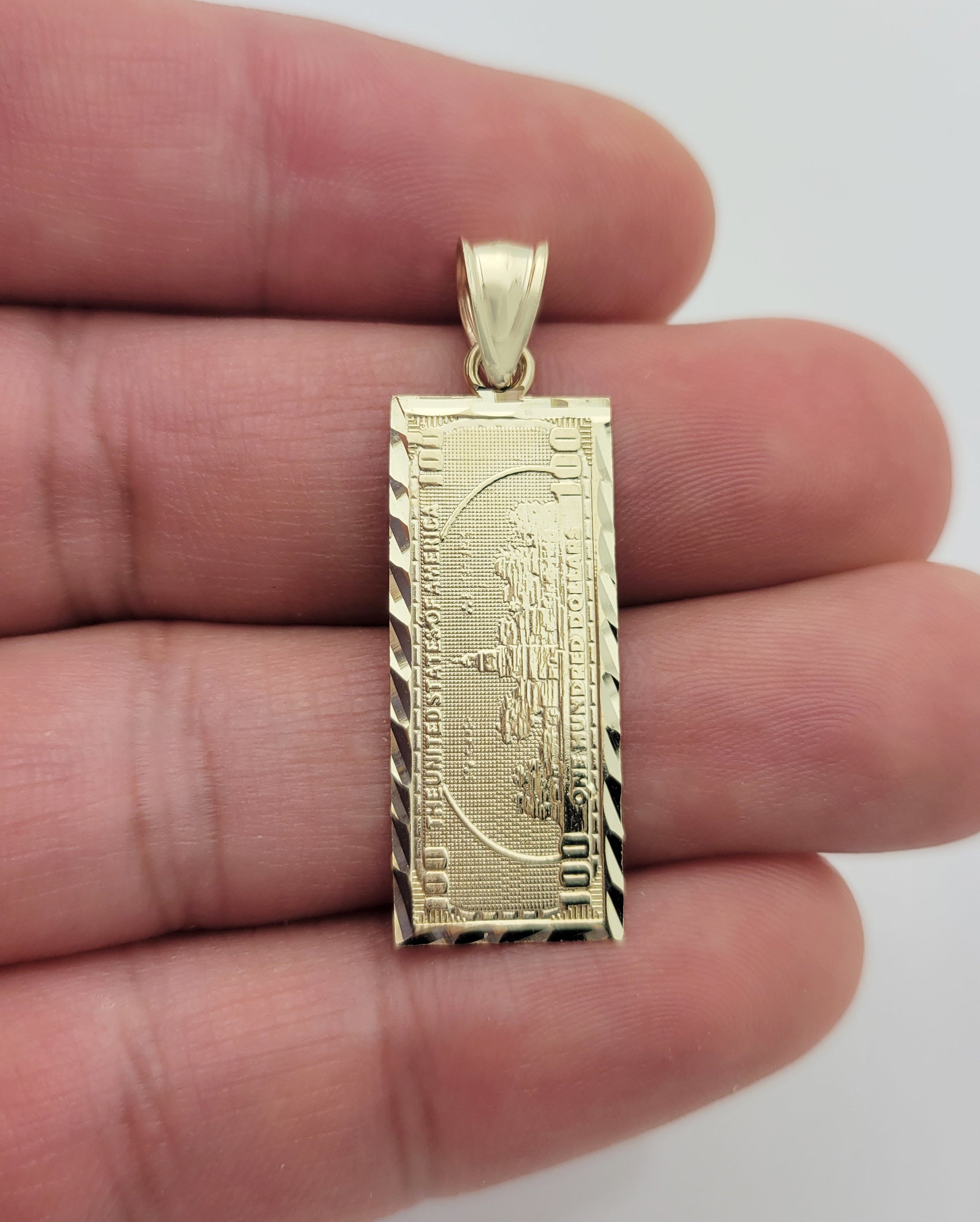 10K Yellow Gold Hundred Dollar Bill Pendant Benjamin Franklin Bill Charm