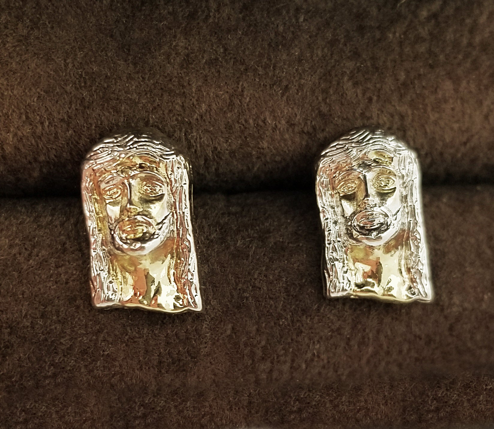 10K Yellow Gold Jesus Face Earrings Jesus Head Earrings