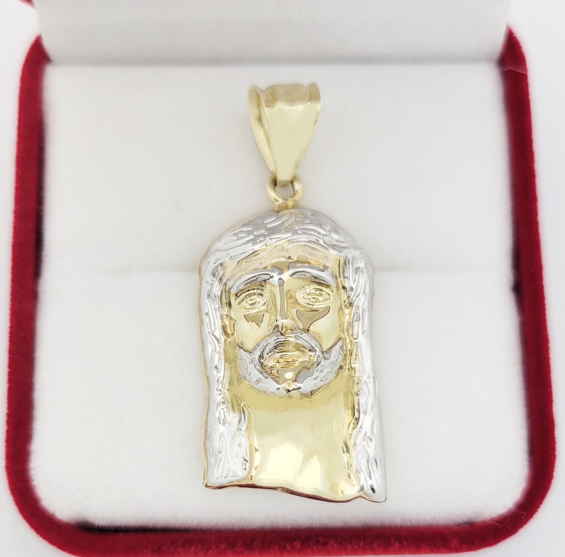10k Yellow Gold Jesus Face Pendant Jesus Head Charm 1.5 inch