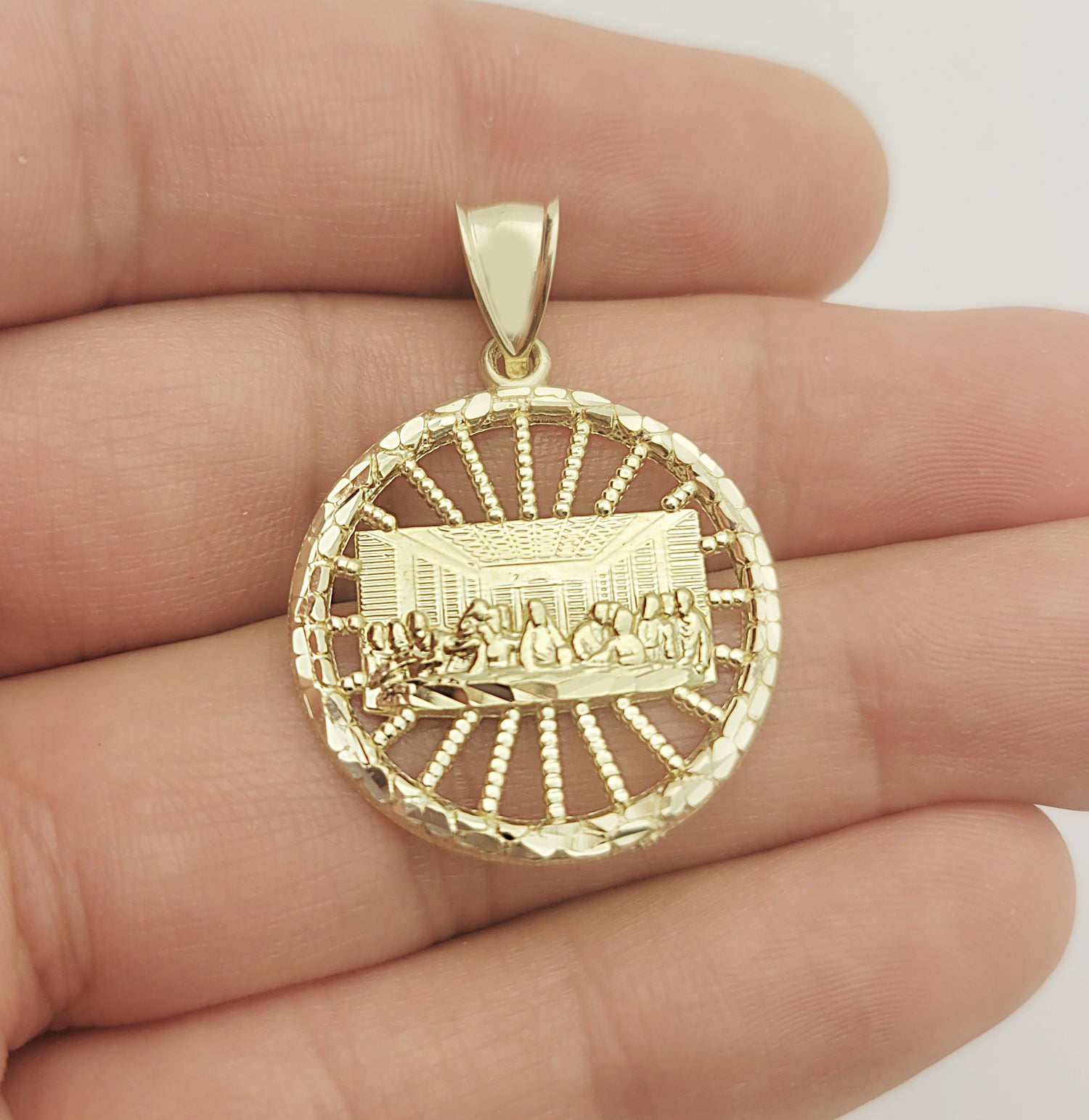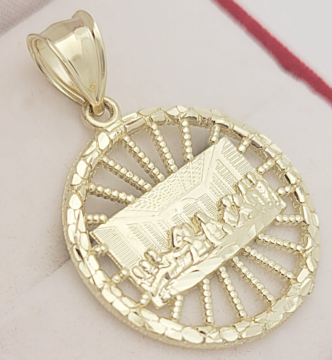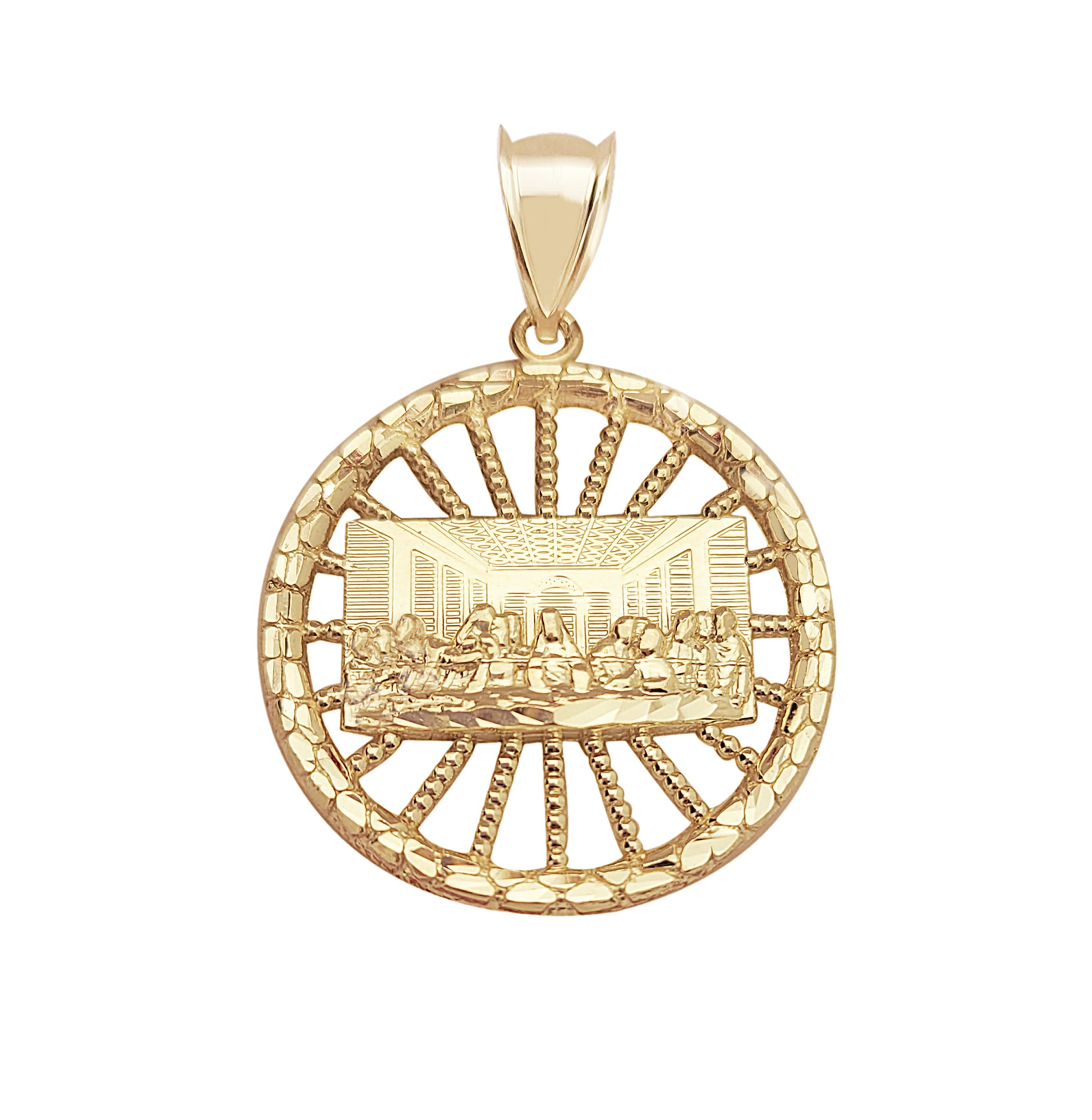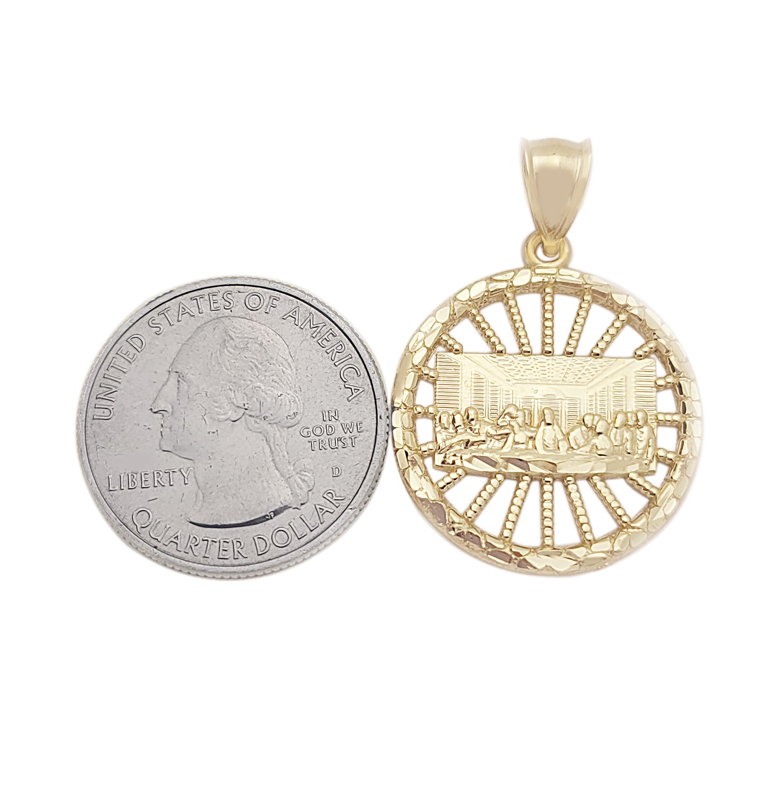 10K Yellow Gold Last Supper Pendant Last Supper Medal Round 1.0 in Diameter