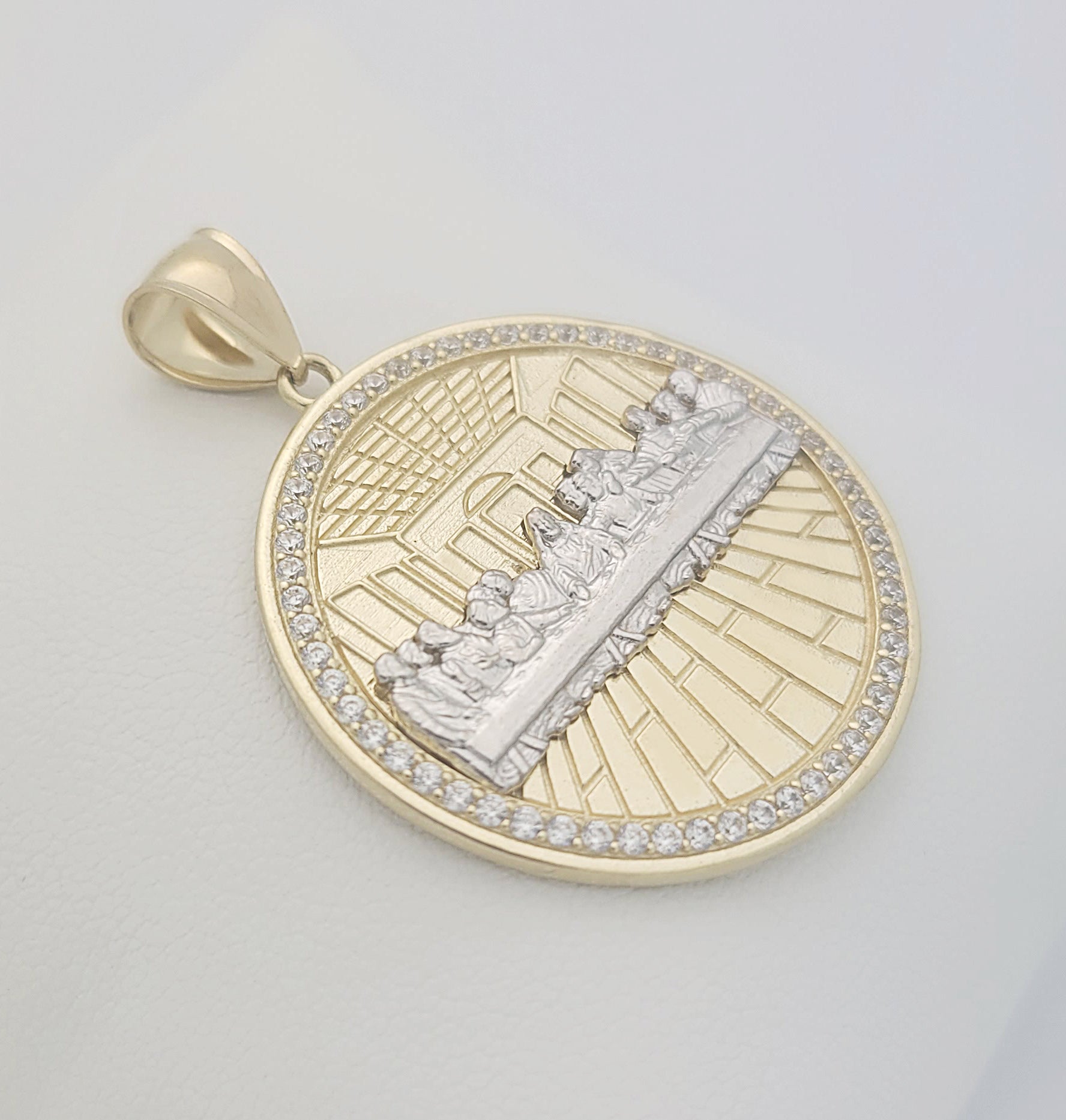 10K Yellow Gold Last Supper Pendant Last Supper Medal Round Medallion With CZ