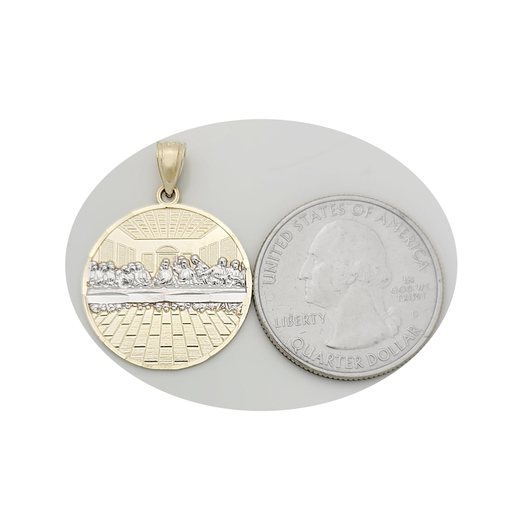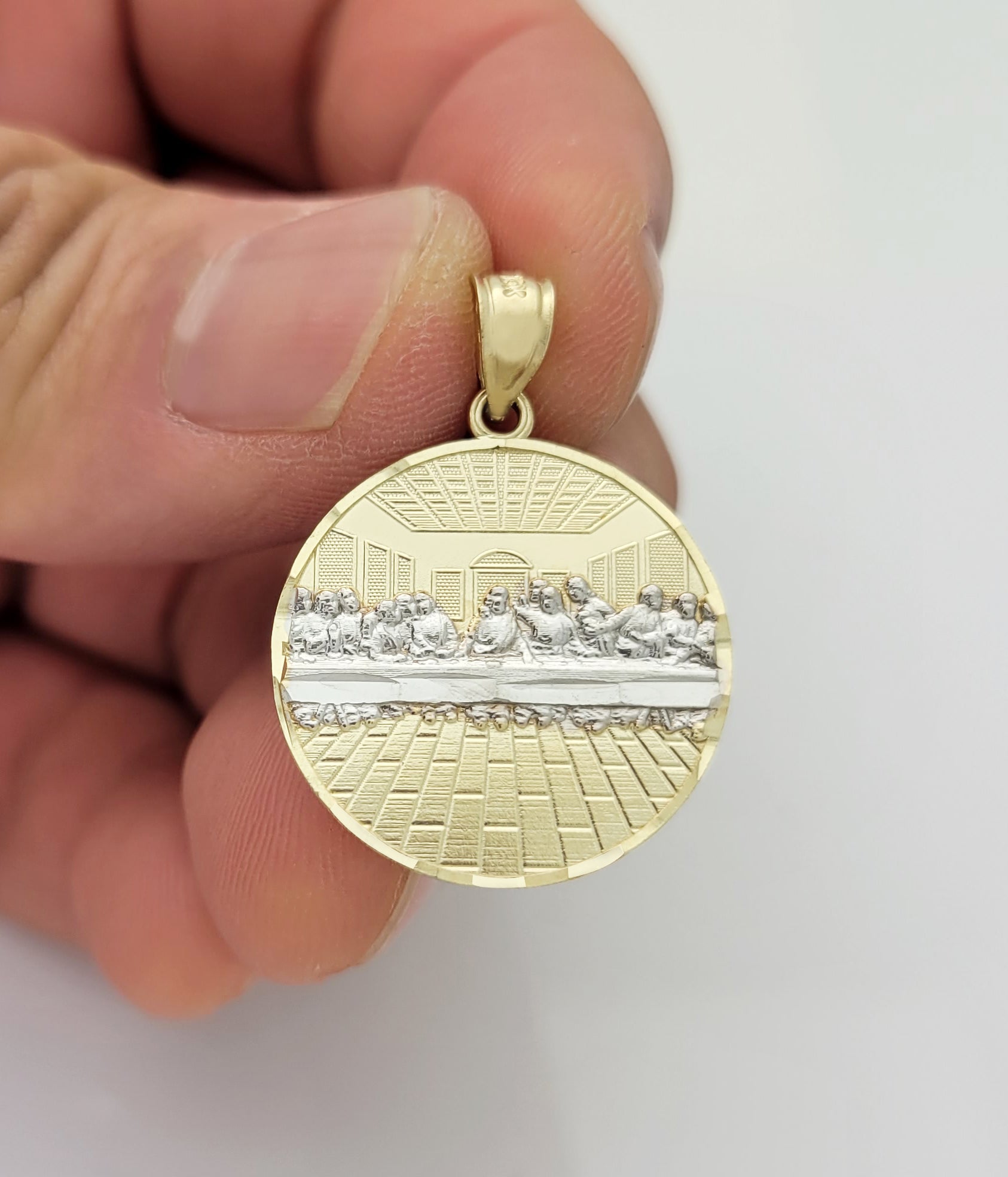10K Yellow Gold Last Supper Pendant Last Supper Medallion 1.1 inch