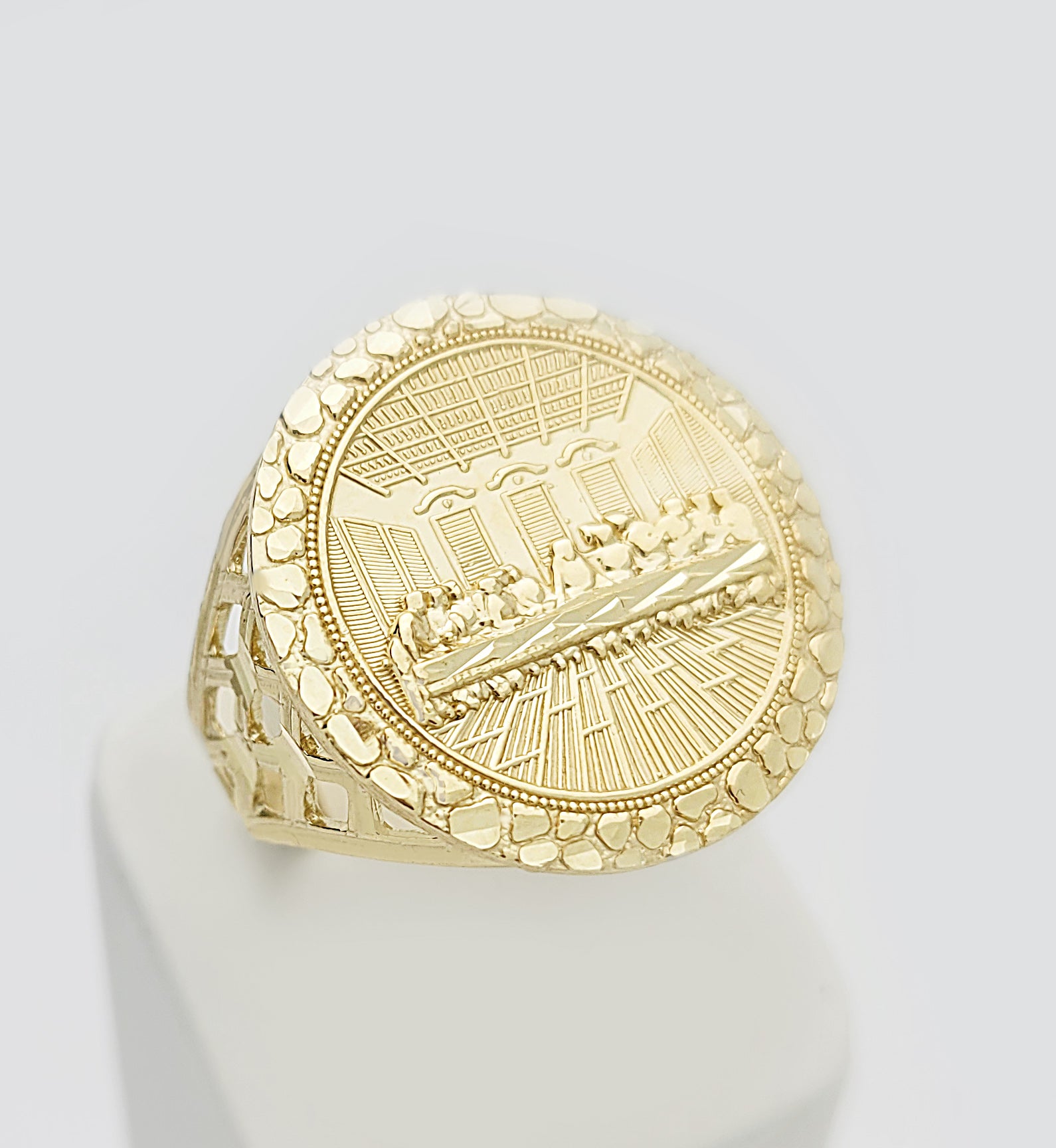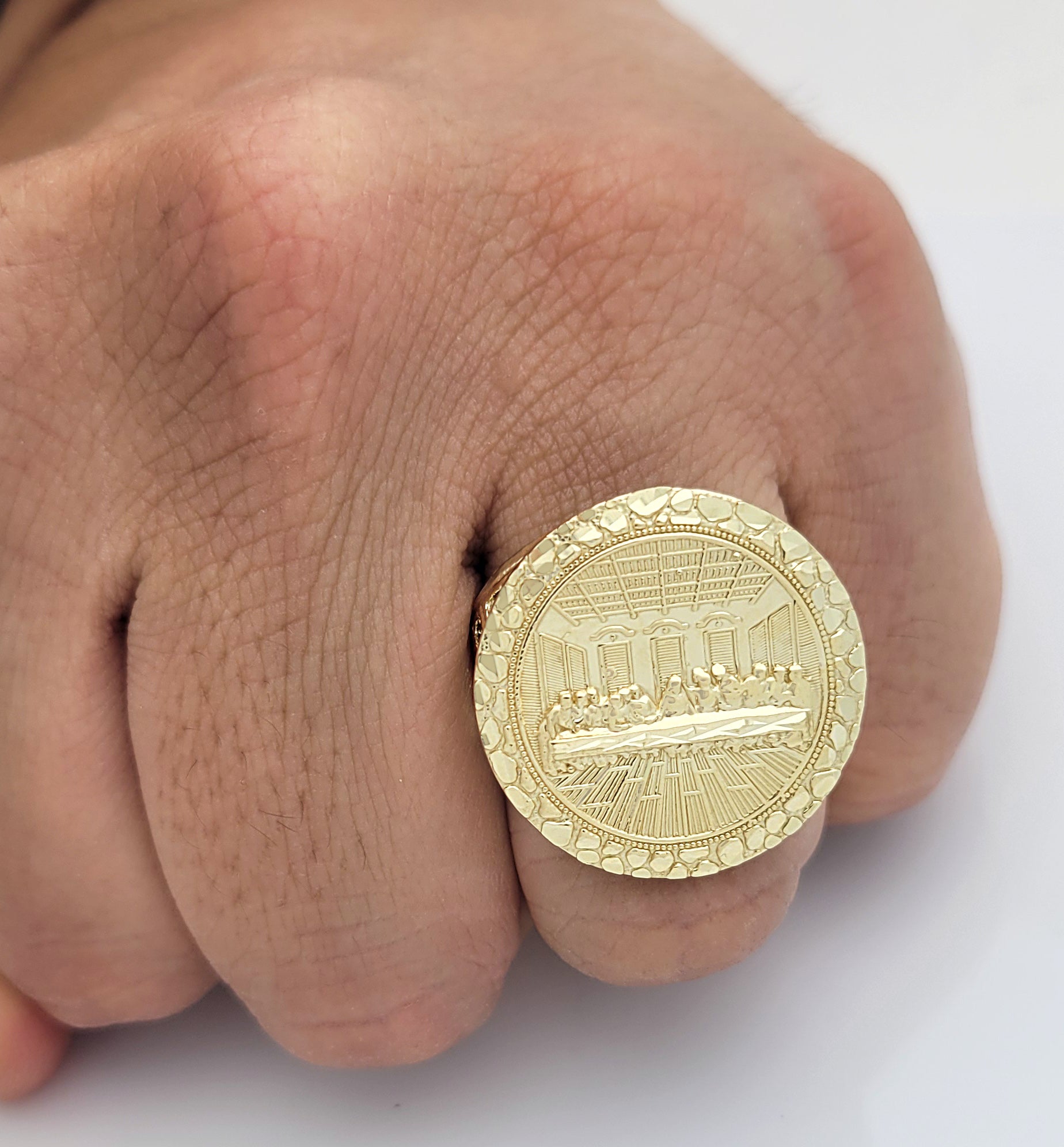 10K Yellow Gold Last Supper Ring Mens Last Supper Solid Gold Ring Round Head