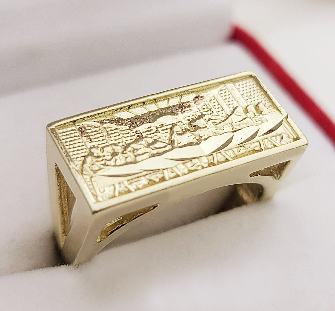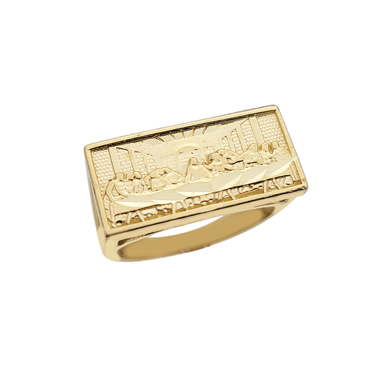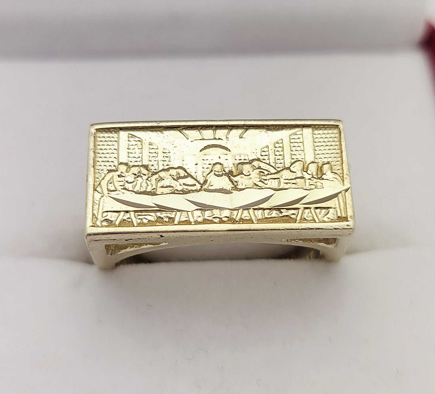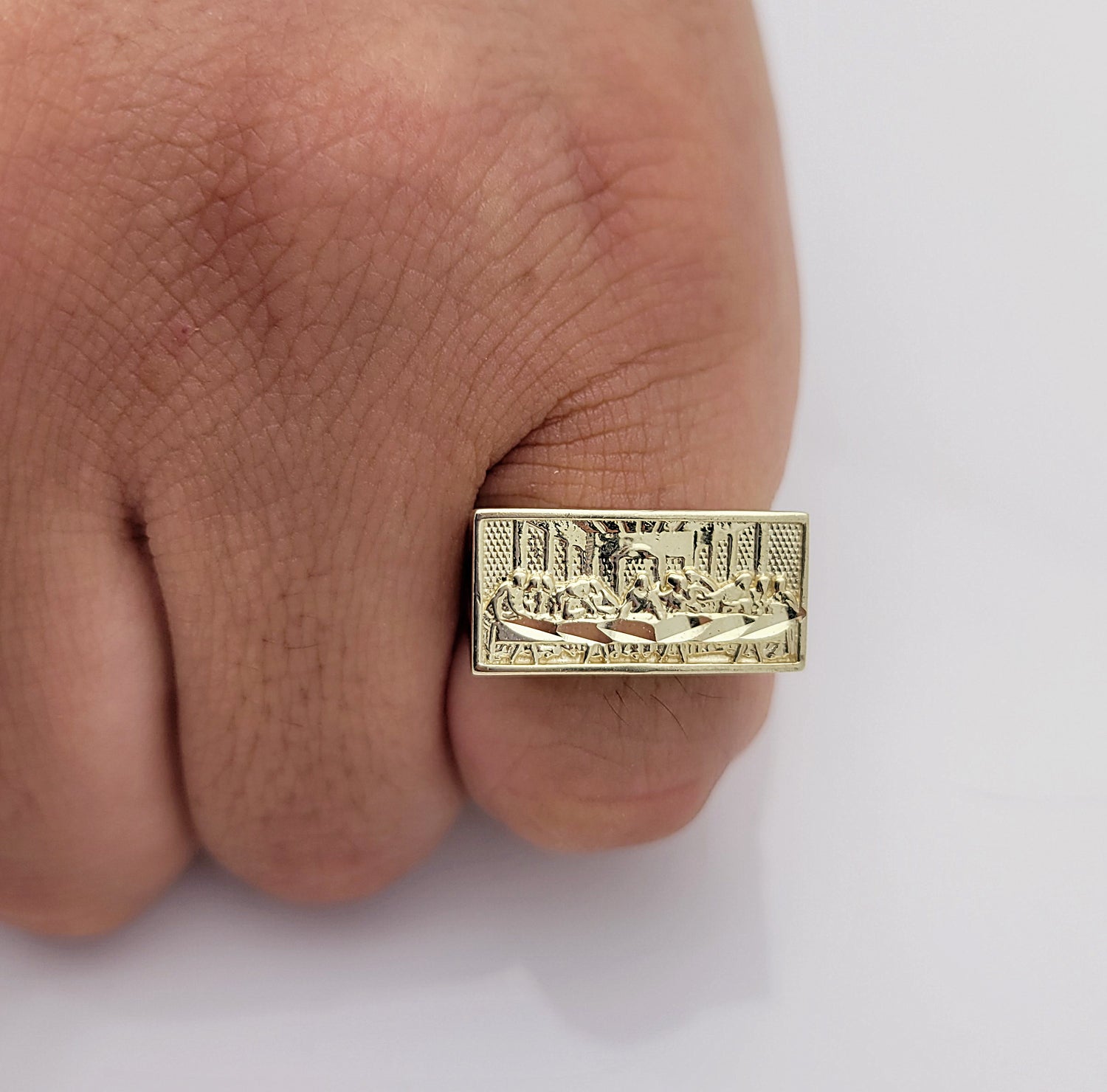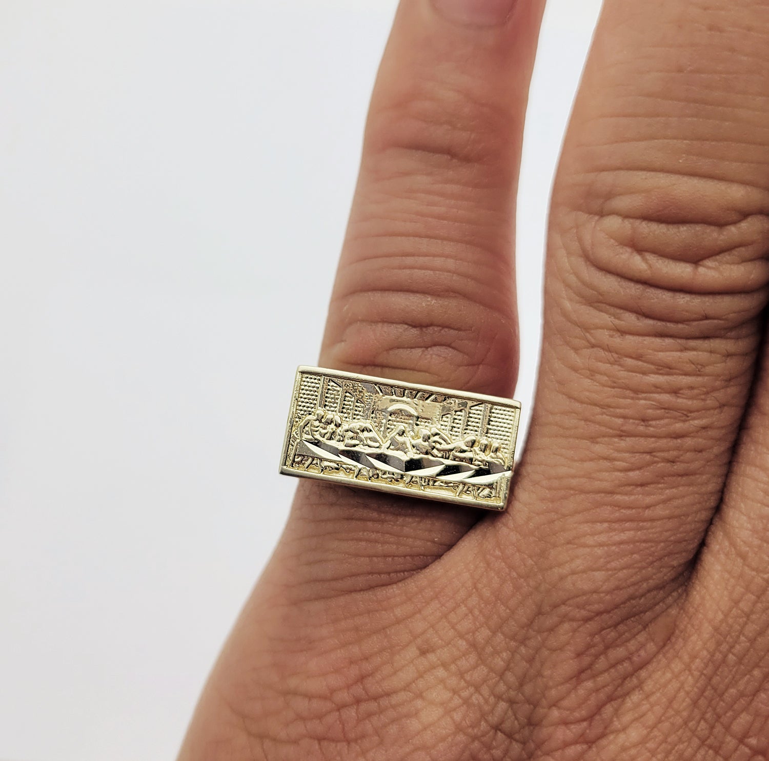 10K Yellow Gold Last Supper Ring Mens Last Supper Solid Gold Ring Size 7