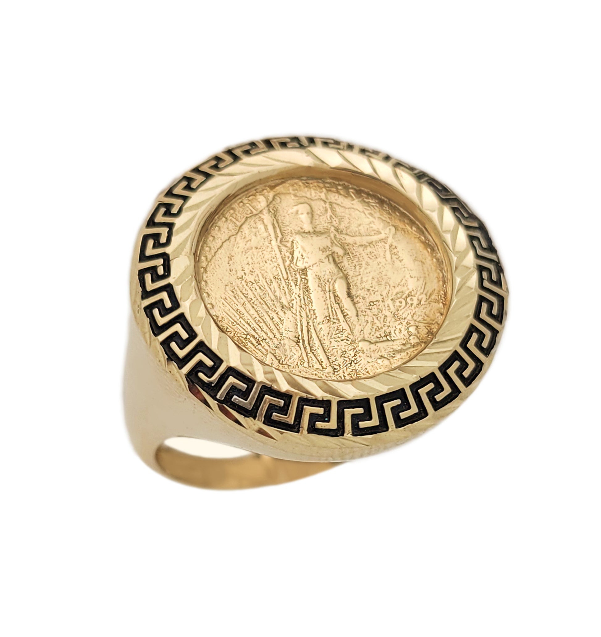 10K Yellow Gold Liberty Coin Ring For Men St. Gaudens Double Eagle Liberty Coin Ring