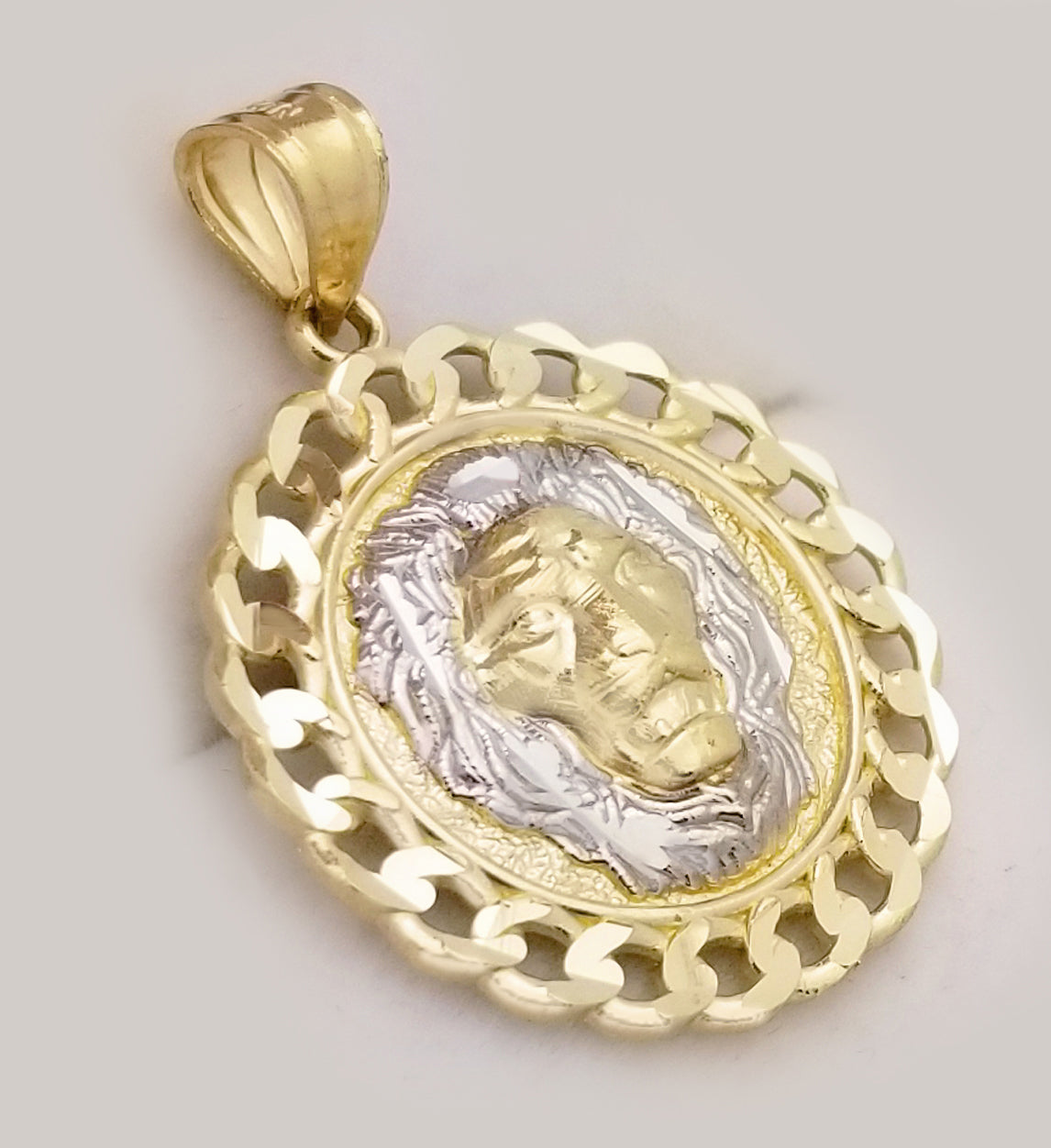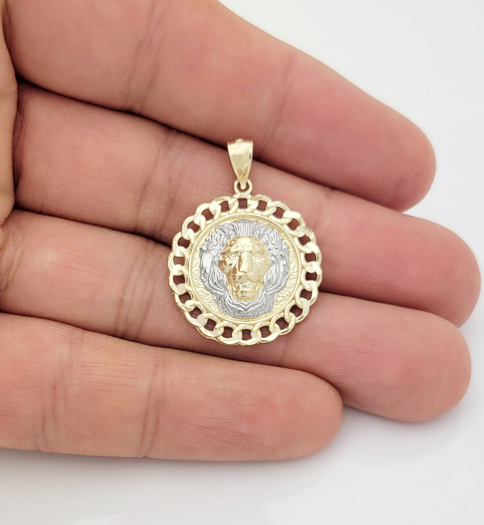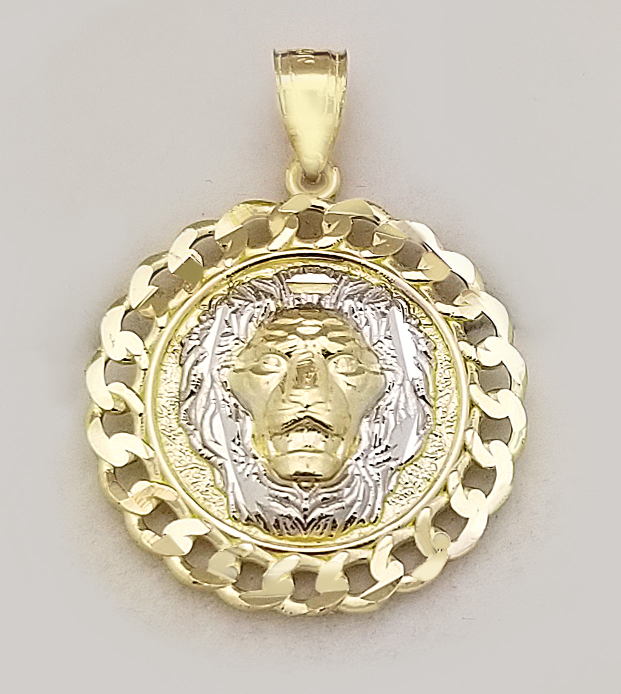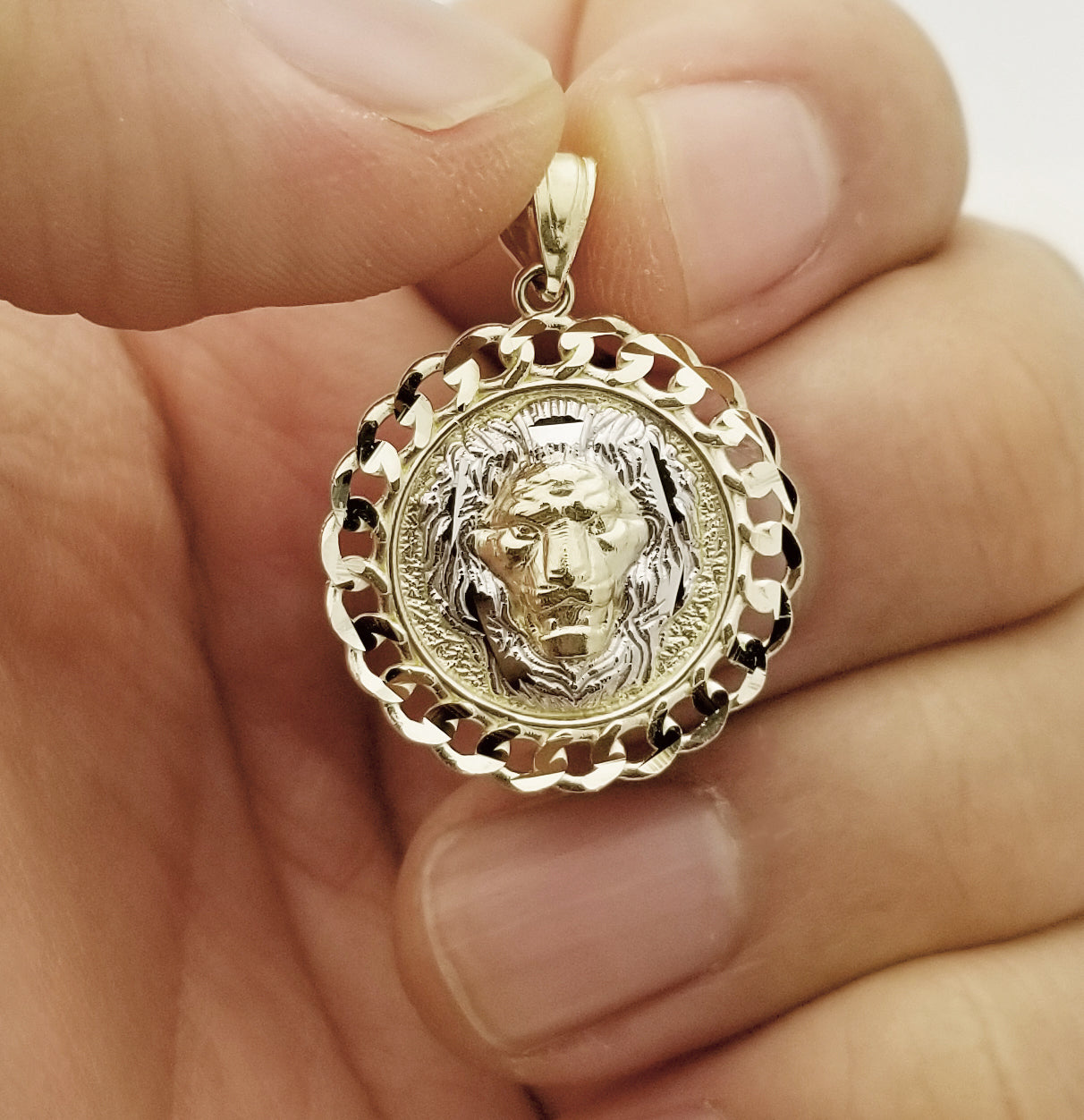 10K Yellow Gold Lion Face Charm Lion Head Pendant Cuban Frame