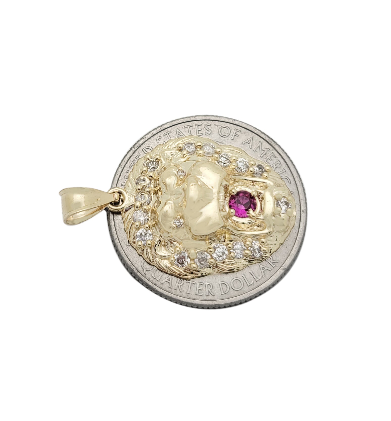 10K Yellow Gold Lion Head Charm Lion Pendant 1.1 in