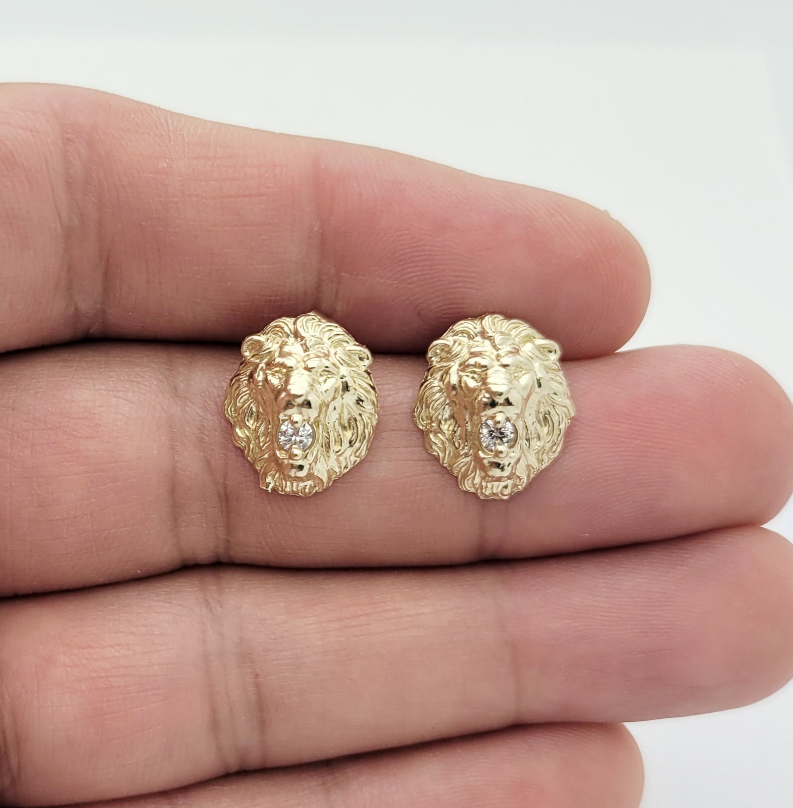 10K Yellow Gold Lion Head Earrings 14.5 mm x 12.5 mm