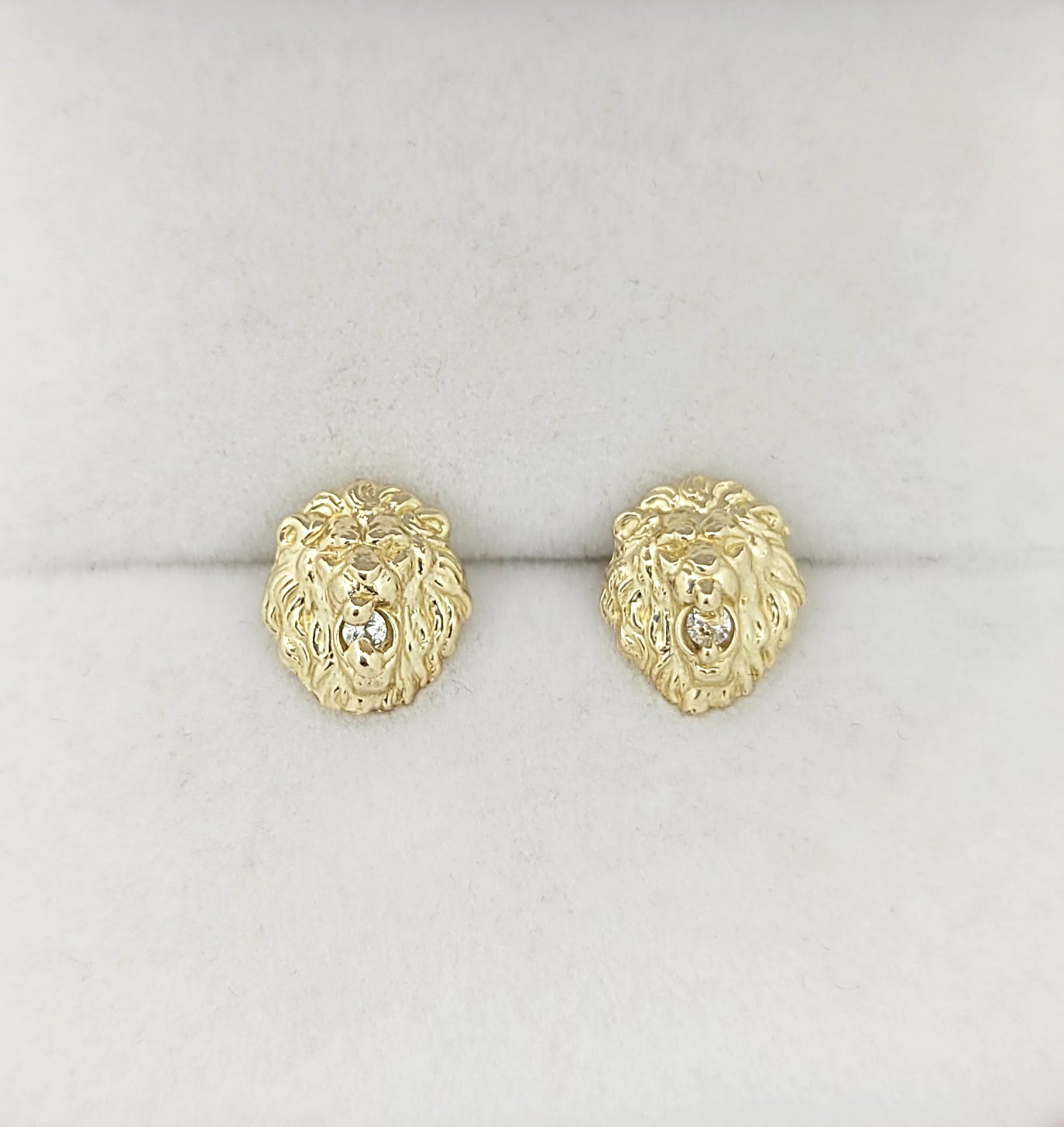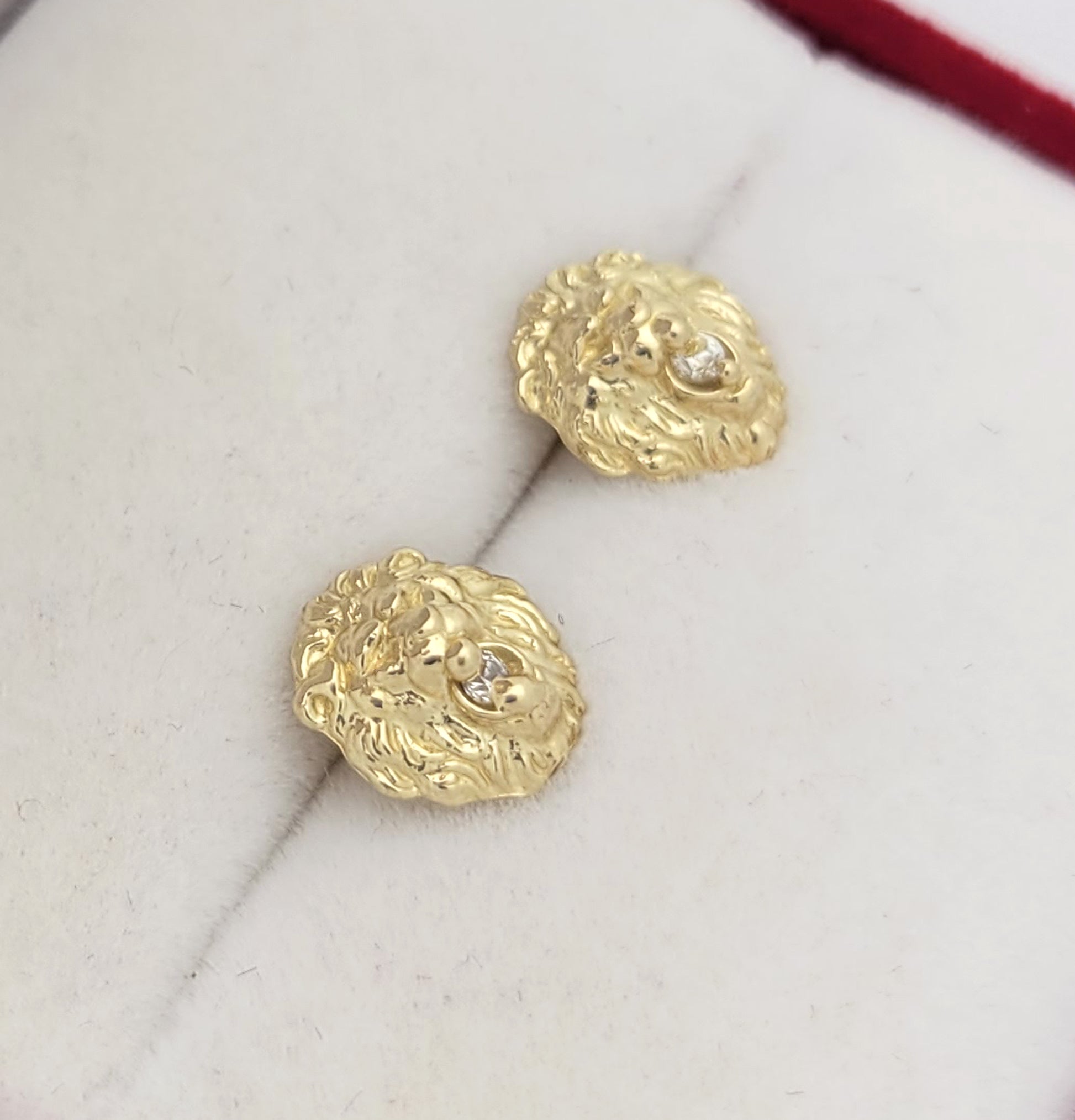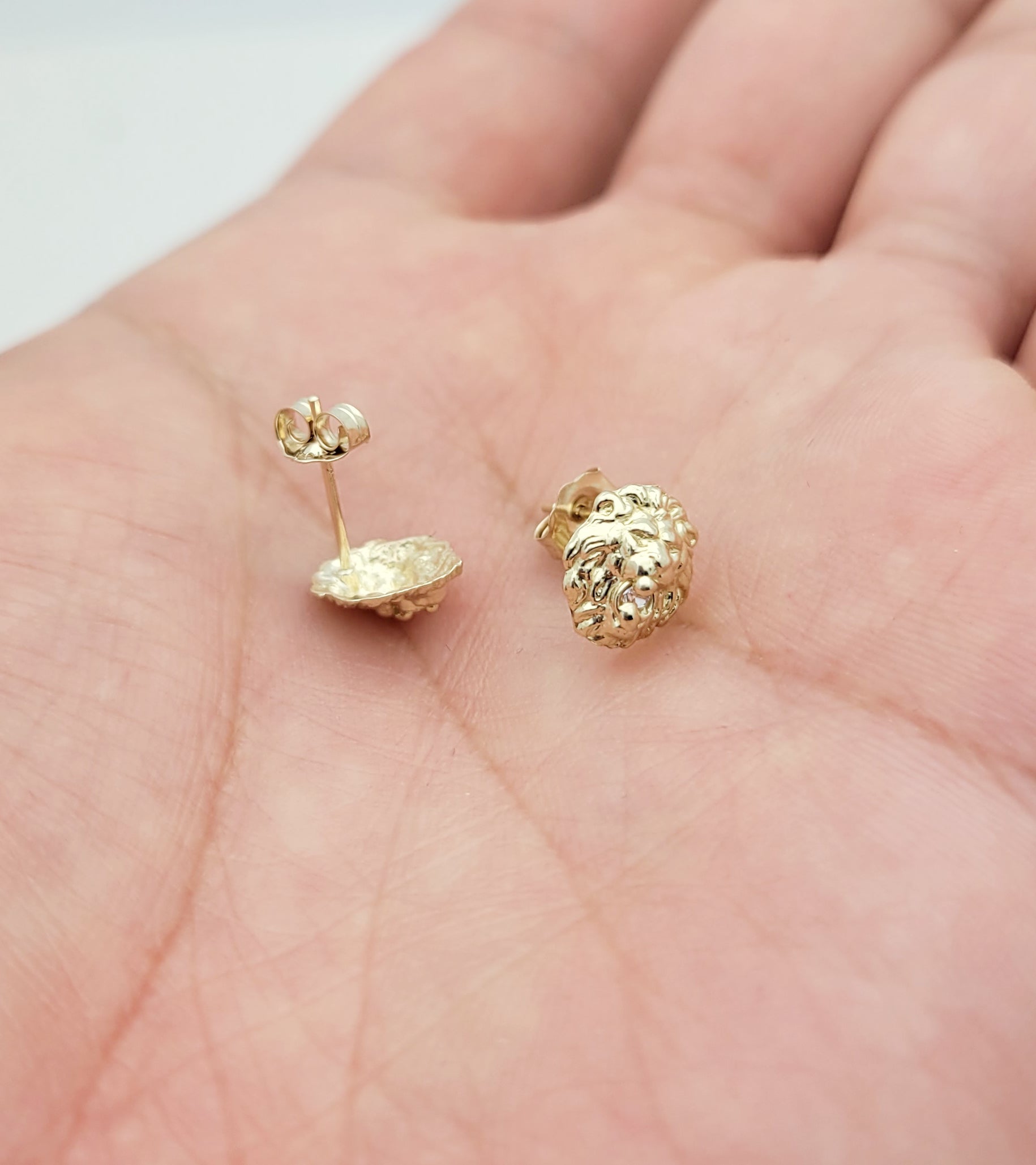 10K Yellow Gold Lion Head Earrings 9 mm x 8 mm