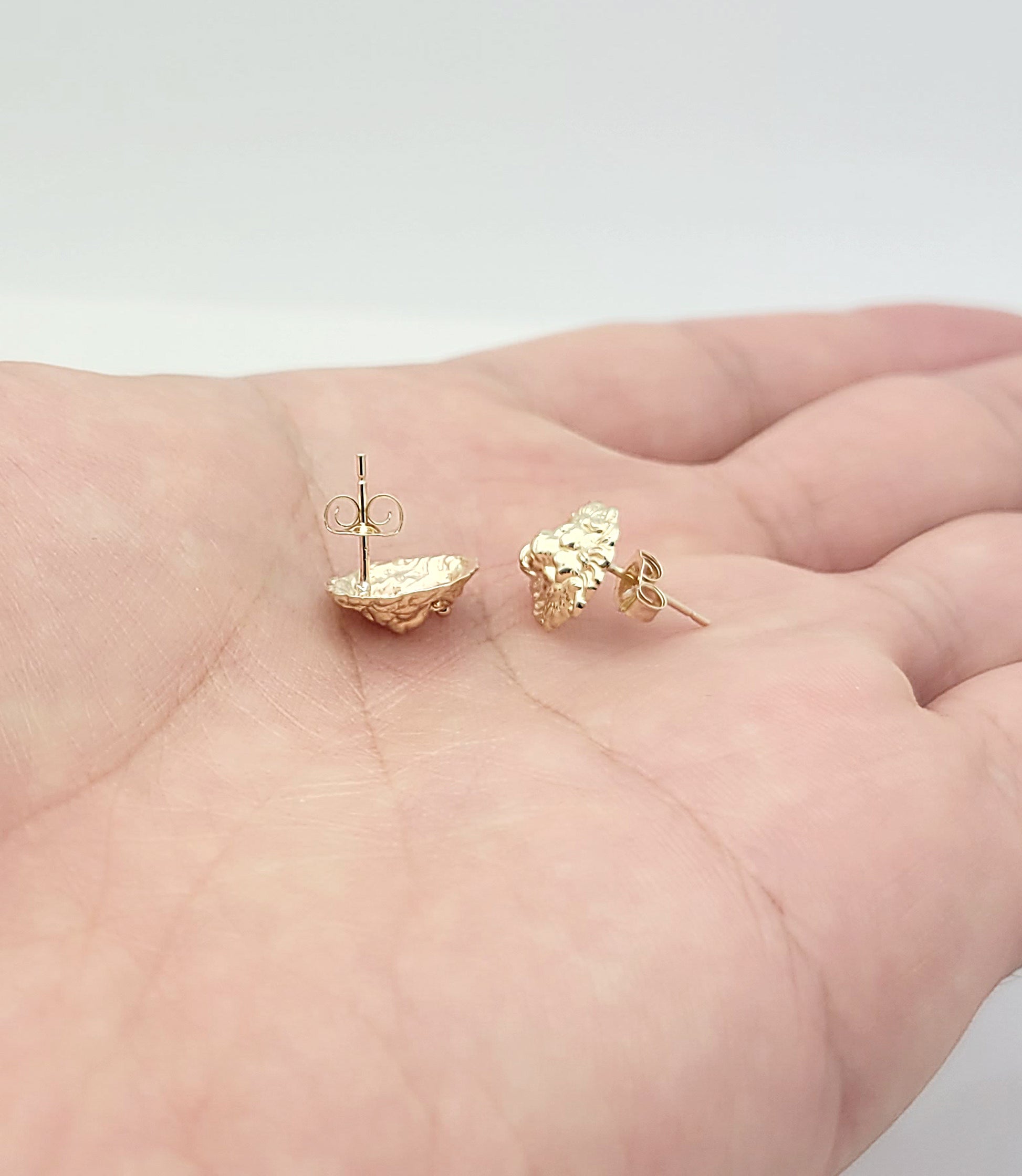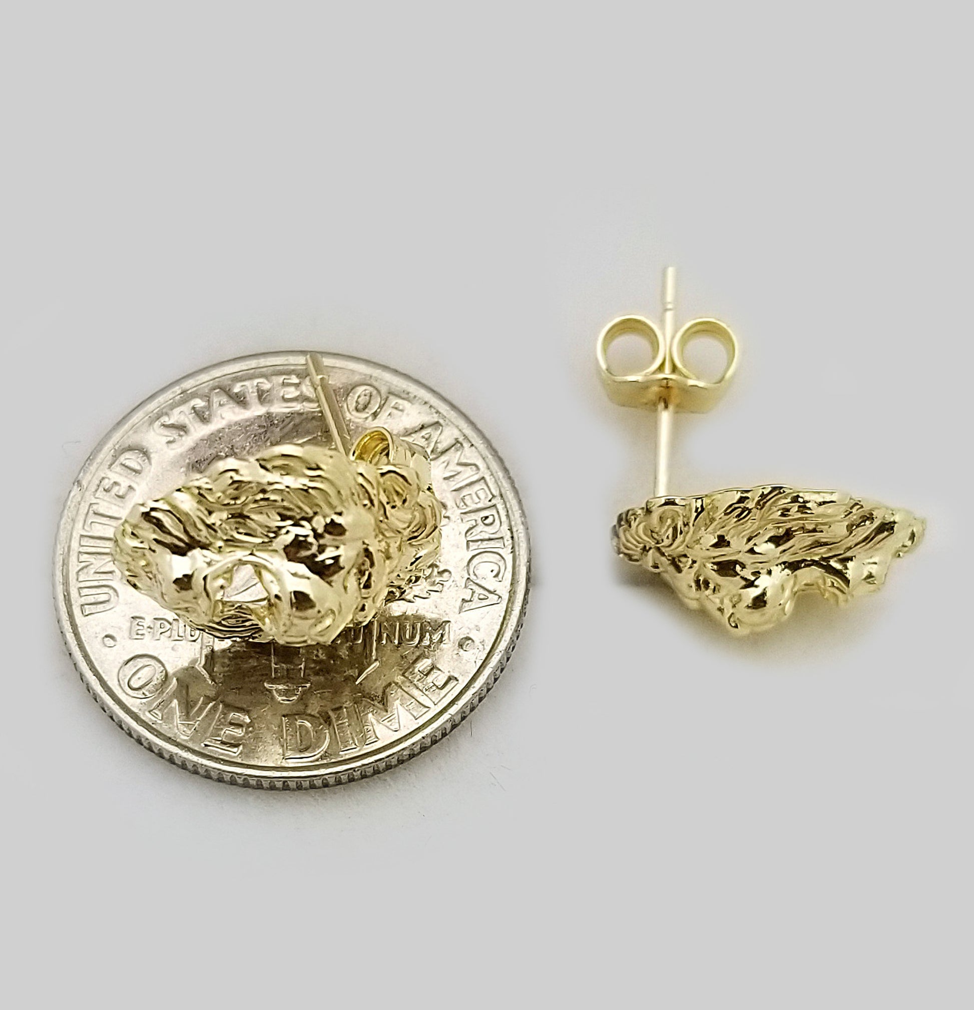 10K Yellow Gold Lion Head Earrings Lion Face Earrings