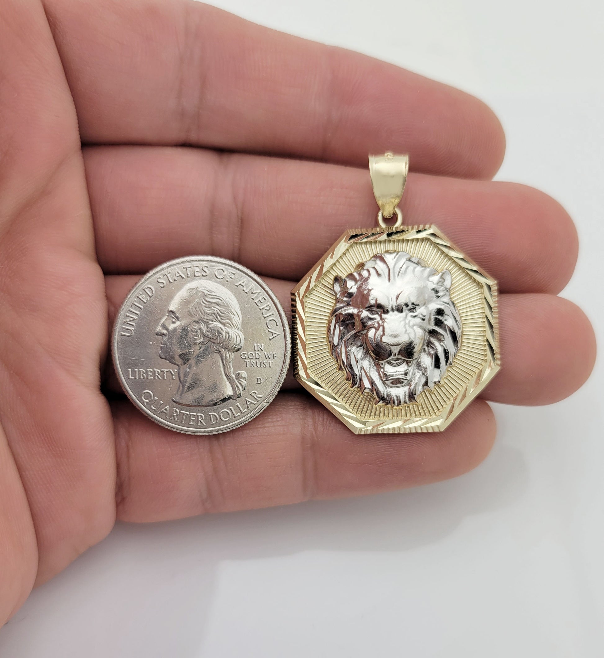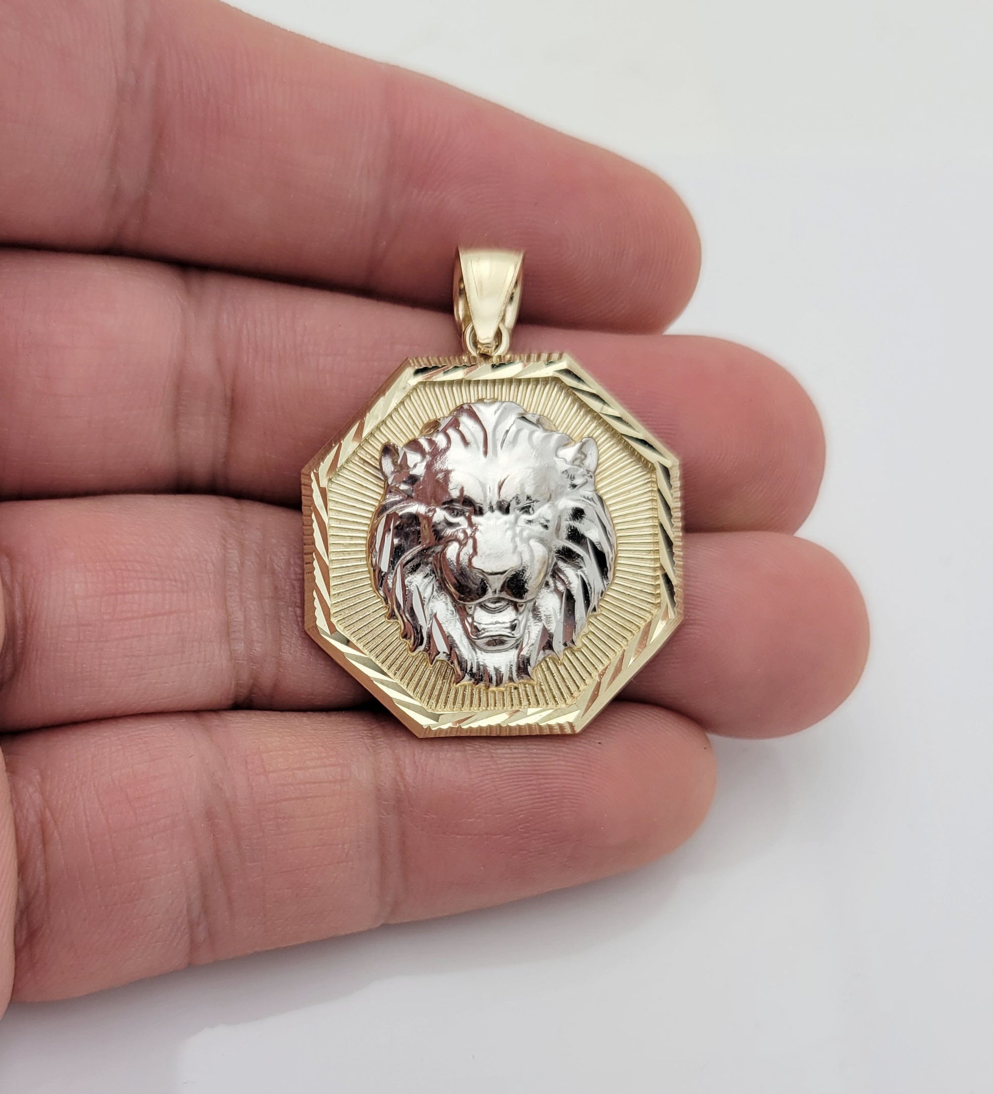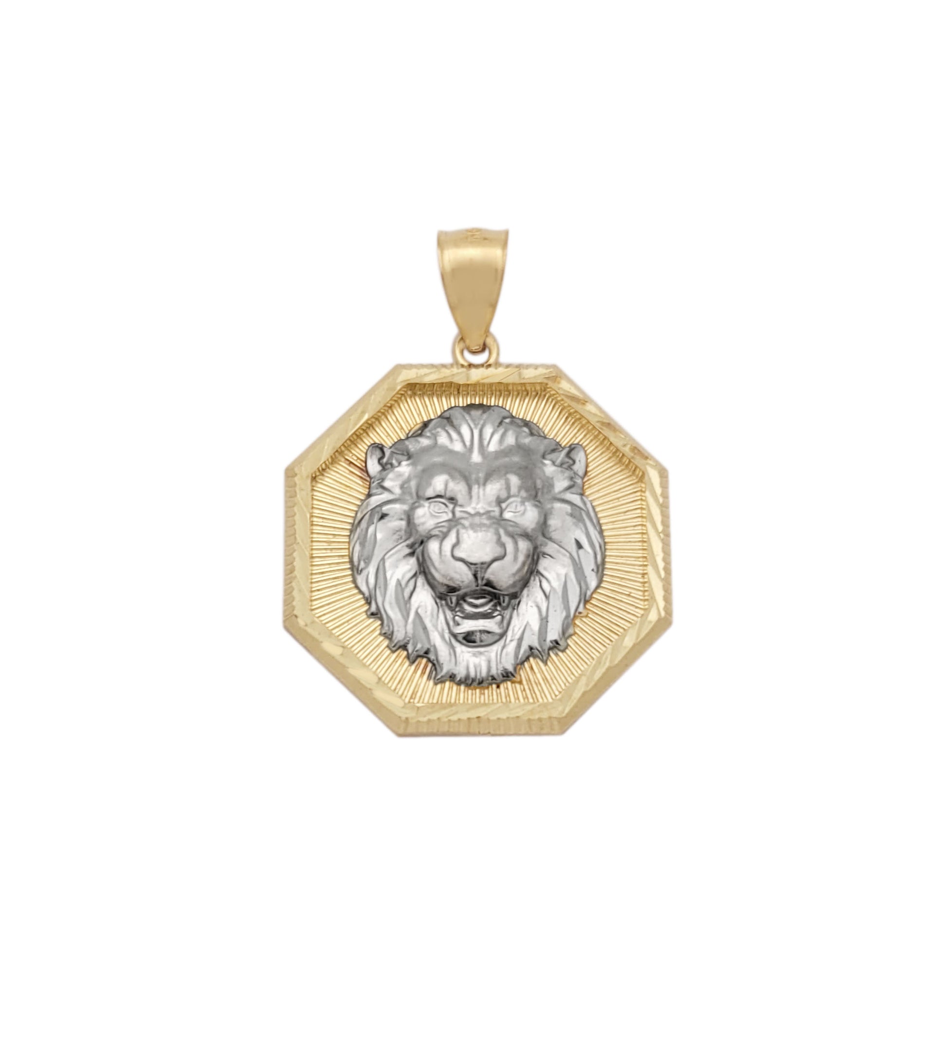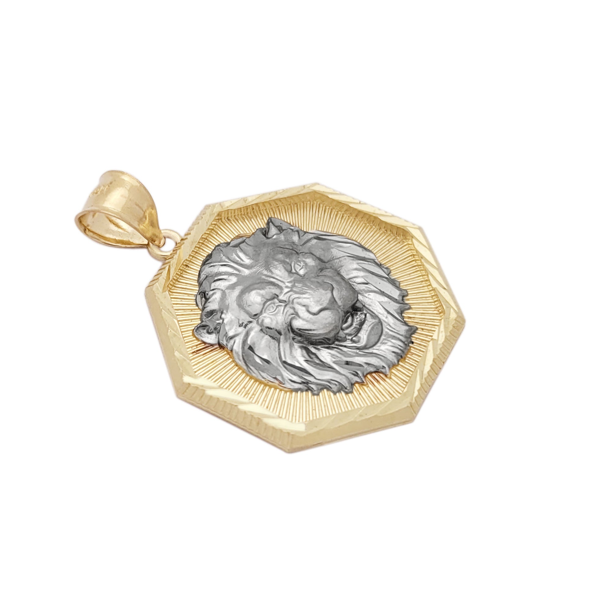 10K Yellow Gold Lion Pendant Octagon Lion Face Medallion