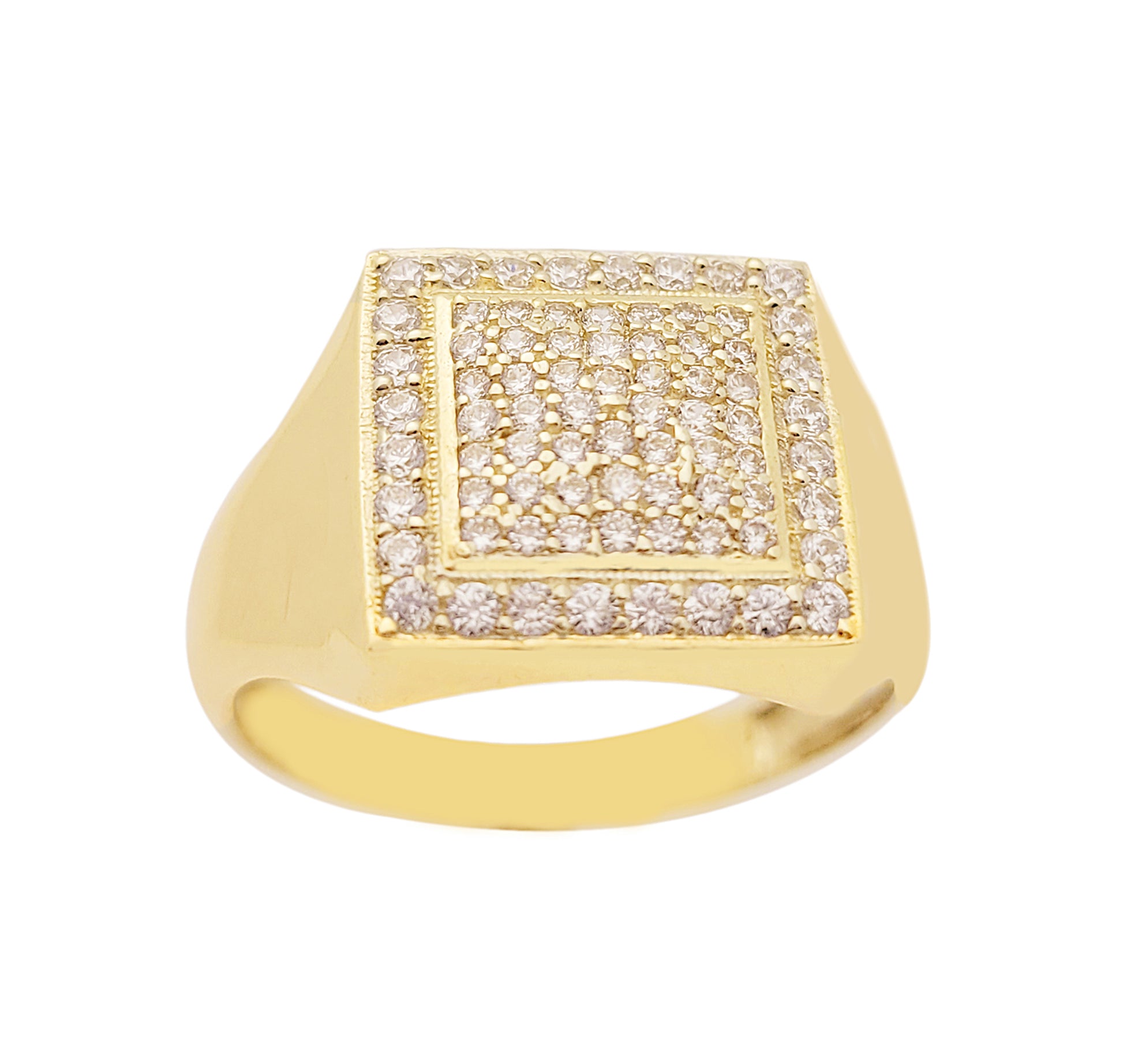 10K Yellow Gold Mens CZ Ring Micro Pave Setting