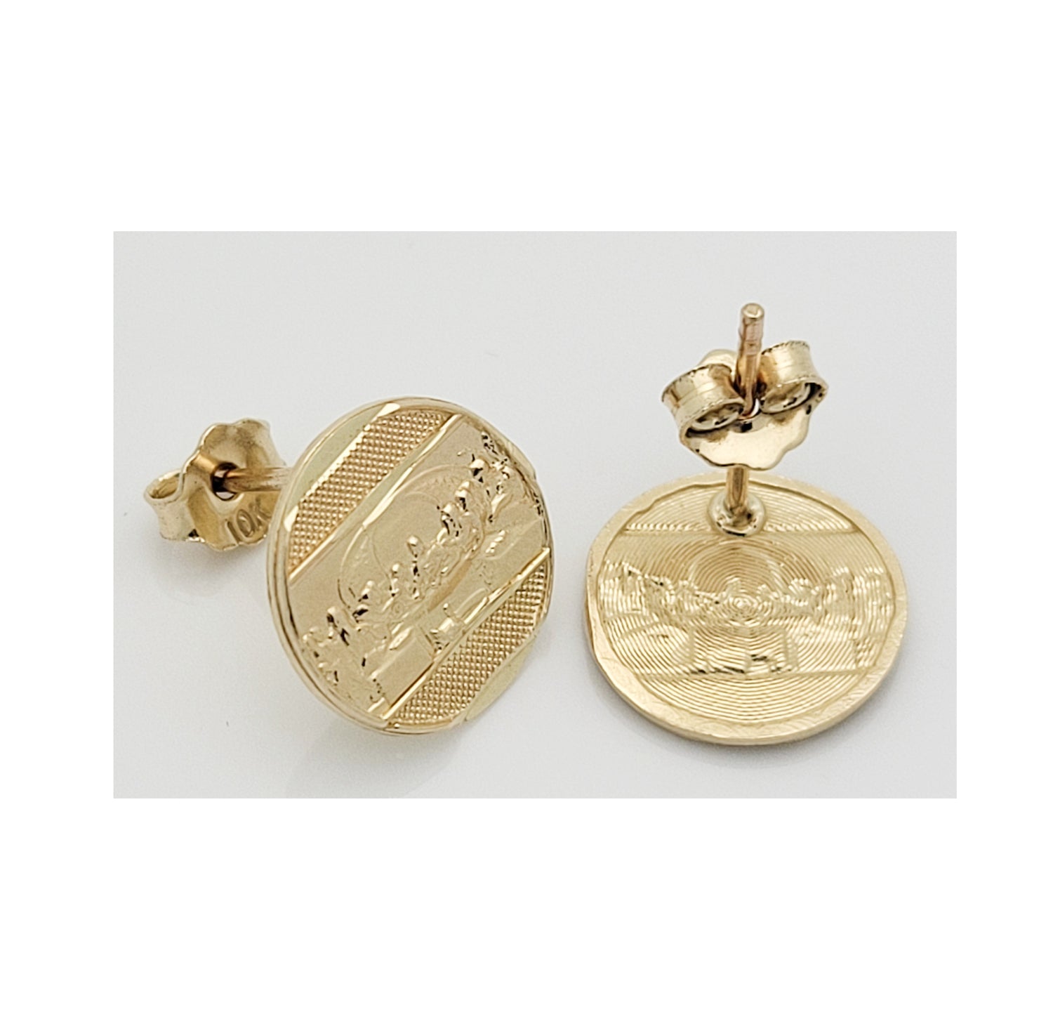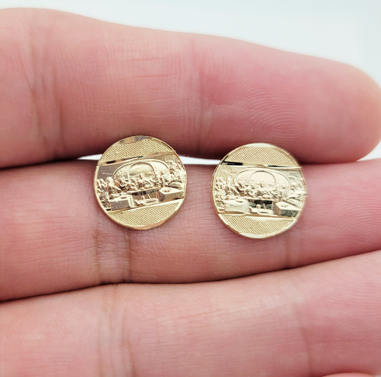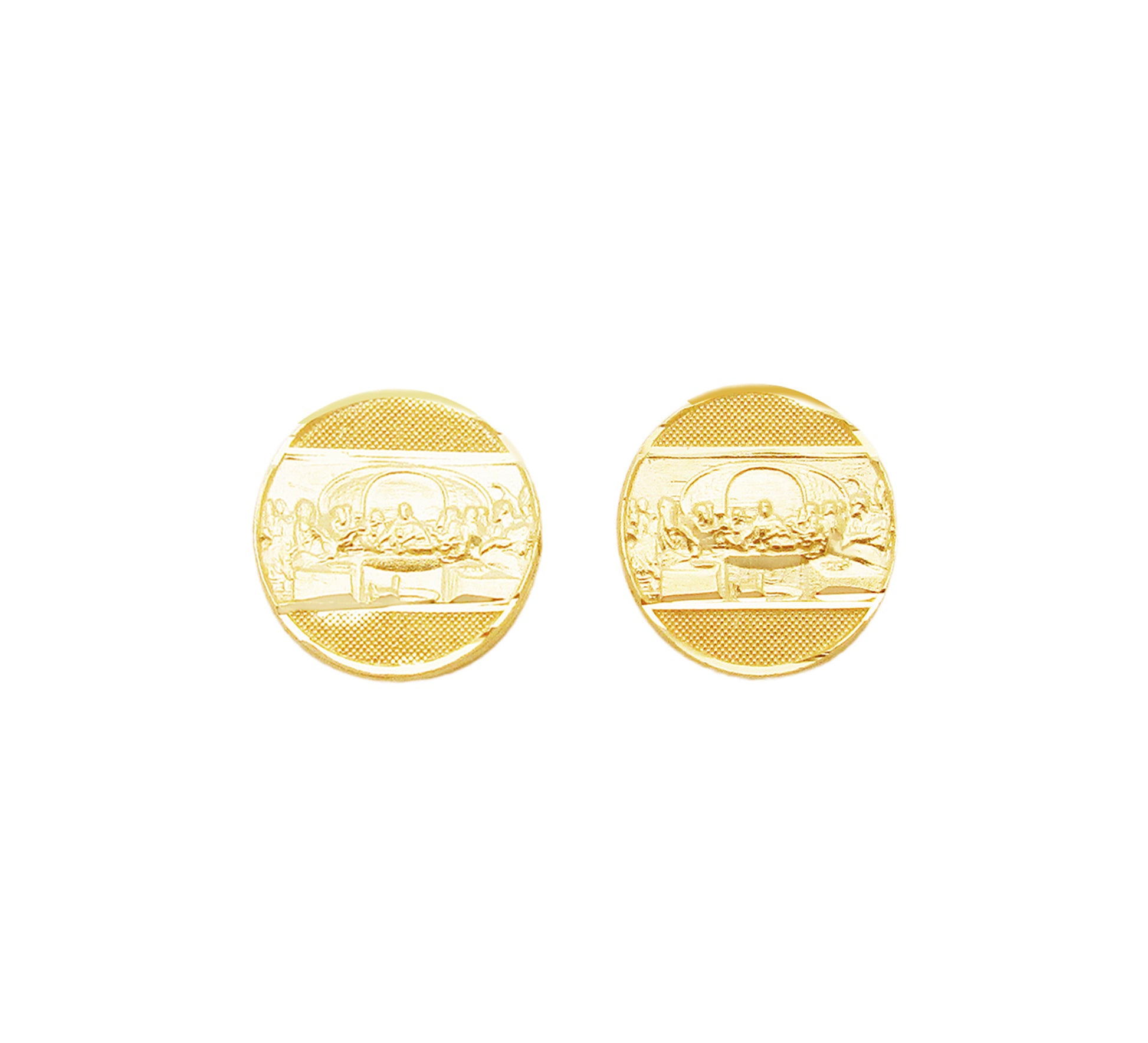 10K Yellow Gold Mens Gold Last Supper Earrings 0.5 inch(12.5 mm)