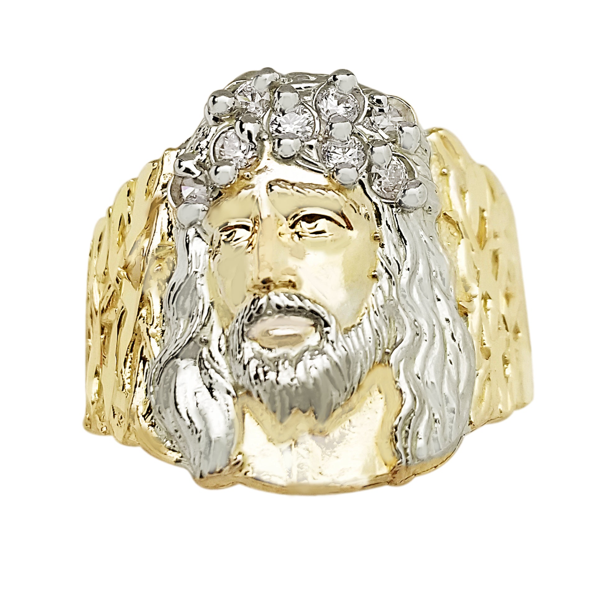 10K Yellow Gold Men's Jesus Ring Jesus Face Ring With CZ