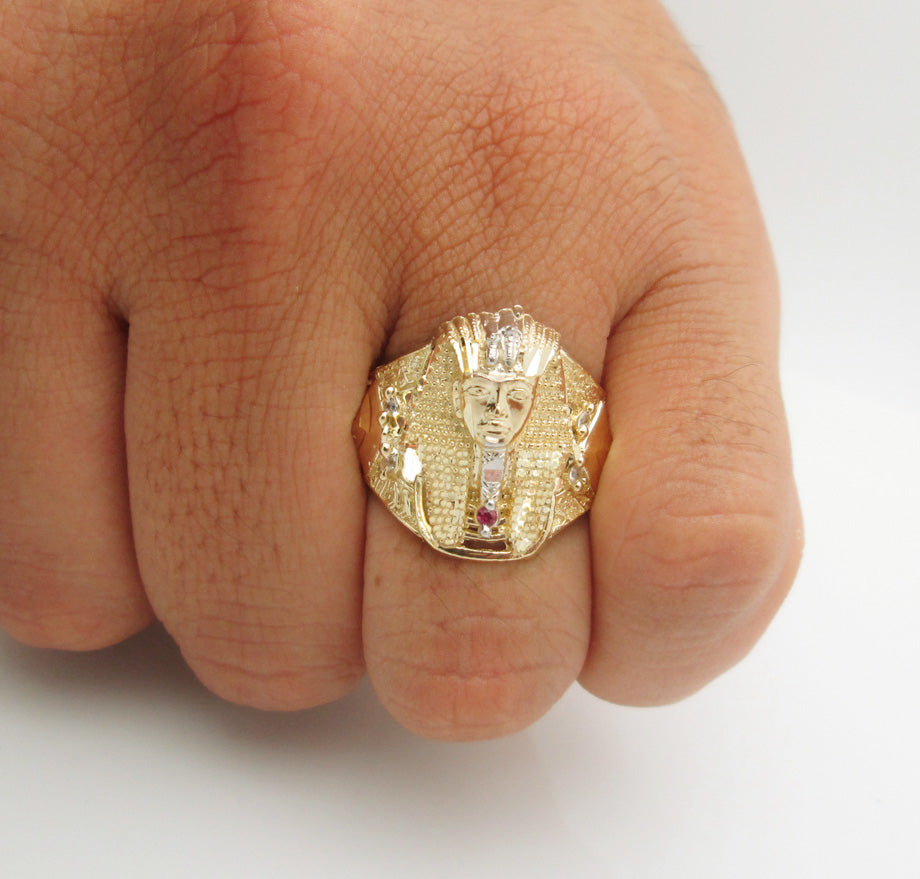 10K Yellow Gold Men's Pharaoh Ring Egyption King Tut Ring