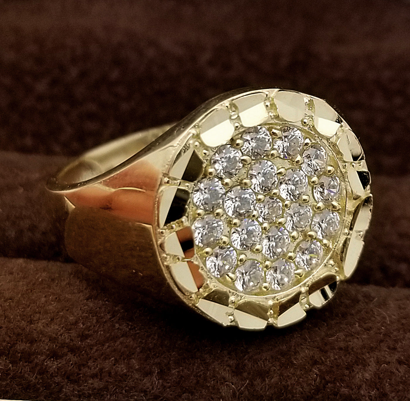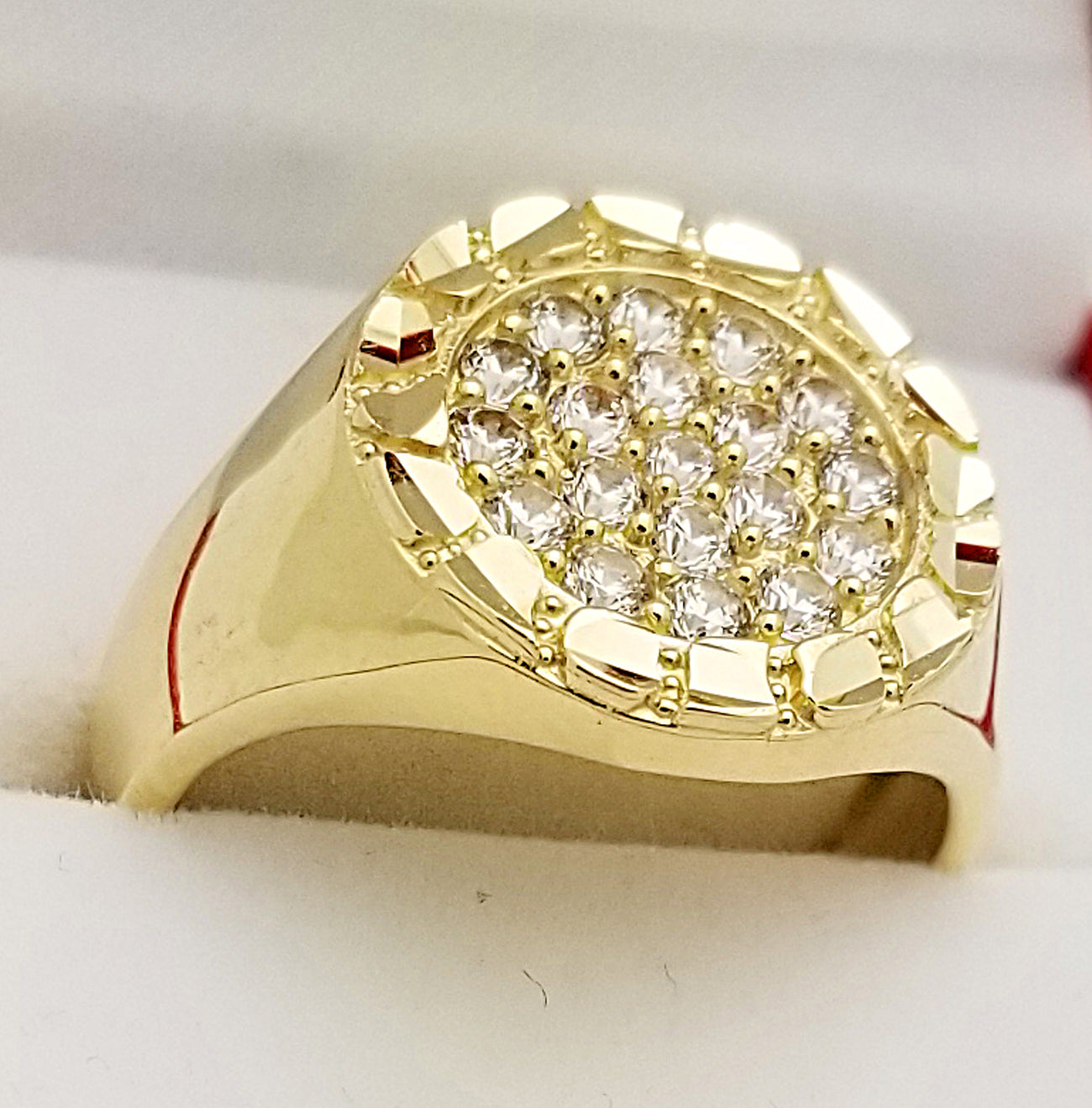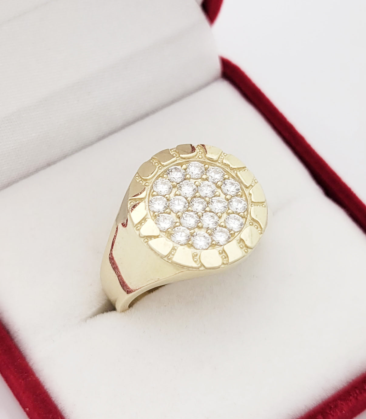 - Solid Gold CZ Ring Nugget Gold Cut Design