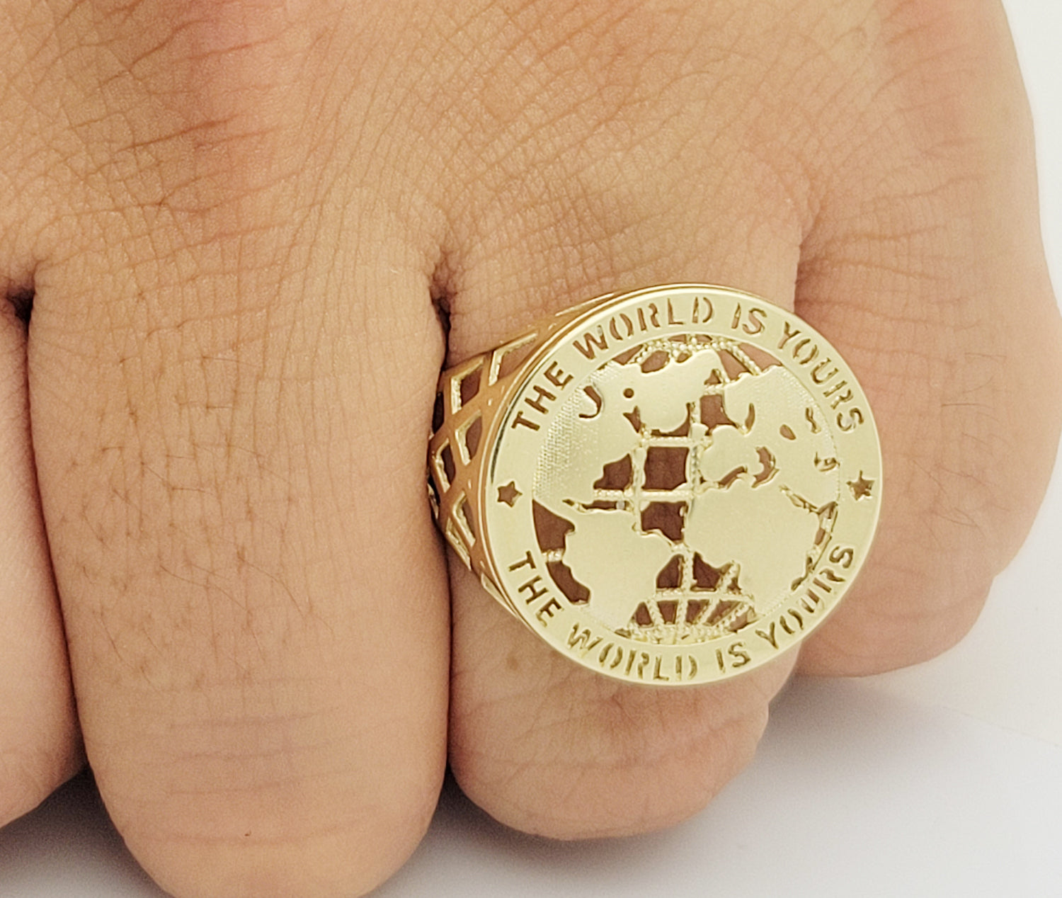 10K Yellow Gold Men's World Map Ring Globe Ring