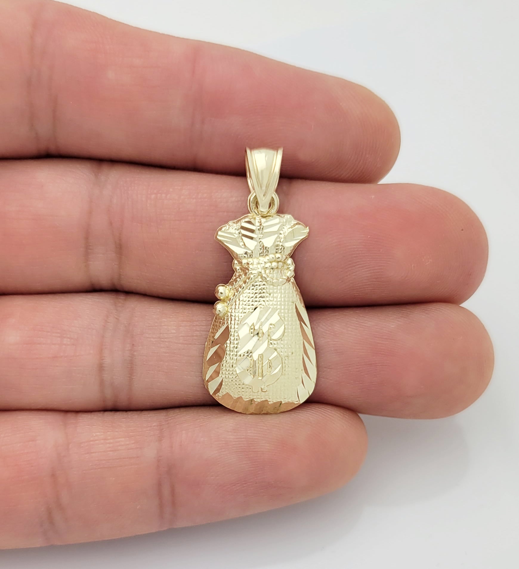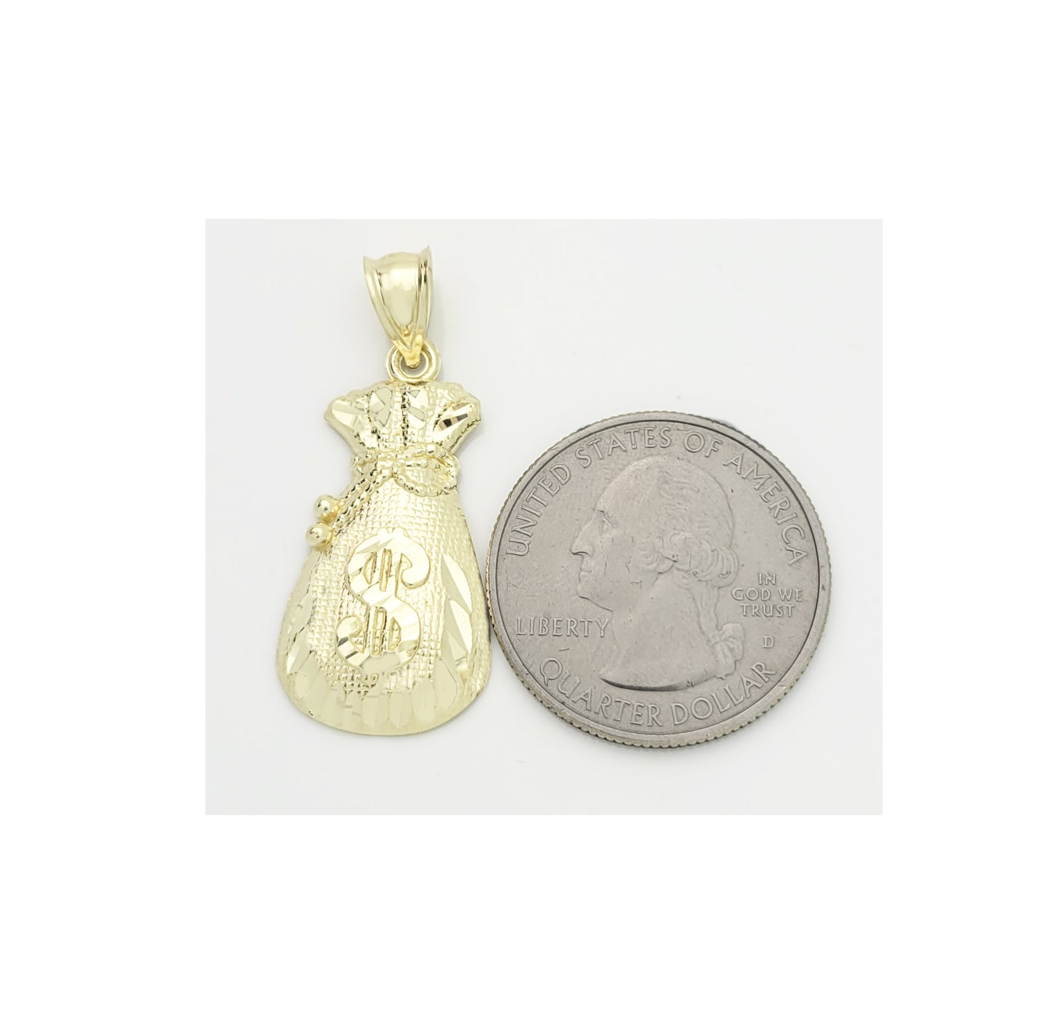 10K Yellow Gold Money Bag Pendant Treasure Dollar Sign Pendant Hip Hop 1.3 inch