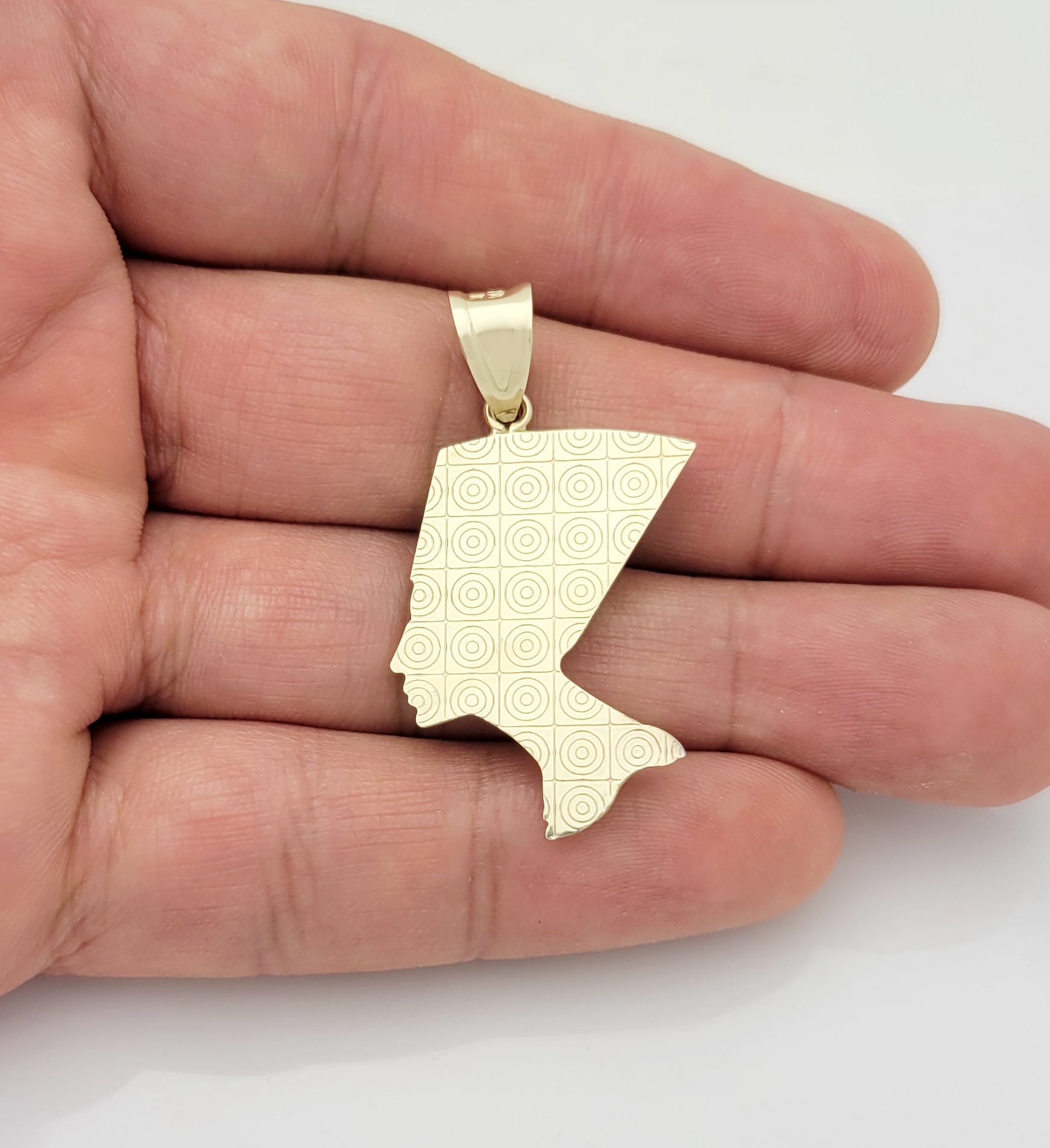 10K Yellow Gold Nefertiti Necklace Pendant Egyptian Queen Charm 1.3 in x 0.75 in