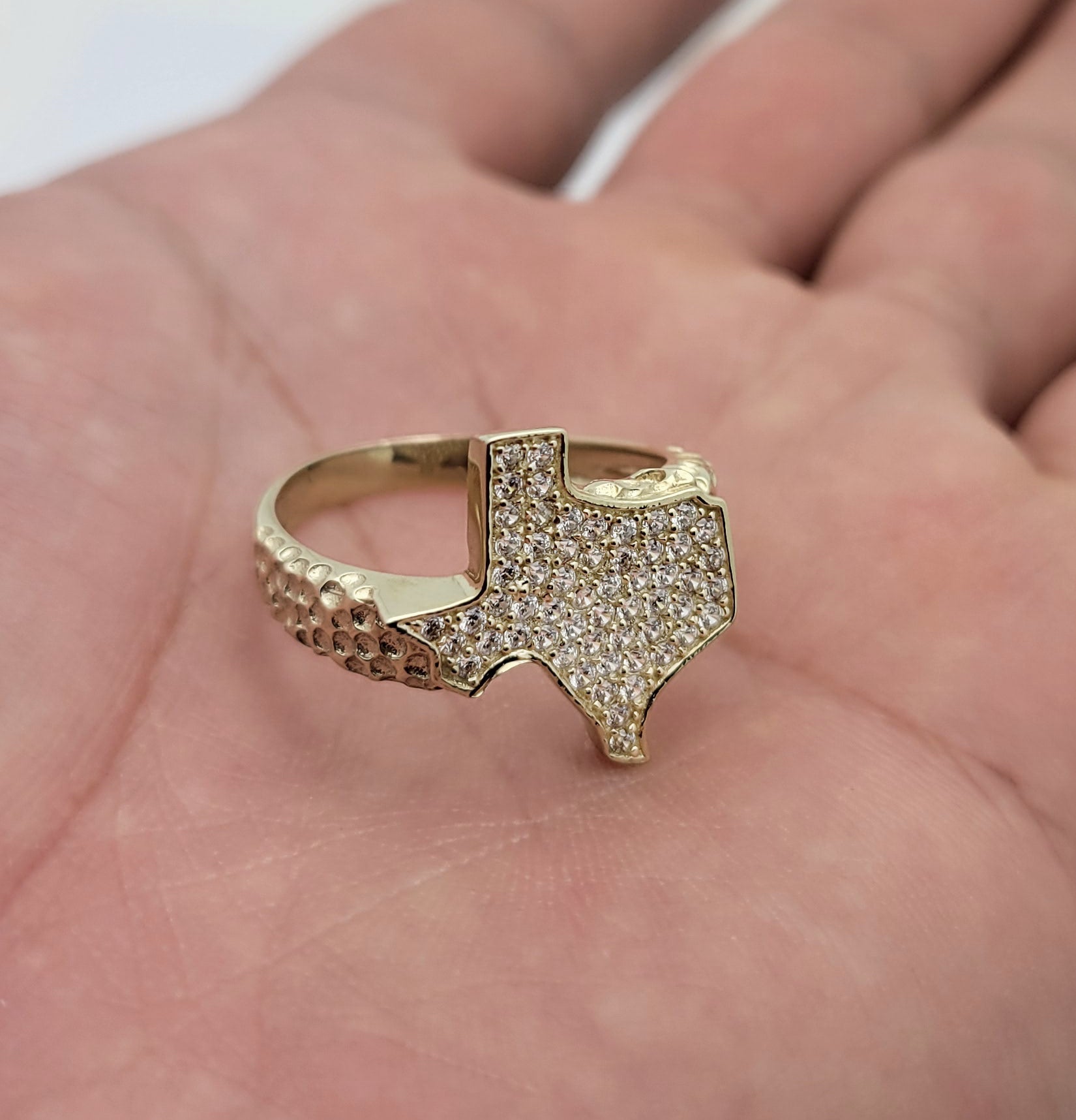 STUNU 10K Yellow Gold Nugget Texas Ring Texas Map CZ Ring