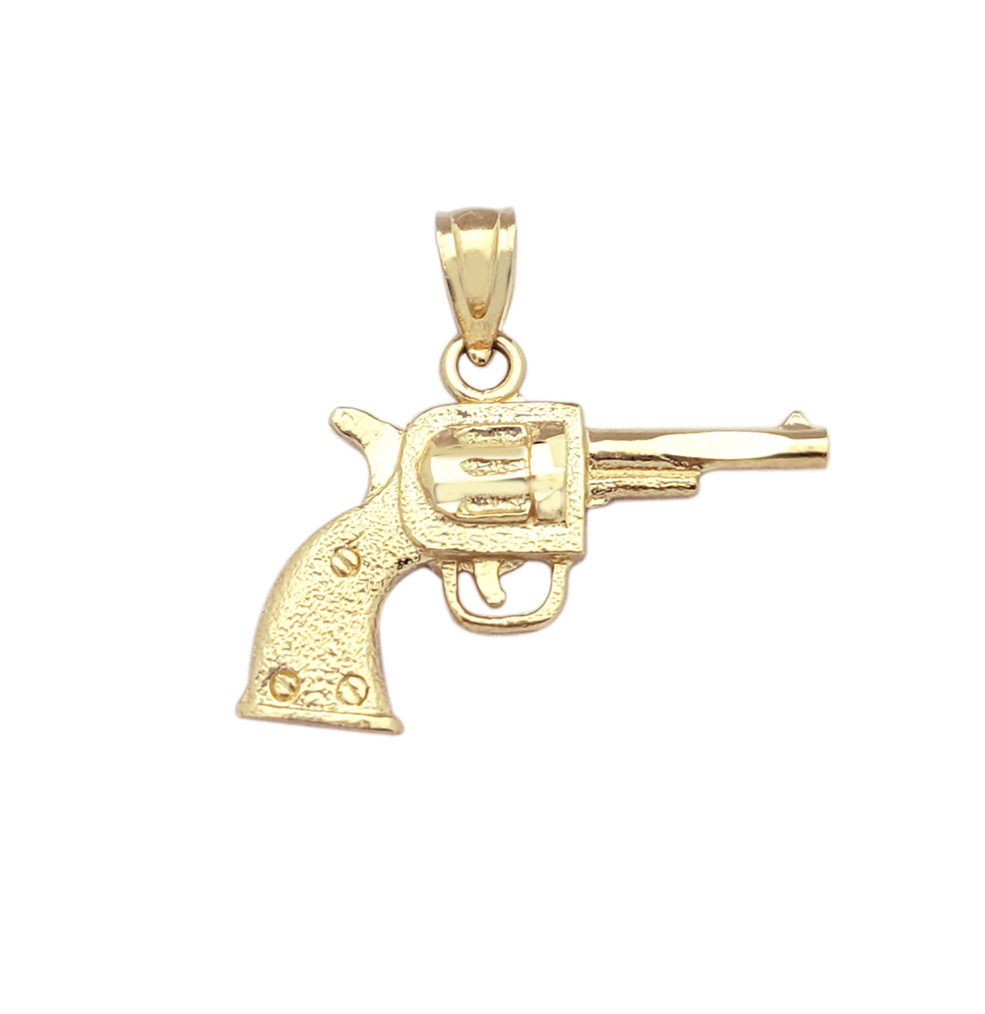 10k Yellow Gold Revolver Hand Gun Pendant Small Gun Charm