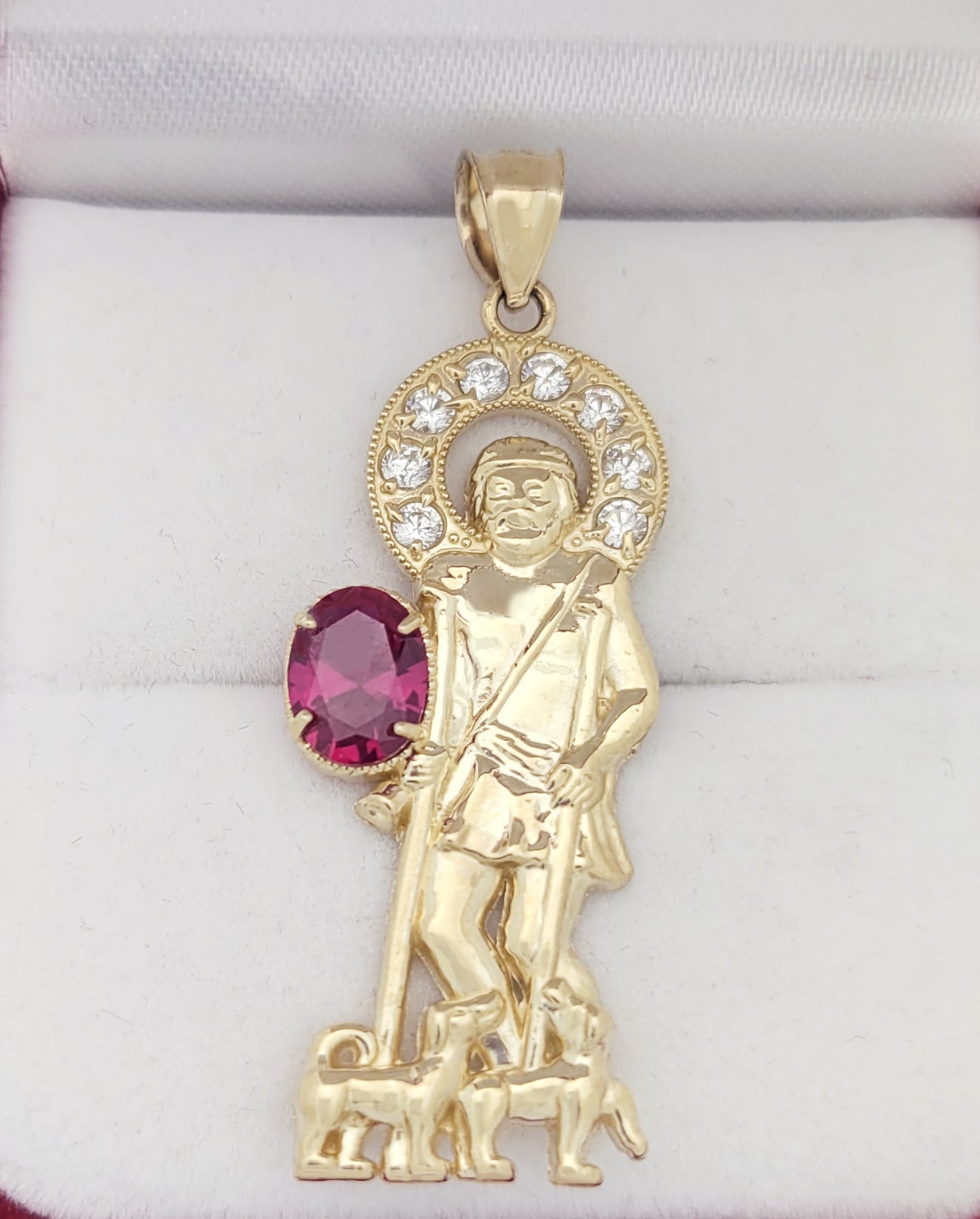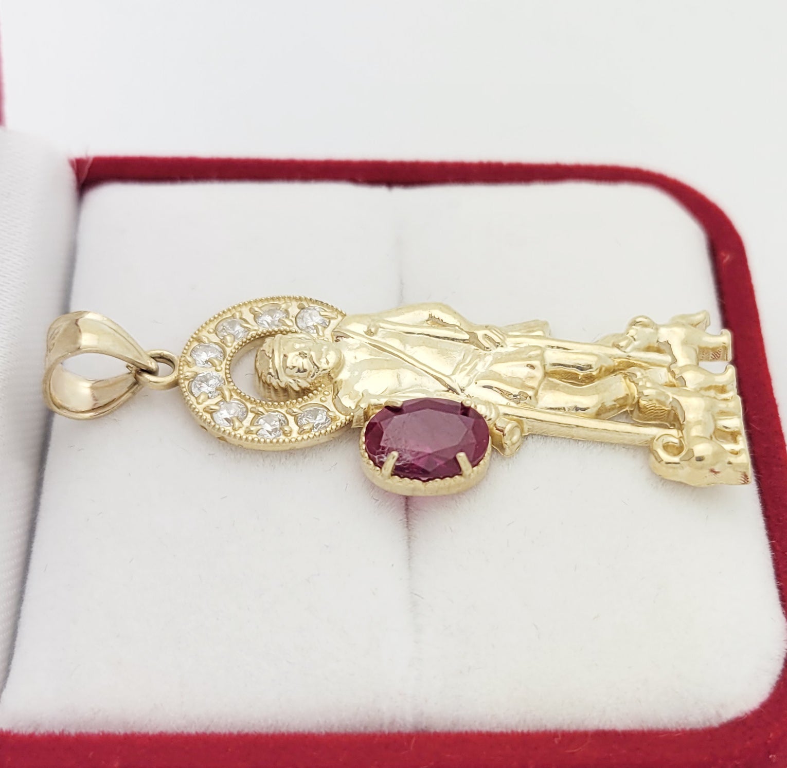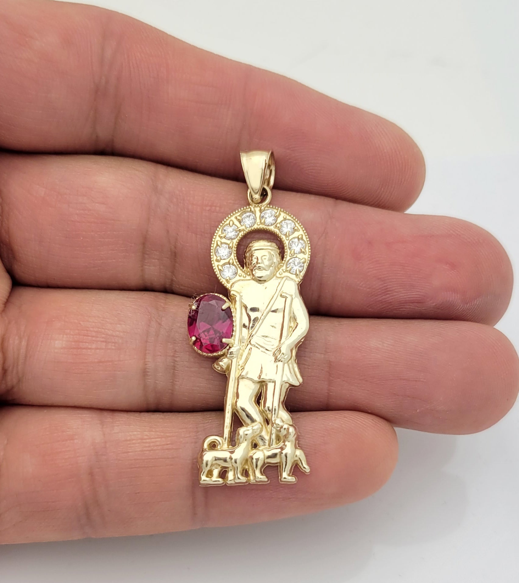 10K Yellow Gold Saint Lazarus Pendant Charm Patron Pendant Lazarus With Red Stone