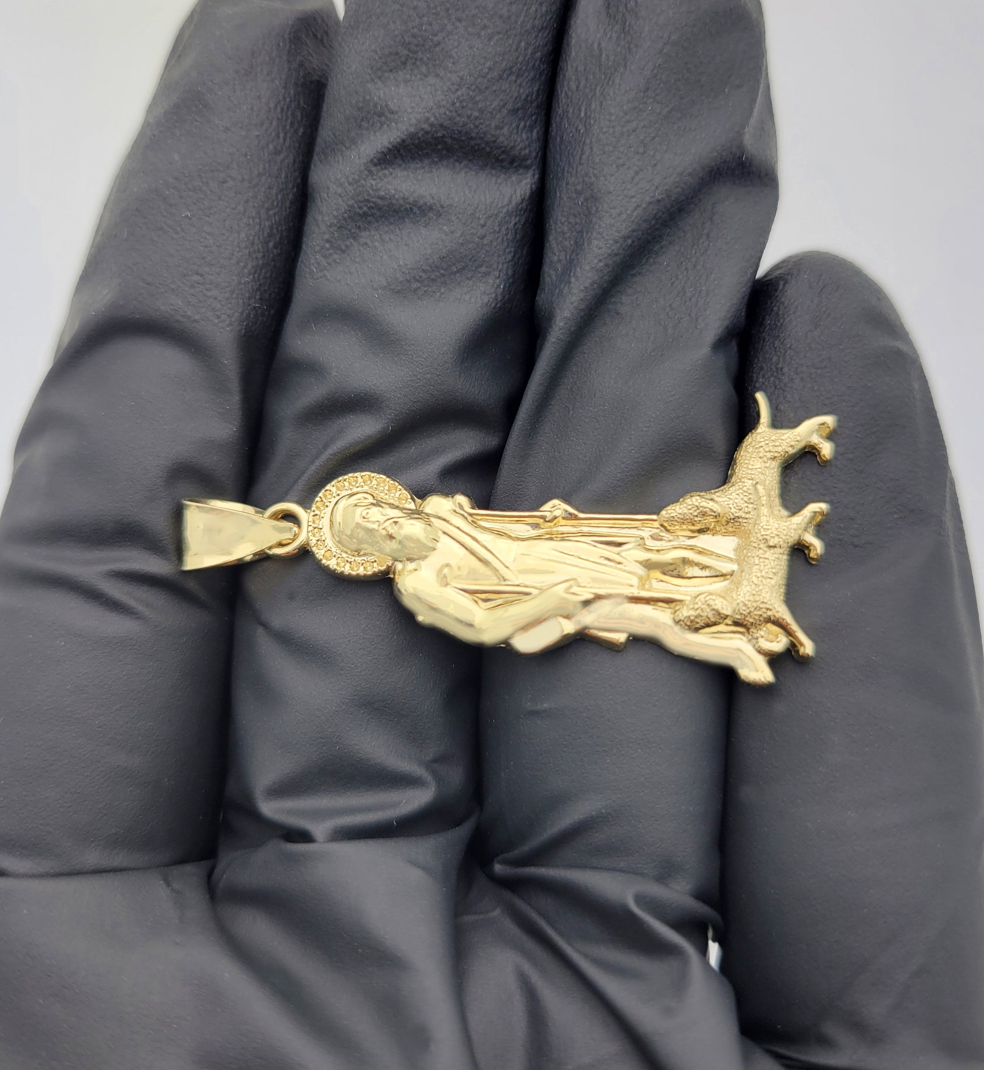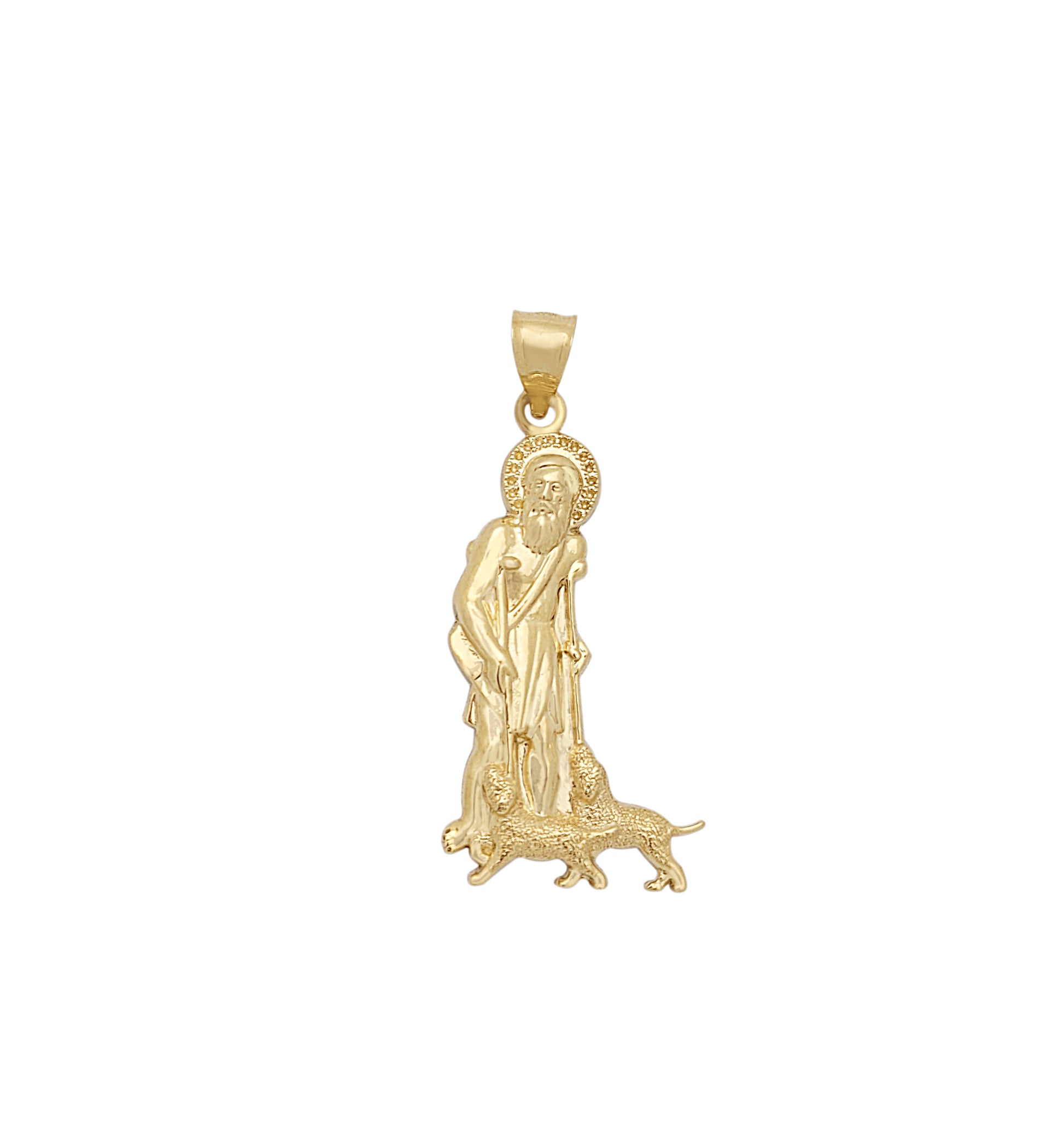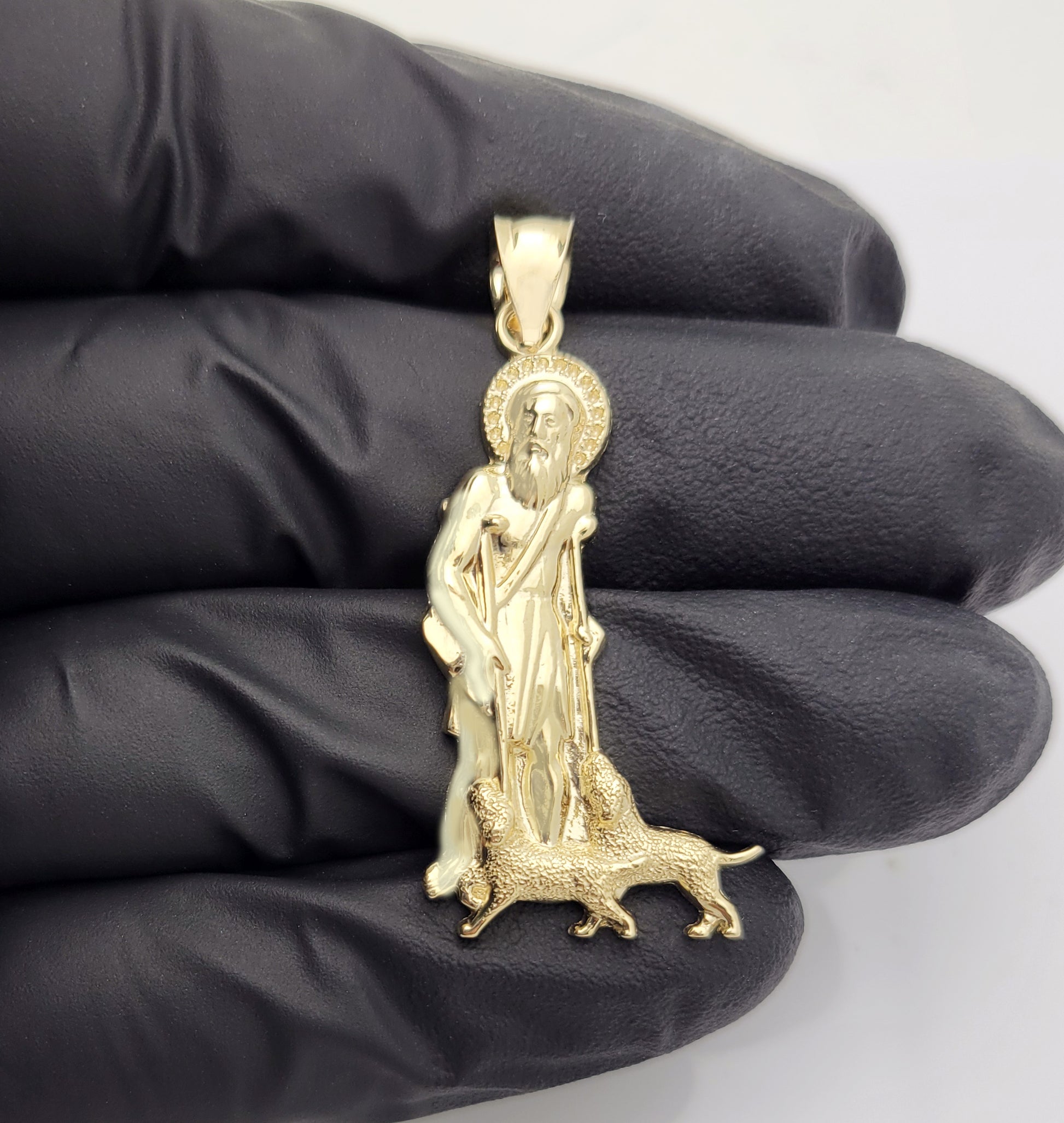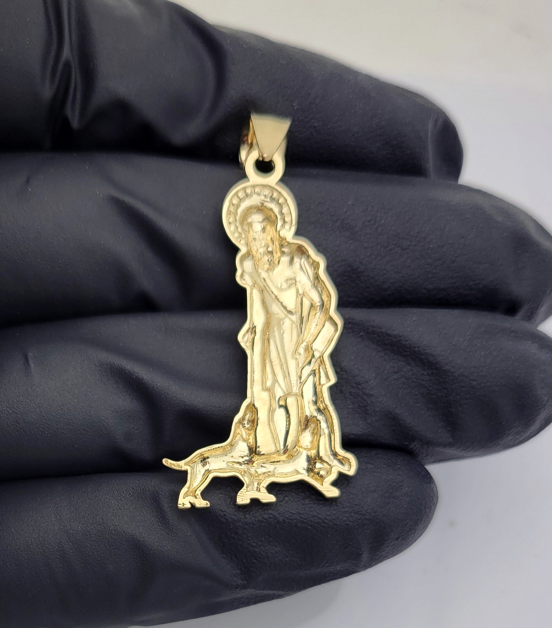 10K Yellow Gold Saint Lazarus Pendant Charm Patron Pendant St. Lazarus 1.7 inch