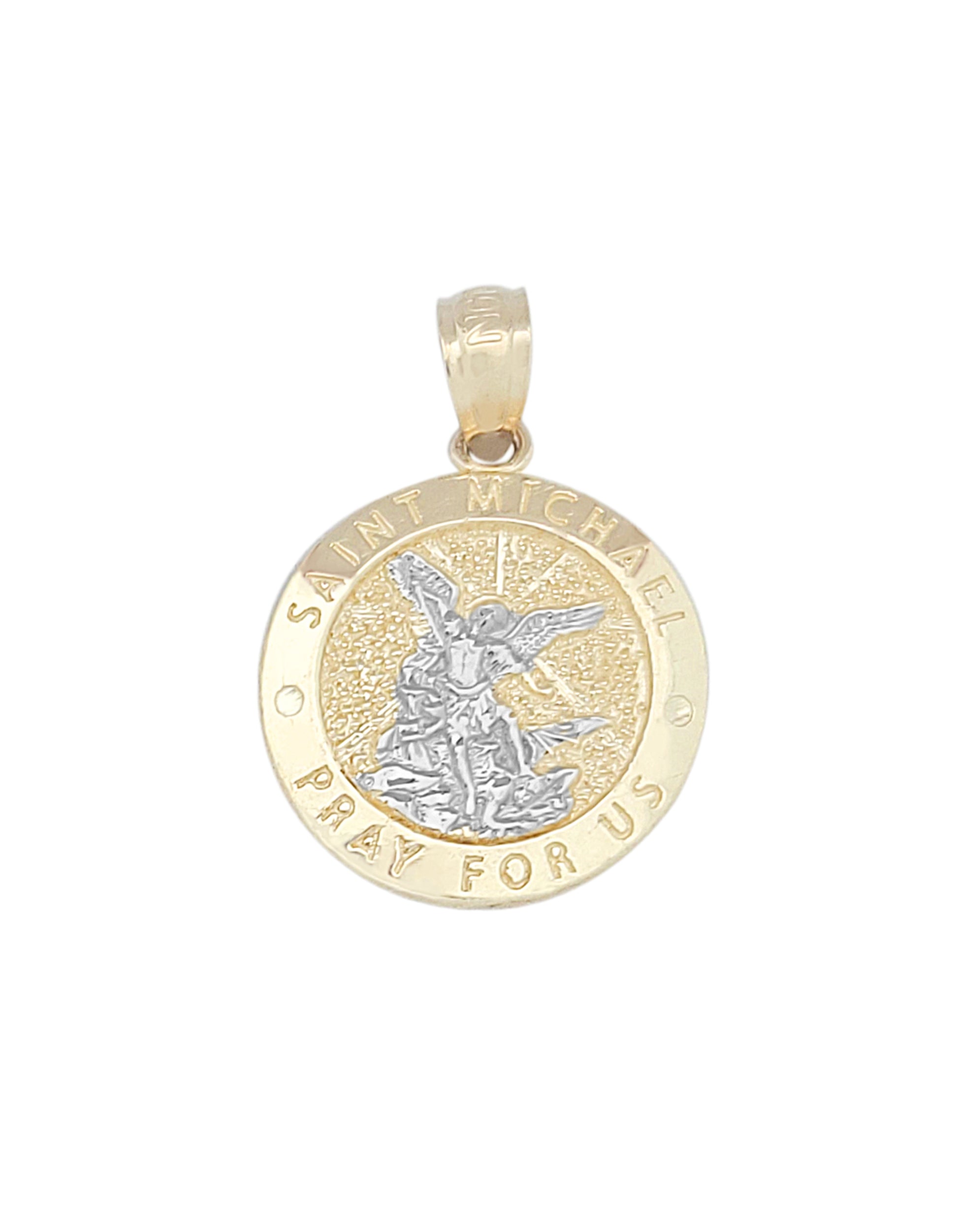 10K Yellow Gold Saint Michael The Archangel Pendant Charm St. Michael Medal Small