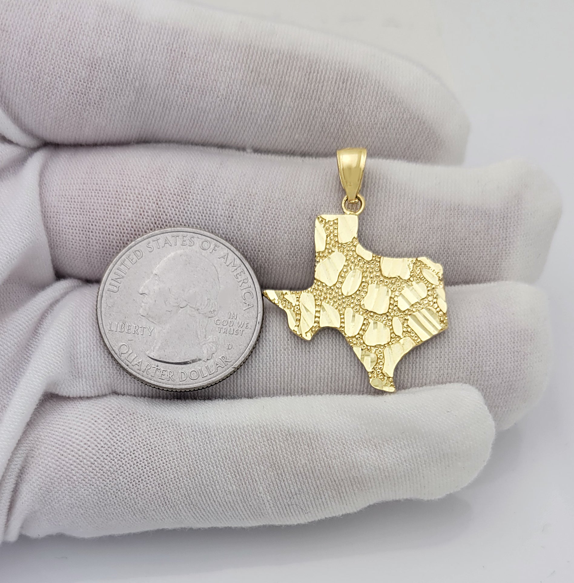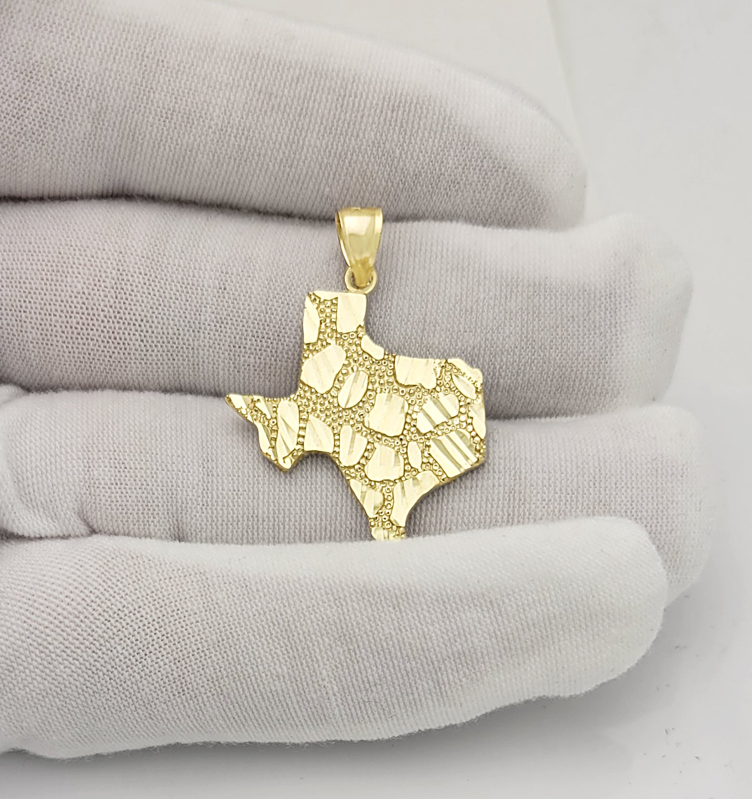 10K Yellow Gold Texas State Map Nugget Gold Pendant