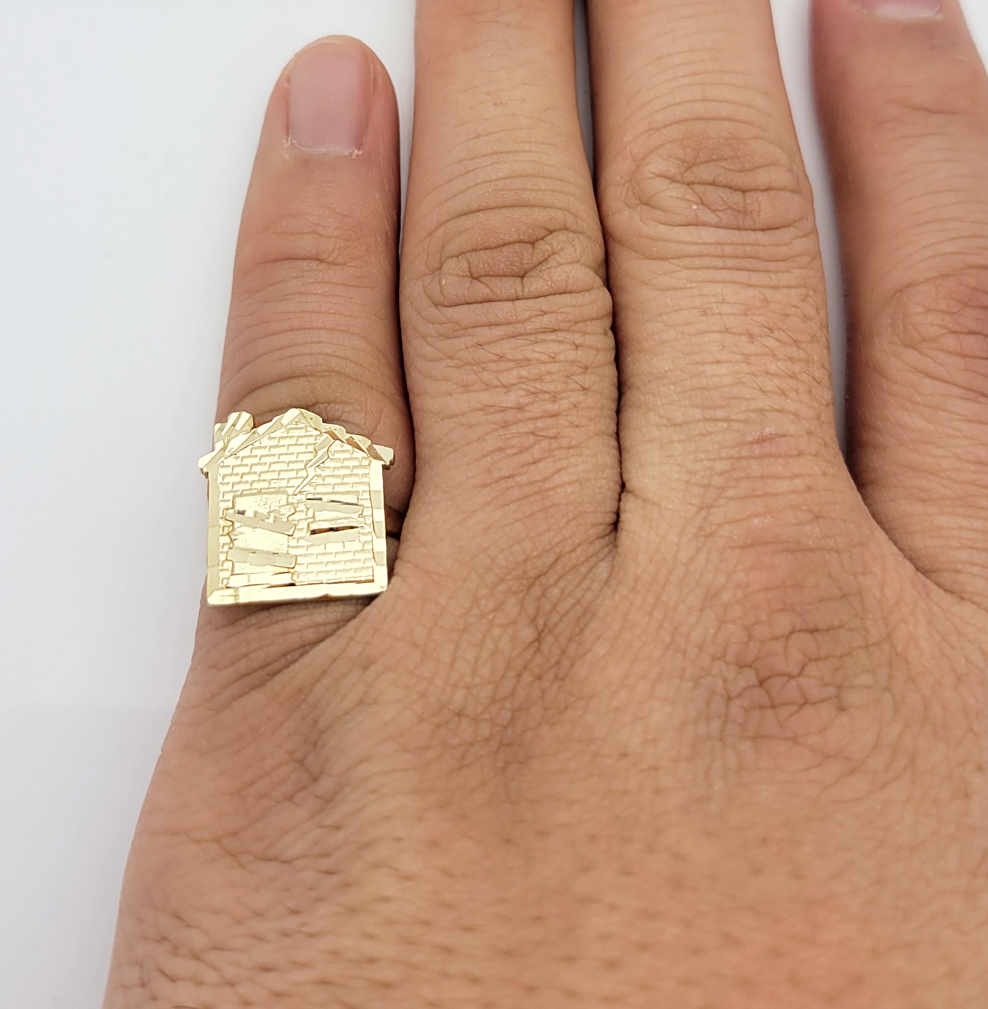 10K Yellow Gold Trap House Ring Pinky Ring Size 7 Head Size 0.7 in x 0.65 in