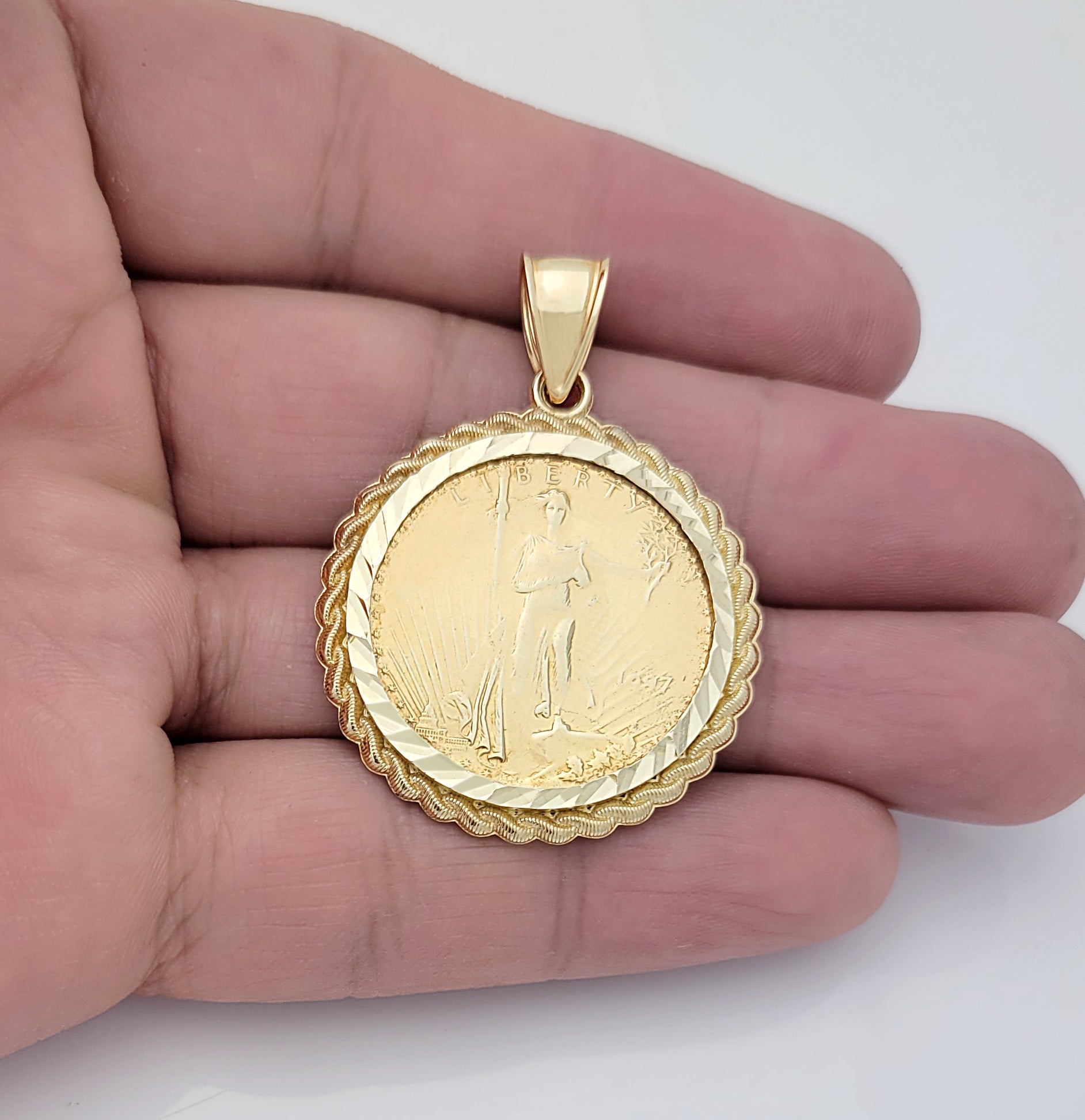 10K Yellow Gold Walking Liberty Coin Pendant Rope Bezel 1.3 Diameter